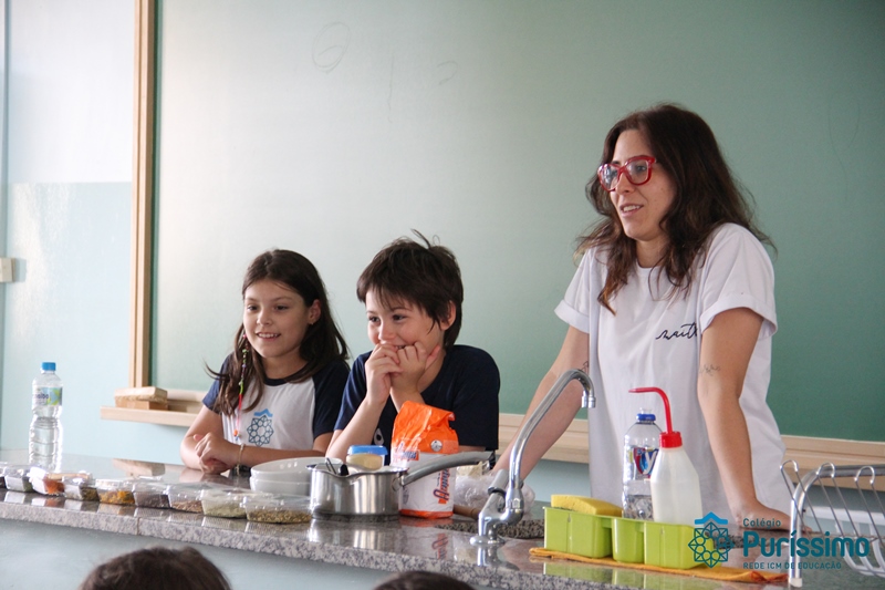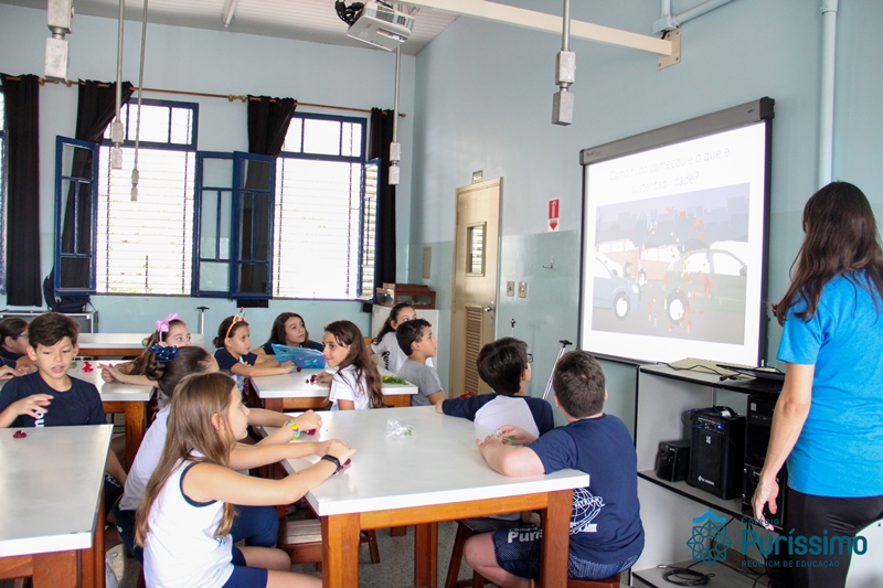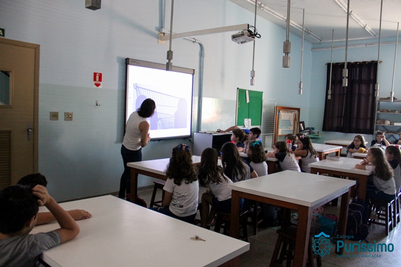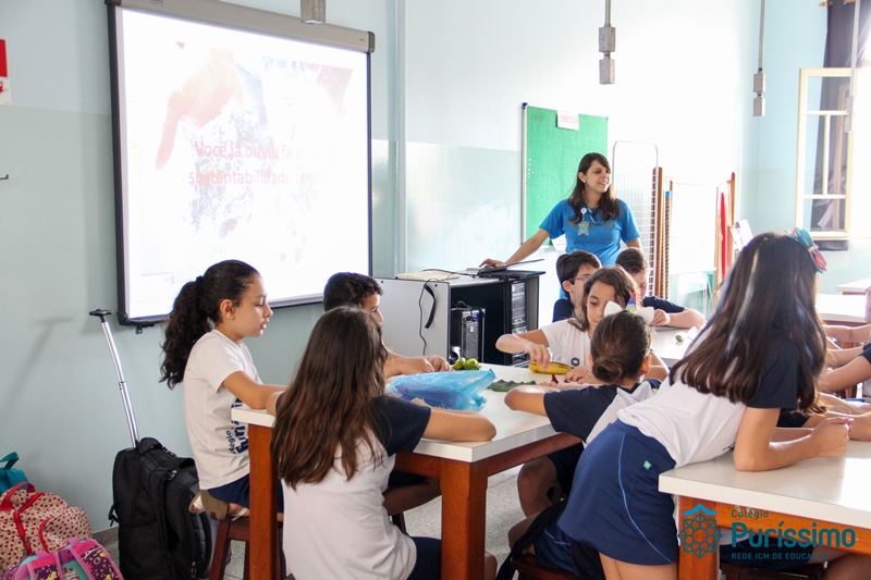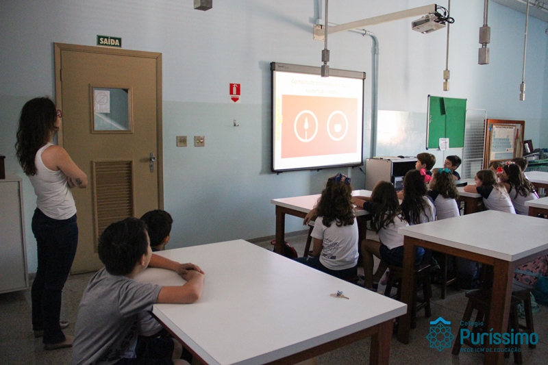 Em decorrência do trabalho desenvolvido na disciplina de Geografia sobre os setores da economia (primário, secundário e terciário), os alunos do 4º ano tiveram interesse em conhecer mais sobre matérias primas e sua contribuição para a produção de materiais, assim como sobre o processo de industrialização e seu prejuízo para o meio ambiente. Desse modo, a mãe de um aluno que trabalha com materiais sustentáveis, ofereceu uma palestra sobre sustentabilidade. Ela abordou diversas questões, exemplificando como a indústria de vestuário não tem se preocupado com o meio ambiente e tem ejetado produtos químicos em rios e mares, citando as fábricas de jeans.