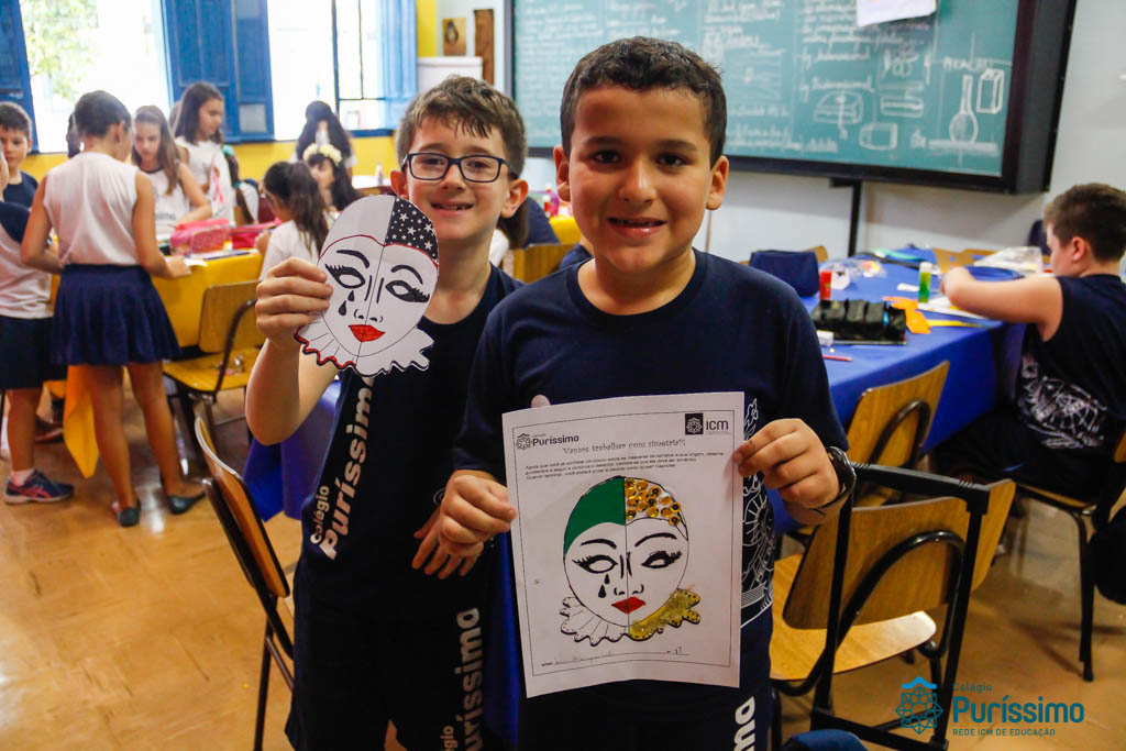 Na última sexta-feira, 09, os alunos dos 4º anos 1 da tarde, realizaram uma atividade com máscaras de carnaval na sala de artes. Após estudarem sobre as máscaras, eles tiveram que continuar os desenhos seguindo a simetria, além de decorar os desenhos com lápis de cor, lantejoulas, recortes de papel e o que mais a imaginação permitisse. Foi uma atividade interdisciplinar (com conceitos de matemática e artes), a qual os alunos aprenderam e se divertiram muito, resultando em trabalhos lindos!