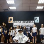 Mostraram onde estamos no universo o quão pequeno somos; o grande acontecimento conhecido como Big Bang; como surge a vida e a importância da água para a mesma; a era dos dinossauros e sua extinção; e para finalizar, trouxeram como referência o profeta Gentileza, mostrando a nossa responsabilidade com o Universo e sua transformação. Nunca nos esqueçamos: “Gentileza gera gentileza”.