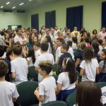 Os alunos dos quartos anos fizeram uma belíssima apresentação de palco na última sexta-feira, 22, com músicas, danças, poesias, gravação de vídeos e teatro, levando a plateia para uma viagem às profundezas da nossa história, desde o surgimento do Universo até os dias atuais.