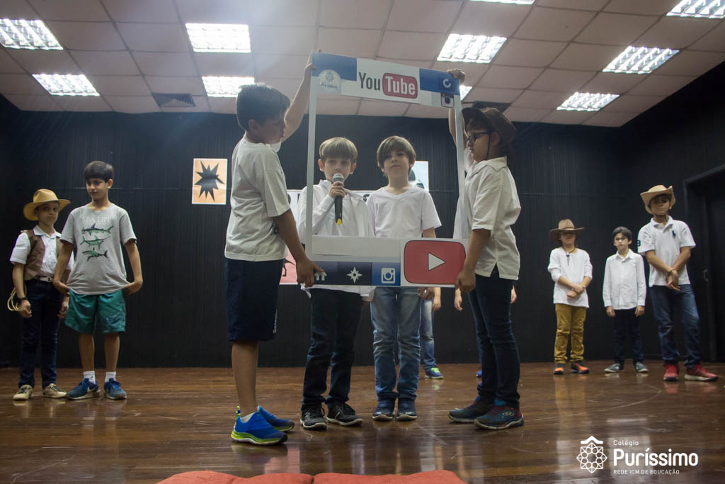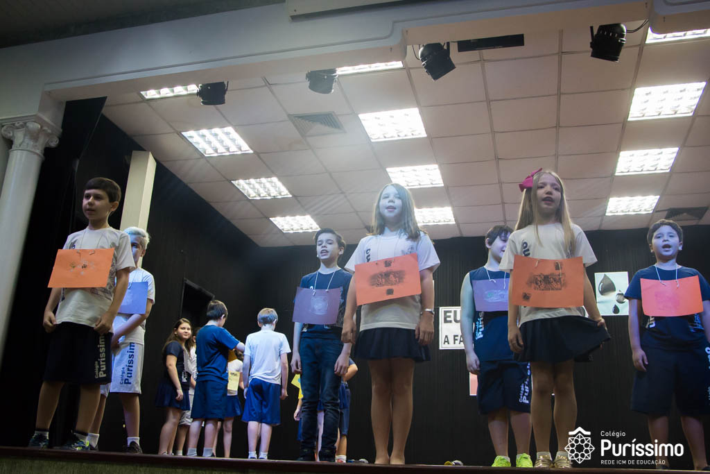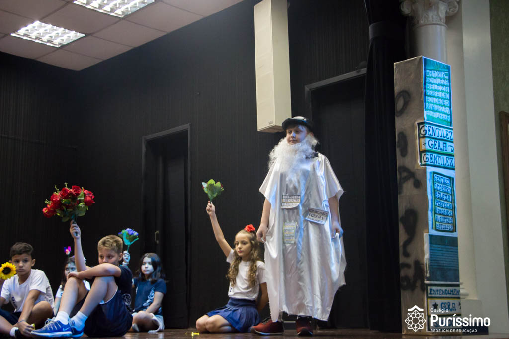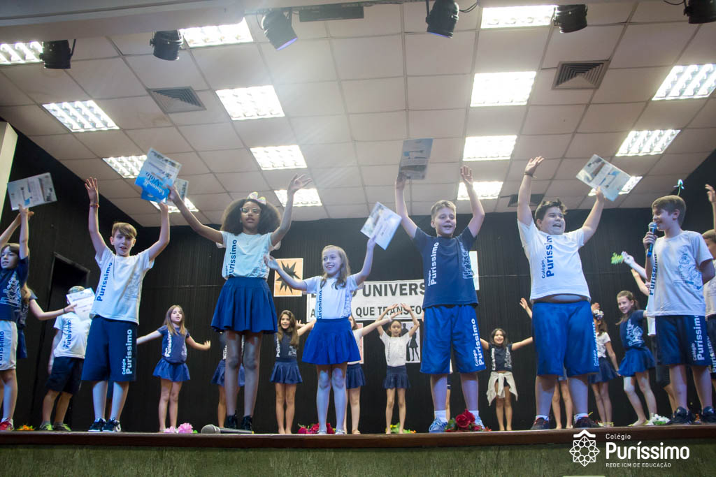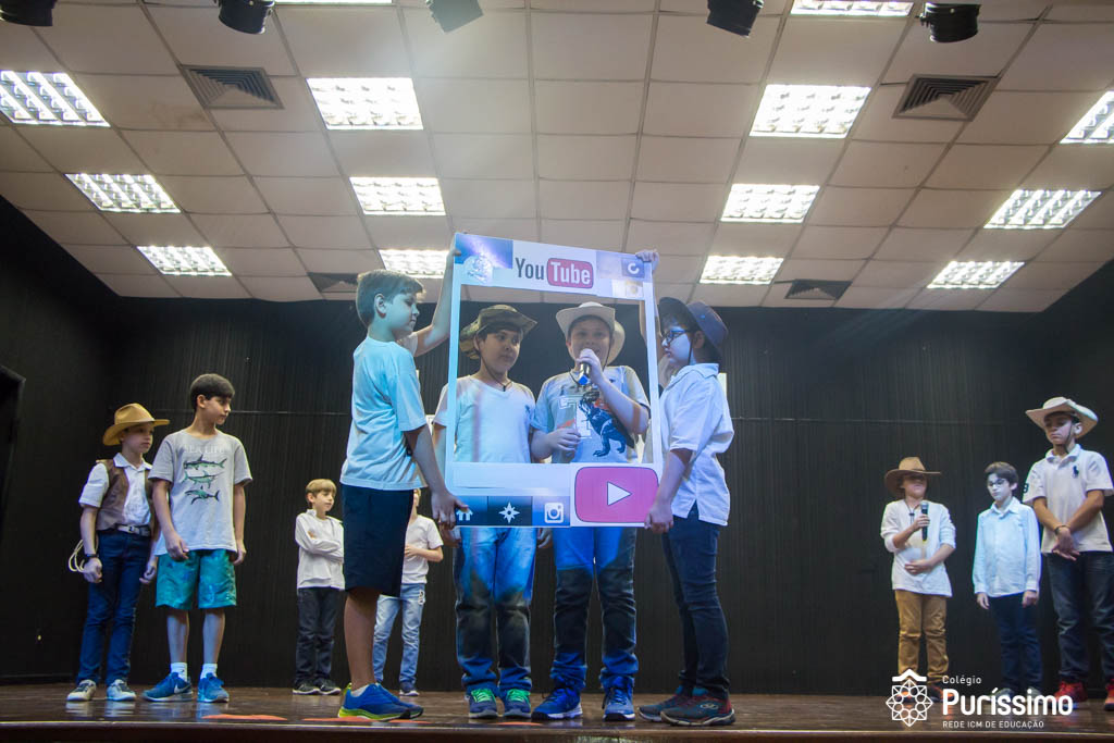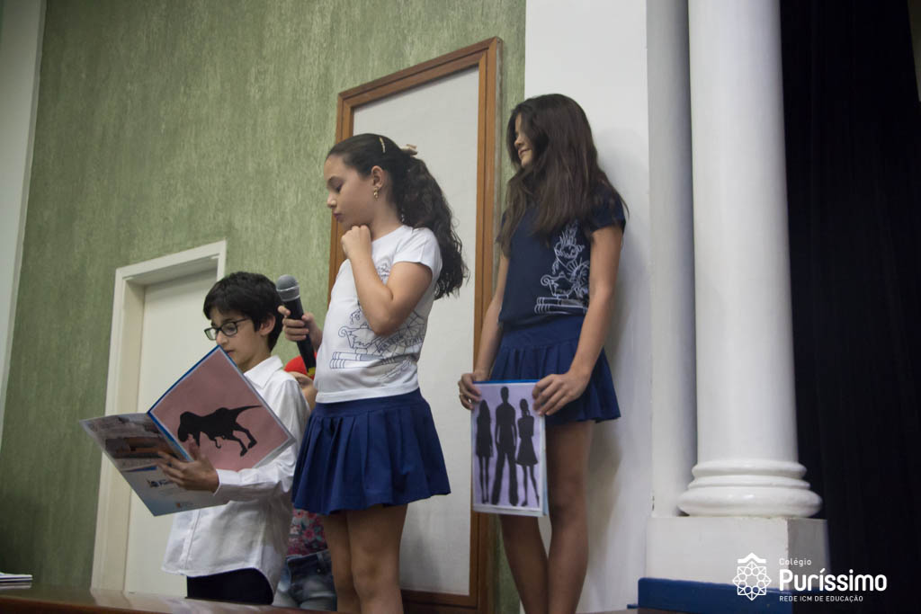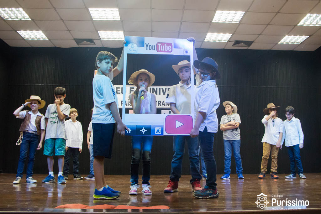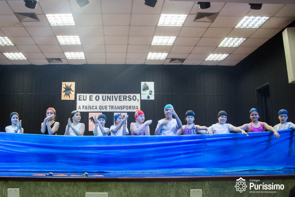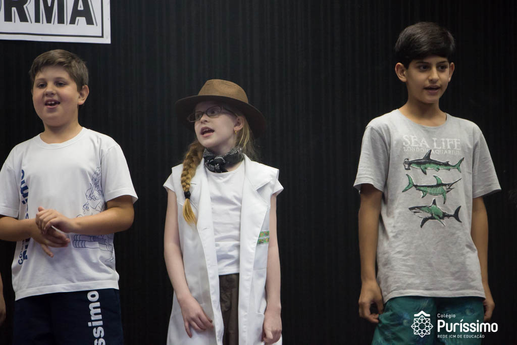 Os alunos dos quartos anos fizeram uma belíssima apresentação de palco na última sexta-feira, 22, com músicas, danças, poesias, gravação de vídeos e teatro, levando a plateia para uma viagem às profundezas da nossa história, desde o surgimento do Universo até os dias atuais.