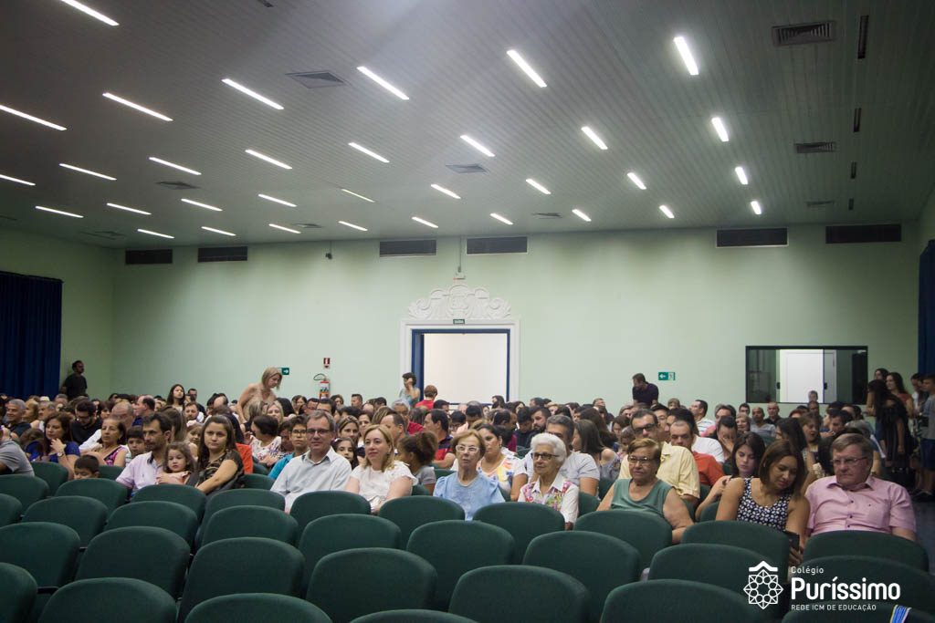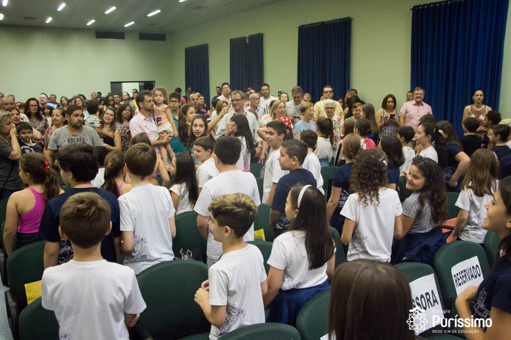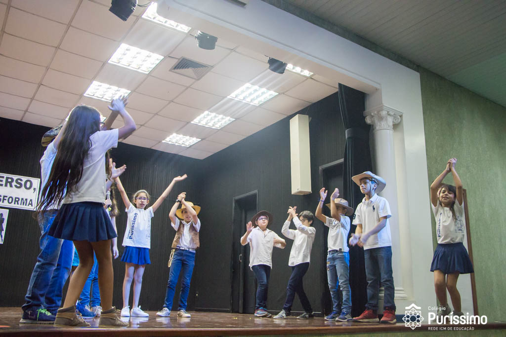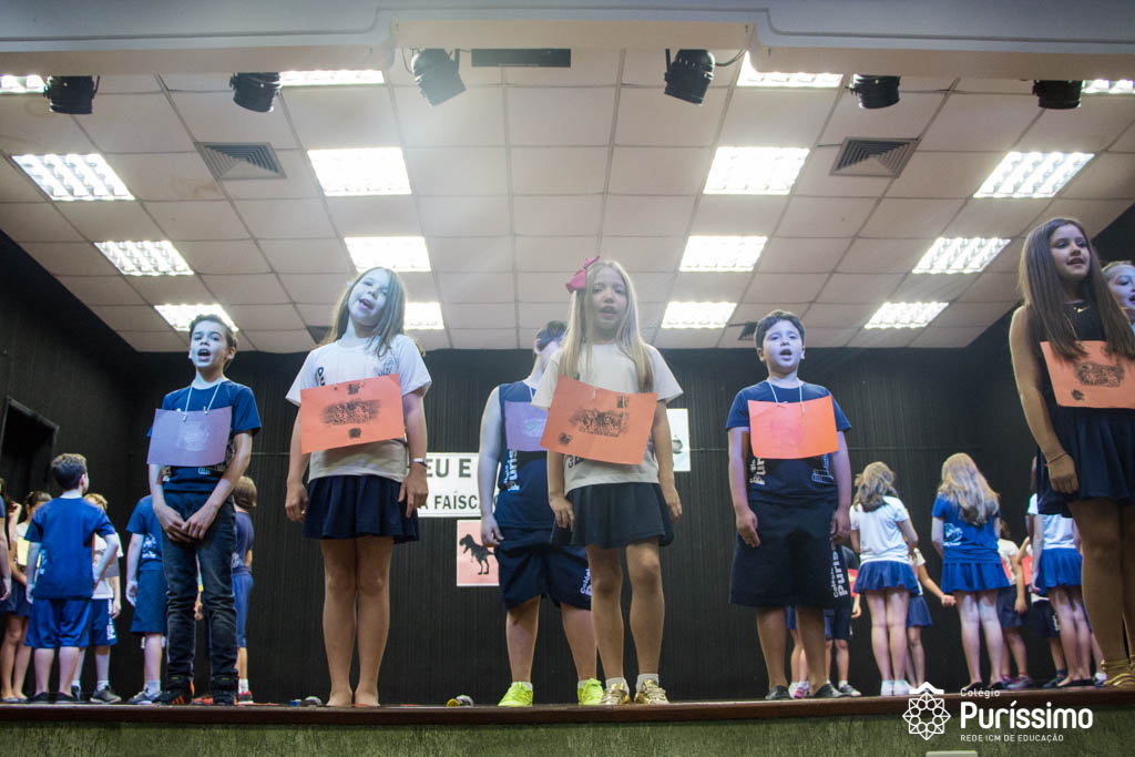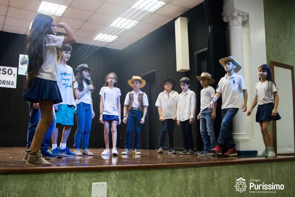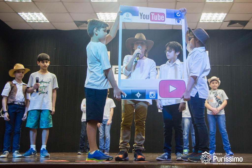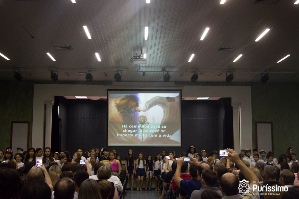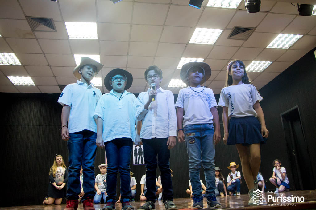 Os alunos dos quartos anos fizeram uma belíssima apresentação de palco na última sexta-feira, 22, com músicas, danças, poesias, gravação de vídeos e teatro, levando a plateia para uma viagem às profundezas da nossa história, desde o surgimento do Universo até os dias atuais.