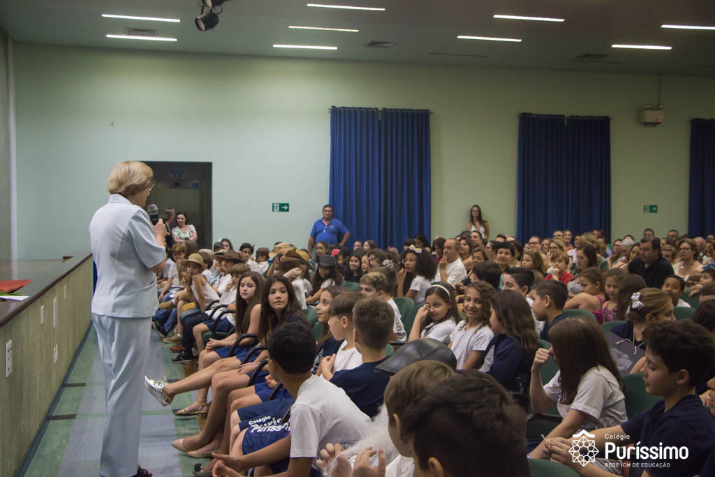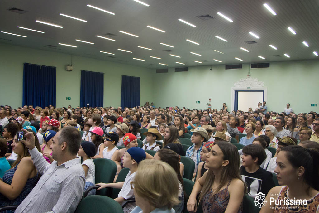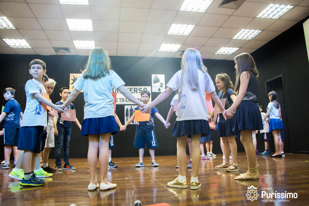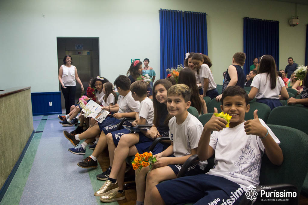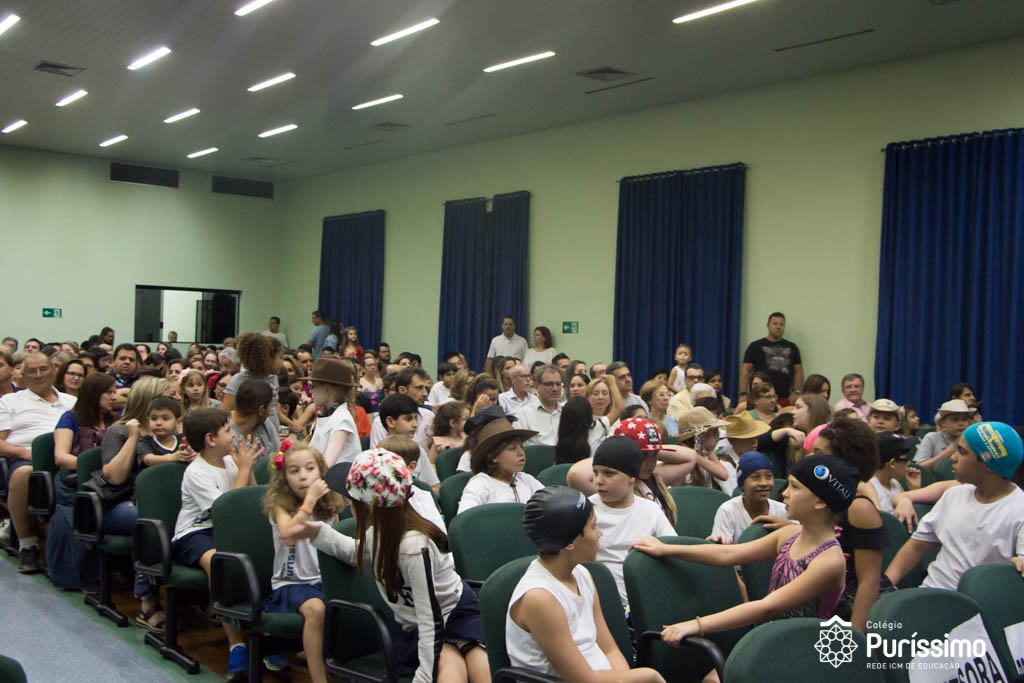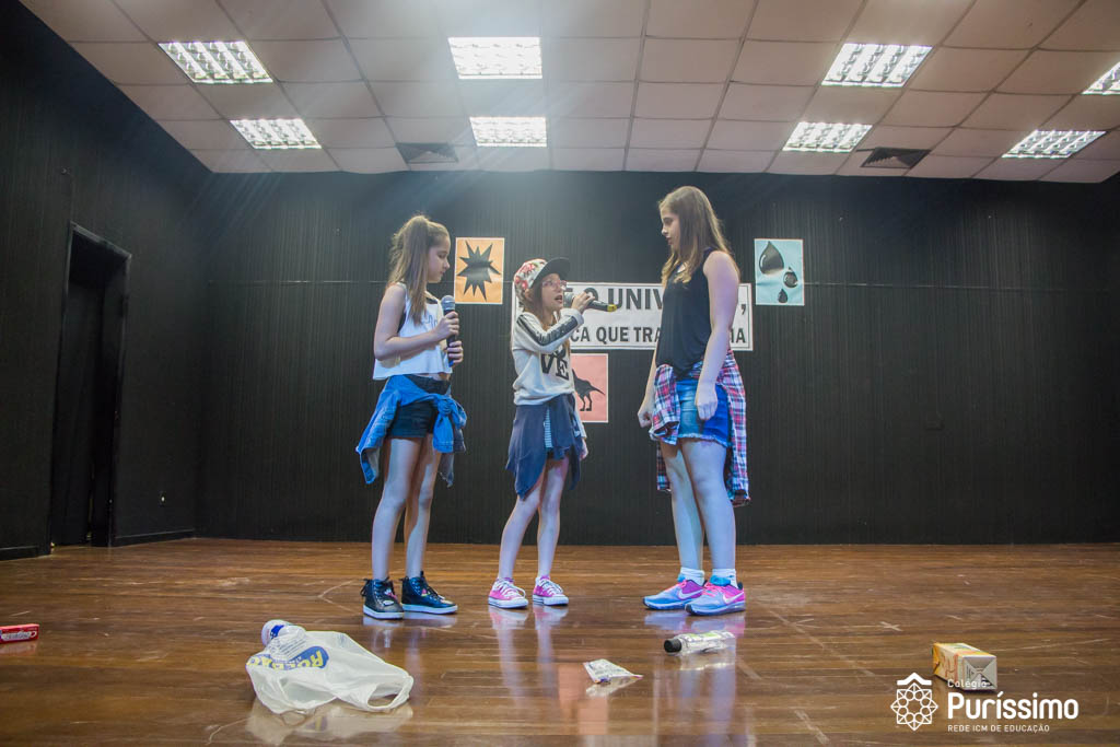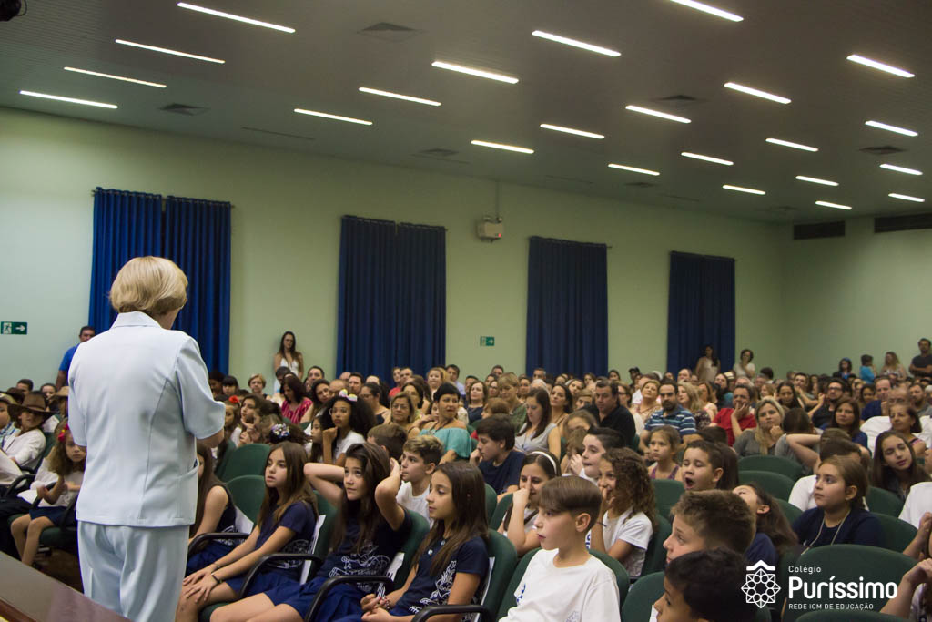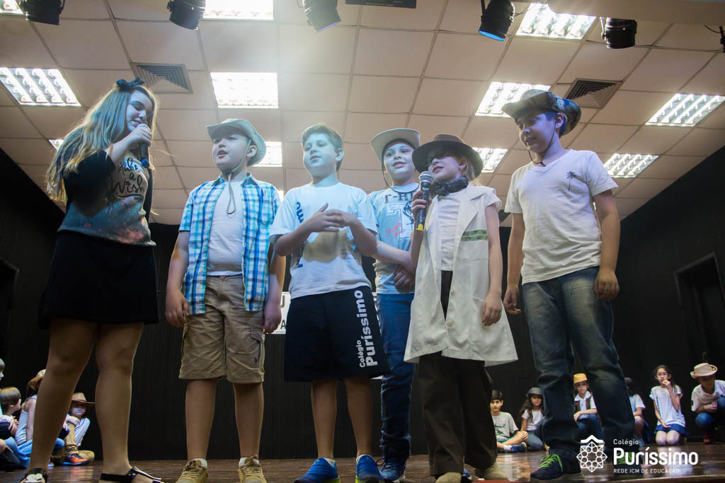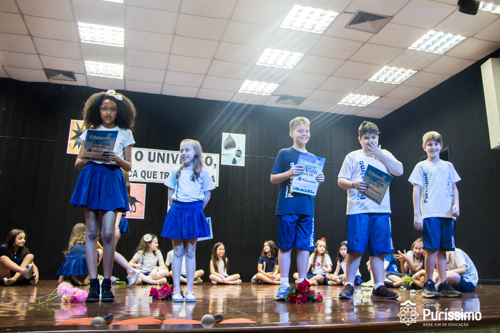 Os alunos dos quartos anos fizeram uma belíssima apresentação de palco na última sexta-feira, 22, com músicas, danças, poesias, gravação de vídeos e teatro, levando a plateia para uma viagem às profundezas da nossa história, desde o surgimento do Universo até os dias atuais.