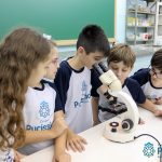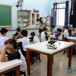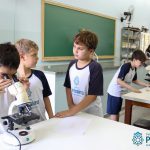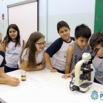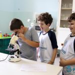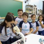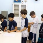 Os alunos dos quartos anos estão realizando diferentes estudos sobre a água e, para que a aprendizagem ocorresse de forma significativa, os alunos estiveram no laboratório de Ciências, onde visualizaram os componentes presentes na água limpa, suja e contaminada.