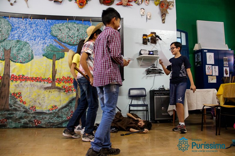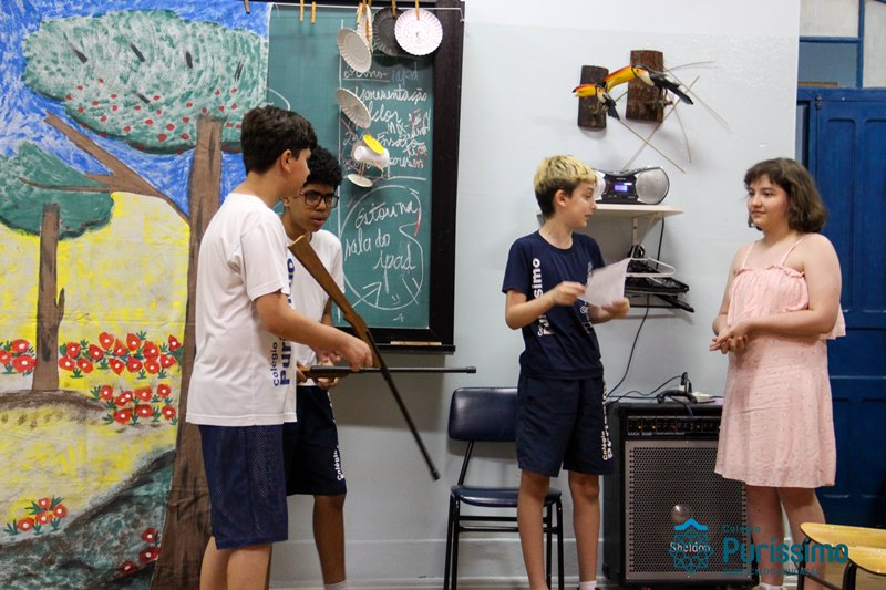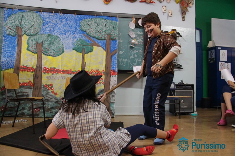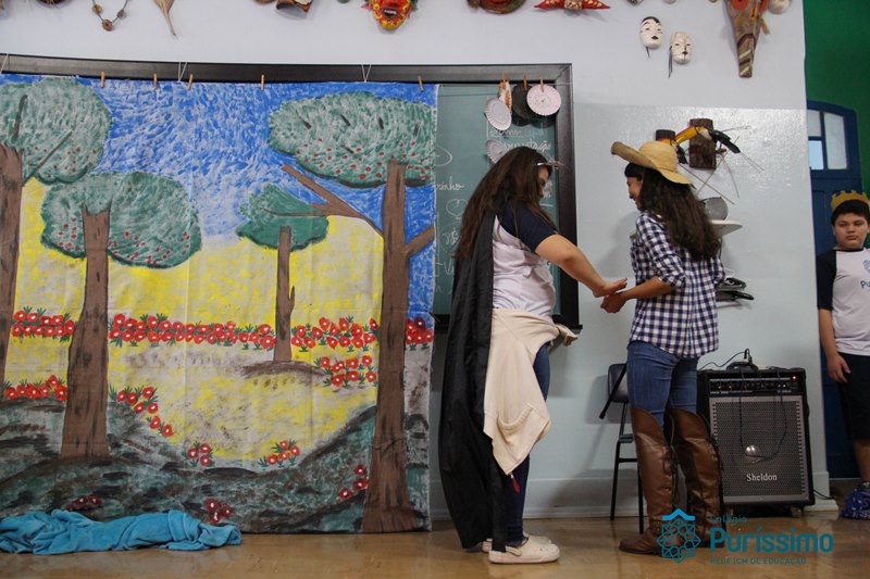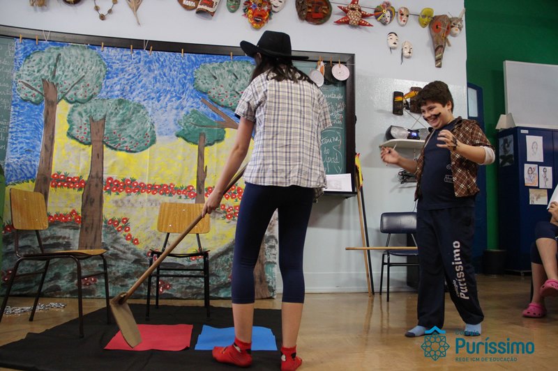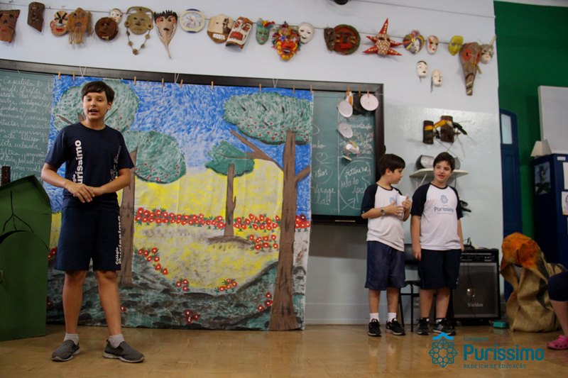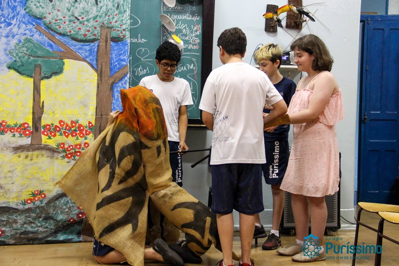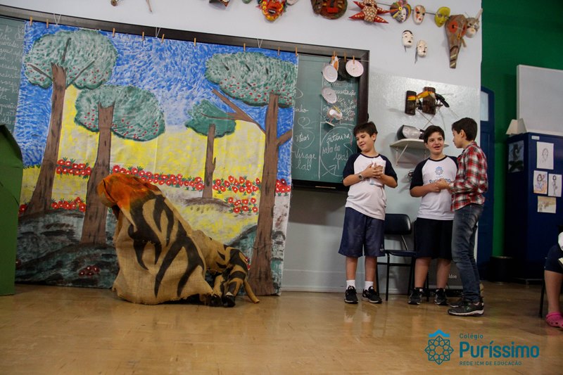 Na semana passada os 6ºs anos apresentaram o trabalho de artes sobre lendas folclóricas. Eles pesquisaram sobre o tema, elaboraram os textos, os cenários e os figurinos para a apresentação teatral.