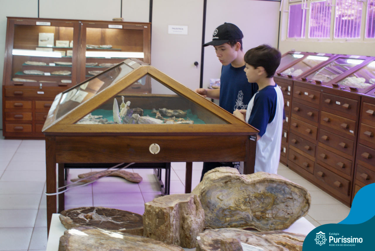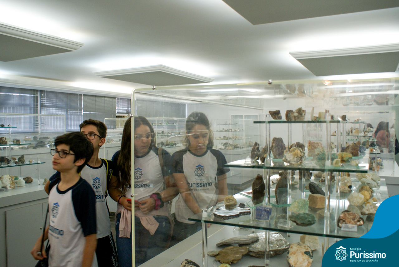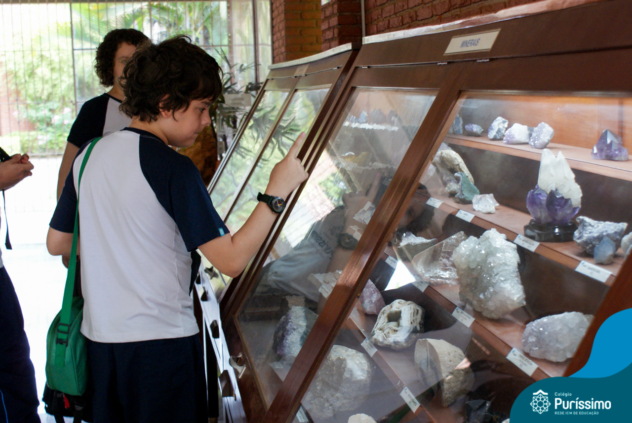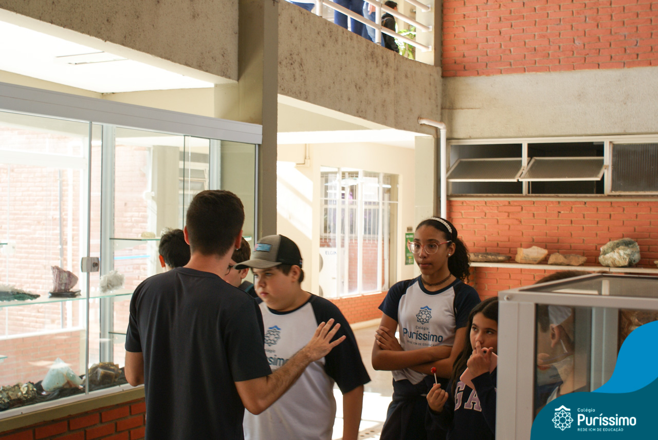 Nos dias 8 e 10 de outubro, os alunos dos 6ºs anos visitaram a Unesp de Rio Claro. No departamento de Geologia eles conheceram o Museu de Minerais, Minérios e Rochas Heinz Ebert, onde puderam observar gemas preciosas, diversos tipos de rochas e minérios utilizados em nosso dia a dia. Ainda no mesmo departamento conheceram o museu de Paleontologia e Estratigrafia onde observaram fósseis de diferentes eras geológicas.