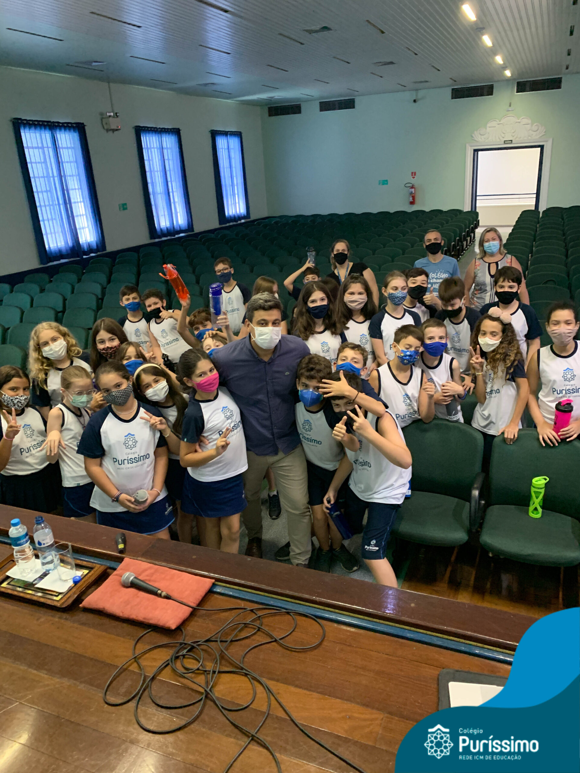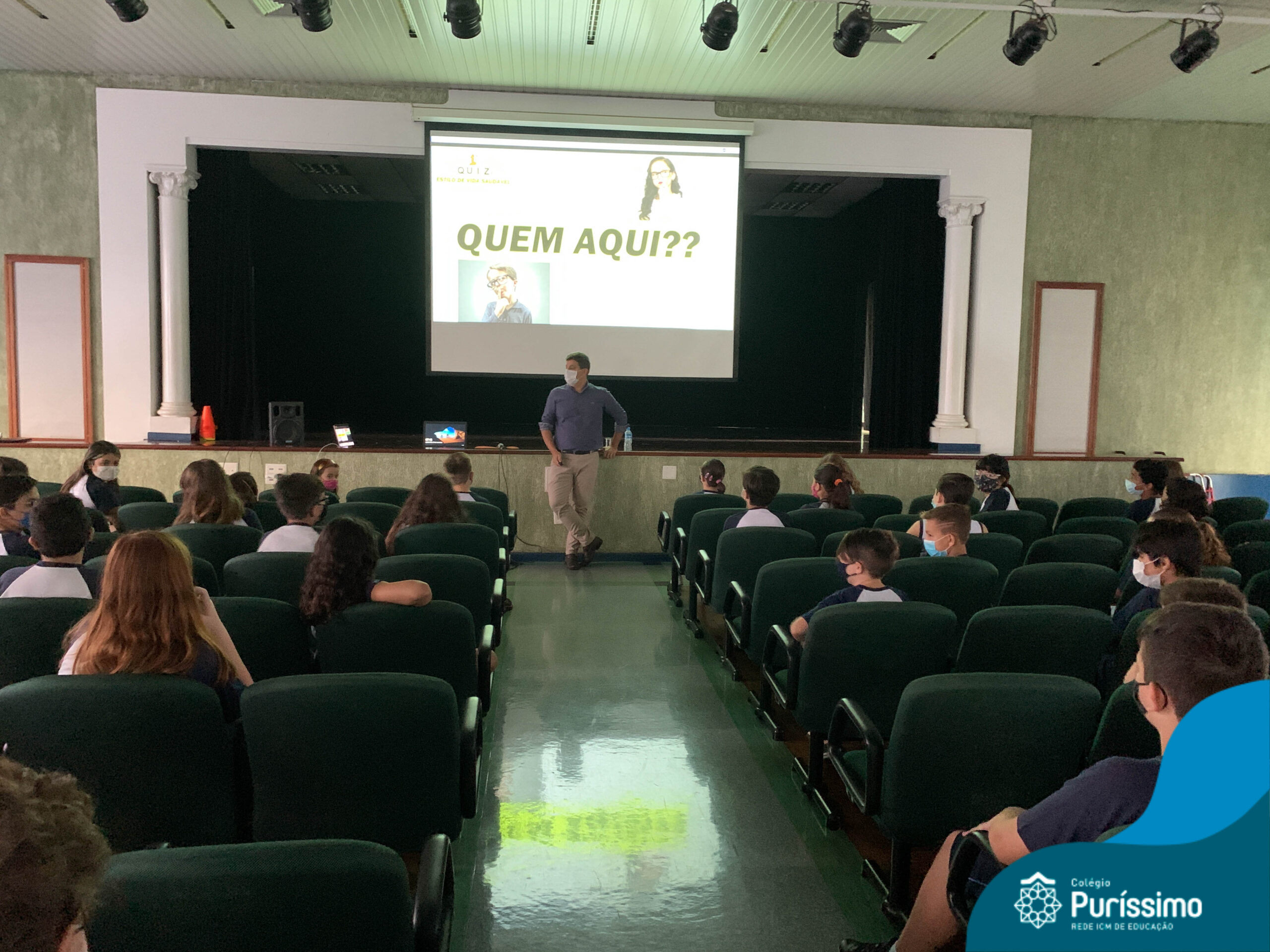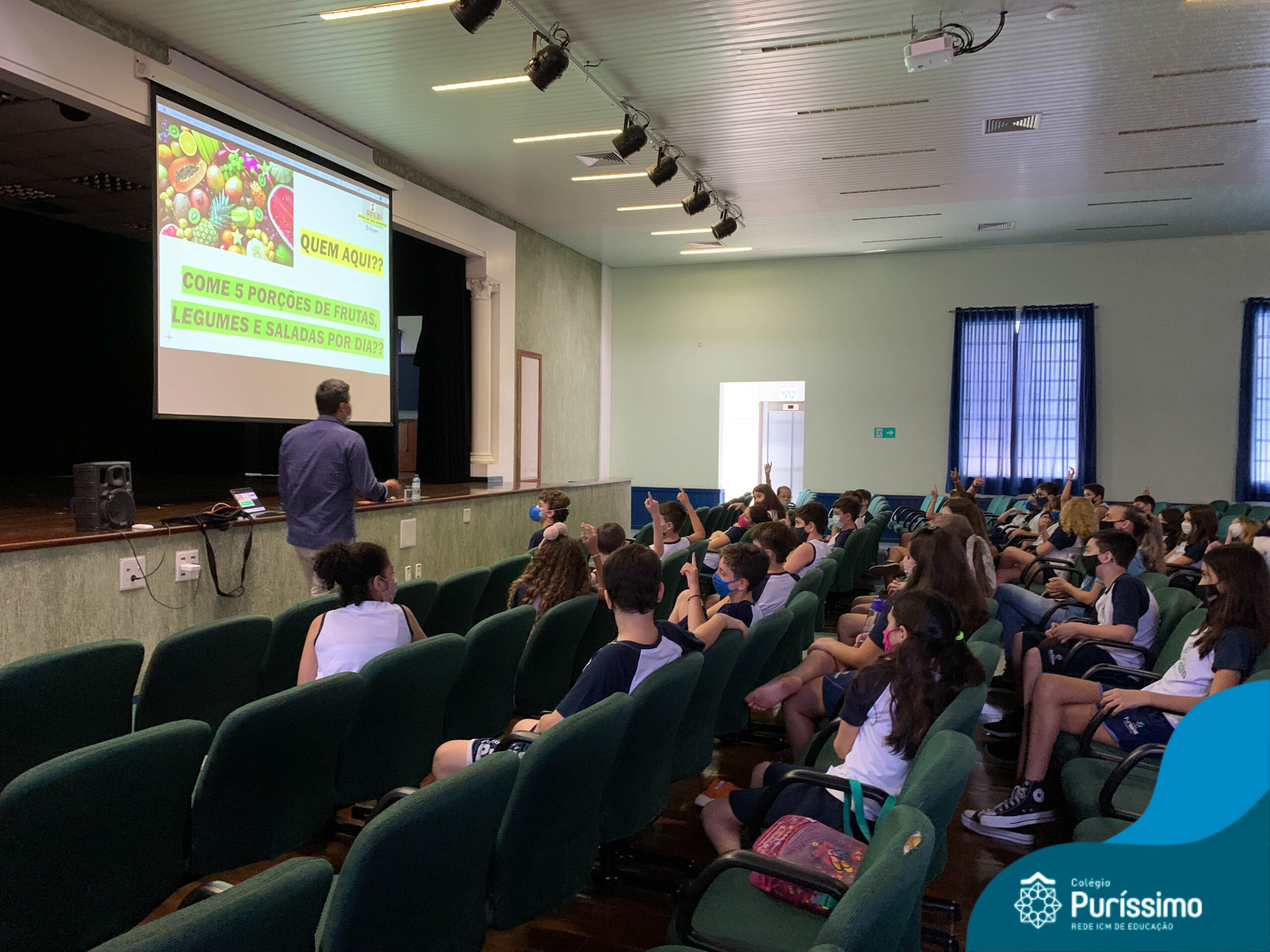 Hoje, 24 de novembro, os estudantes dos 5ºs anos do Ensino Fundamental – Anos Iniciais tiveram uma aula muito especial com o mastologista Dr. Daniel Buttros sobre Medicina do estilo de vida.