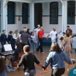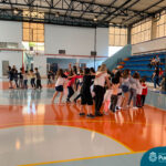 Para finalizar o evento, a professora Fernanda, de Educação Física, realizou algumas atividades com os estudantes com a participação dos seus pais.