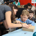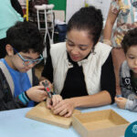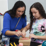 As mães também tiveram a oportunidade de aprender a fazer String Art, no nosso Espaço Maker, juntamente com seus filhos.