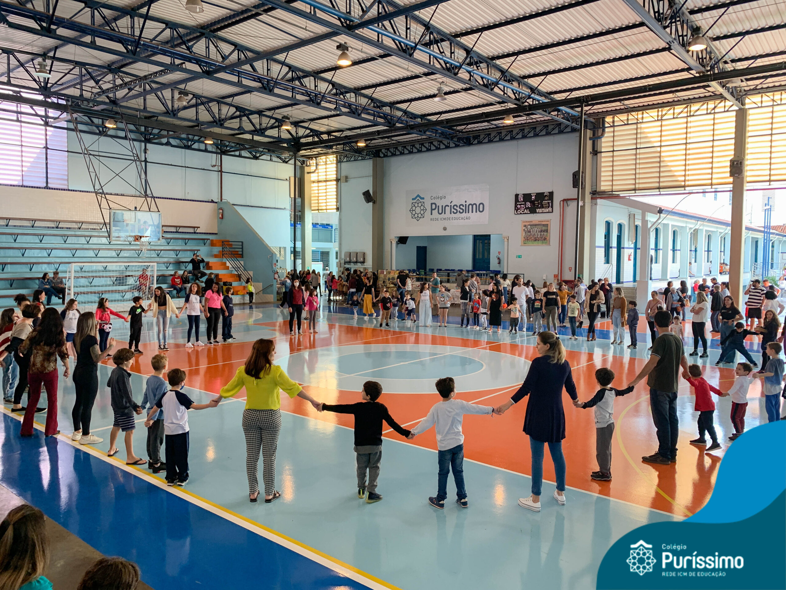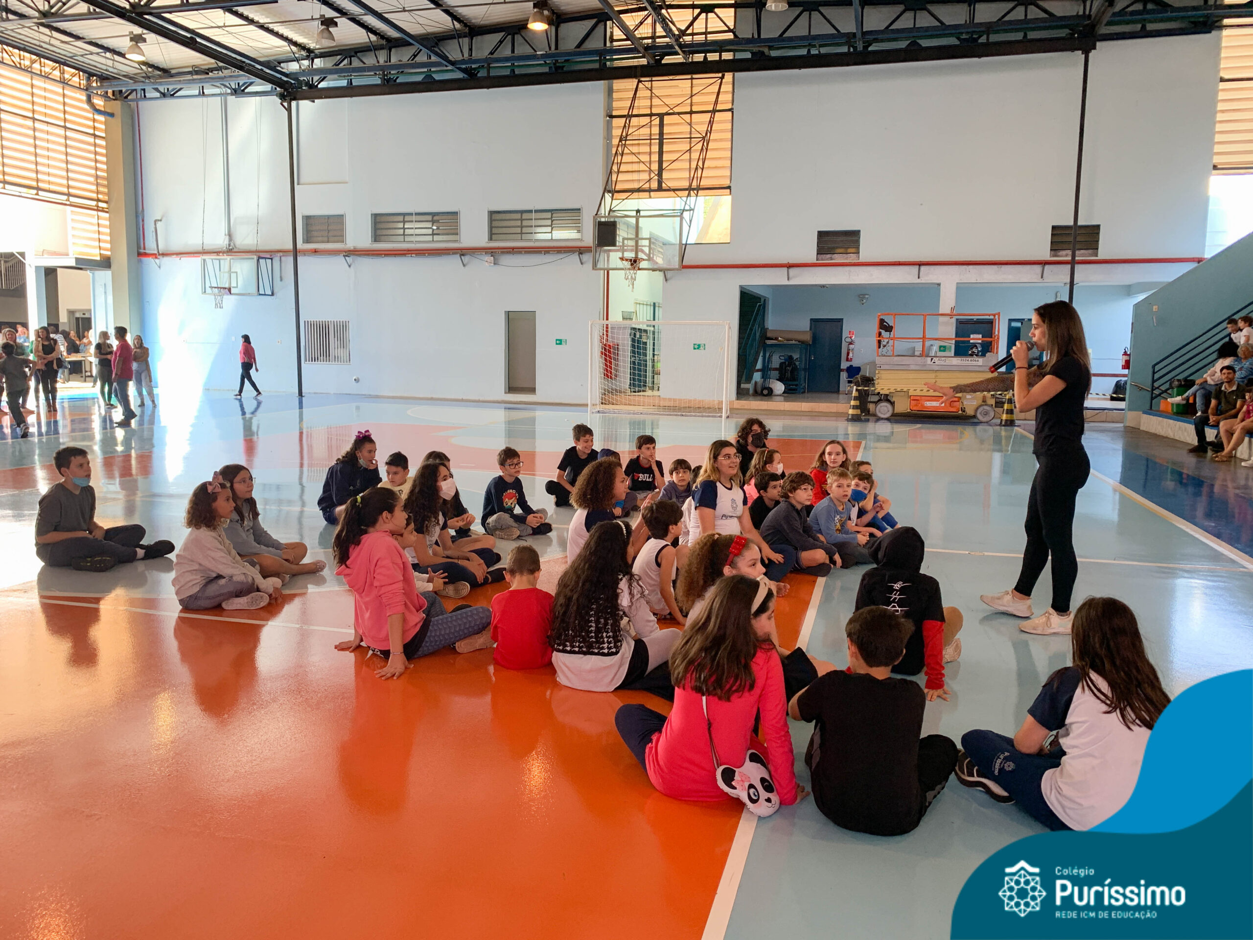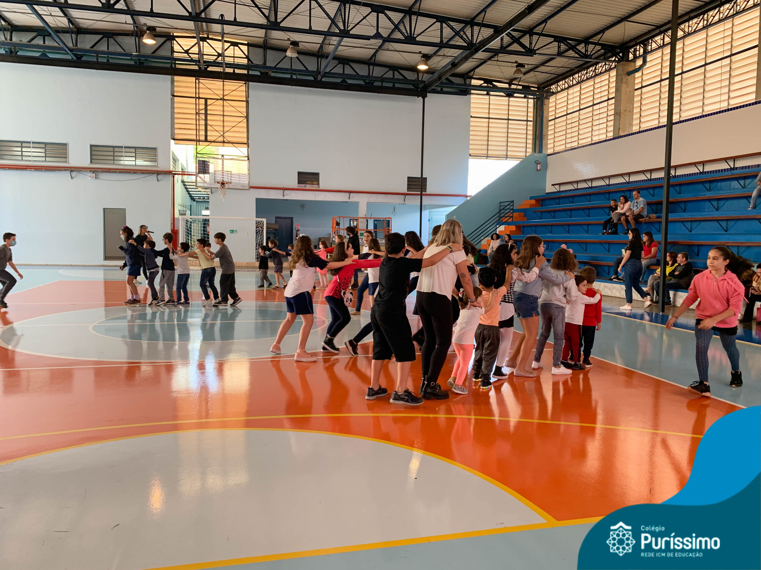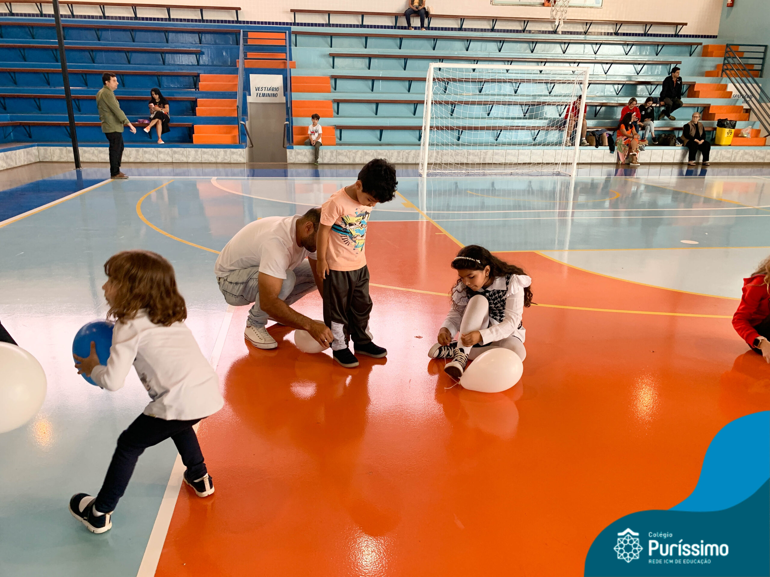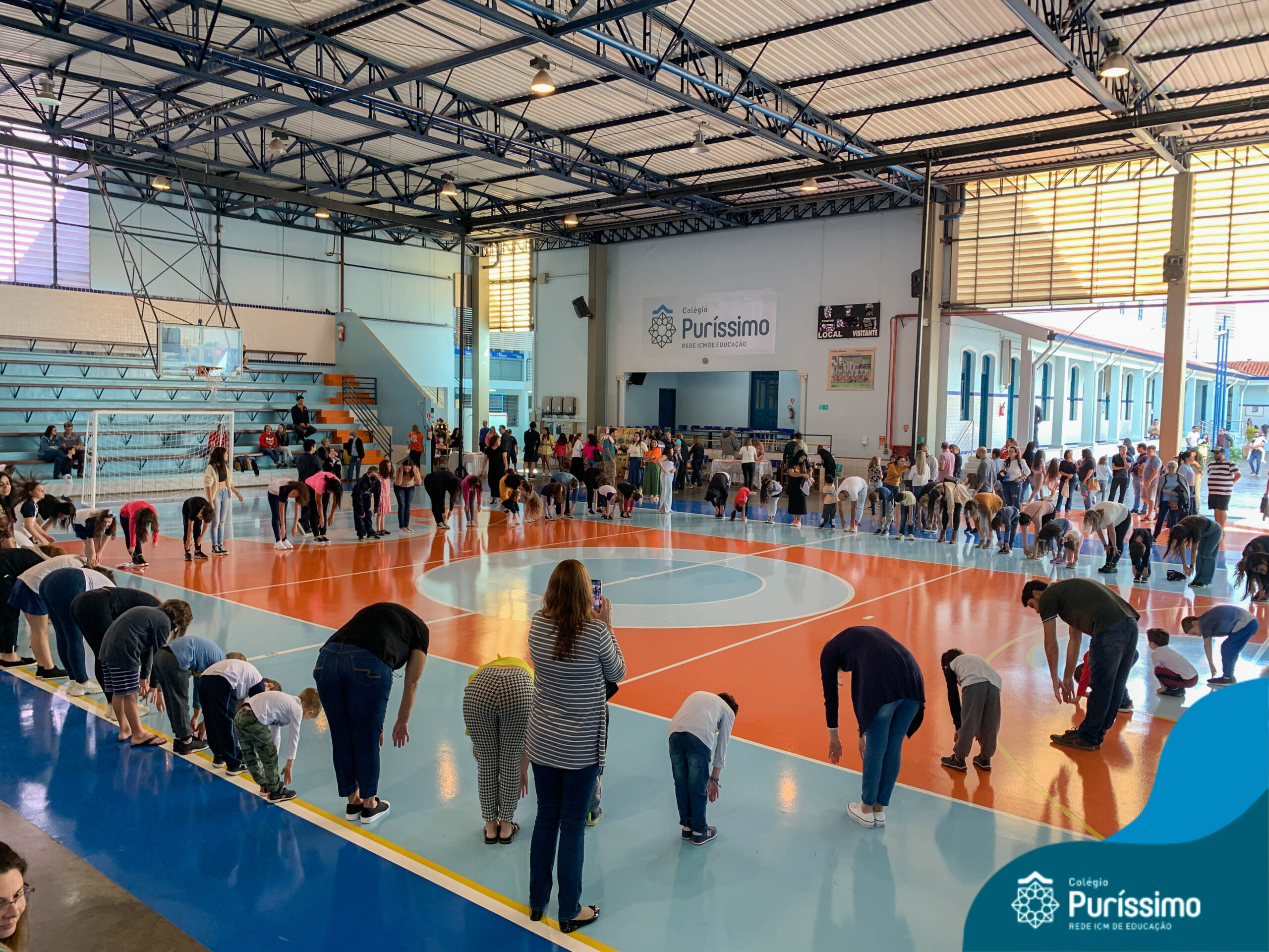 Para finalizar o evento, a professora Fernanda, de Educação Física, realizou algumas atividades com os estudantes com a participação dos seus pais.