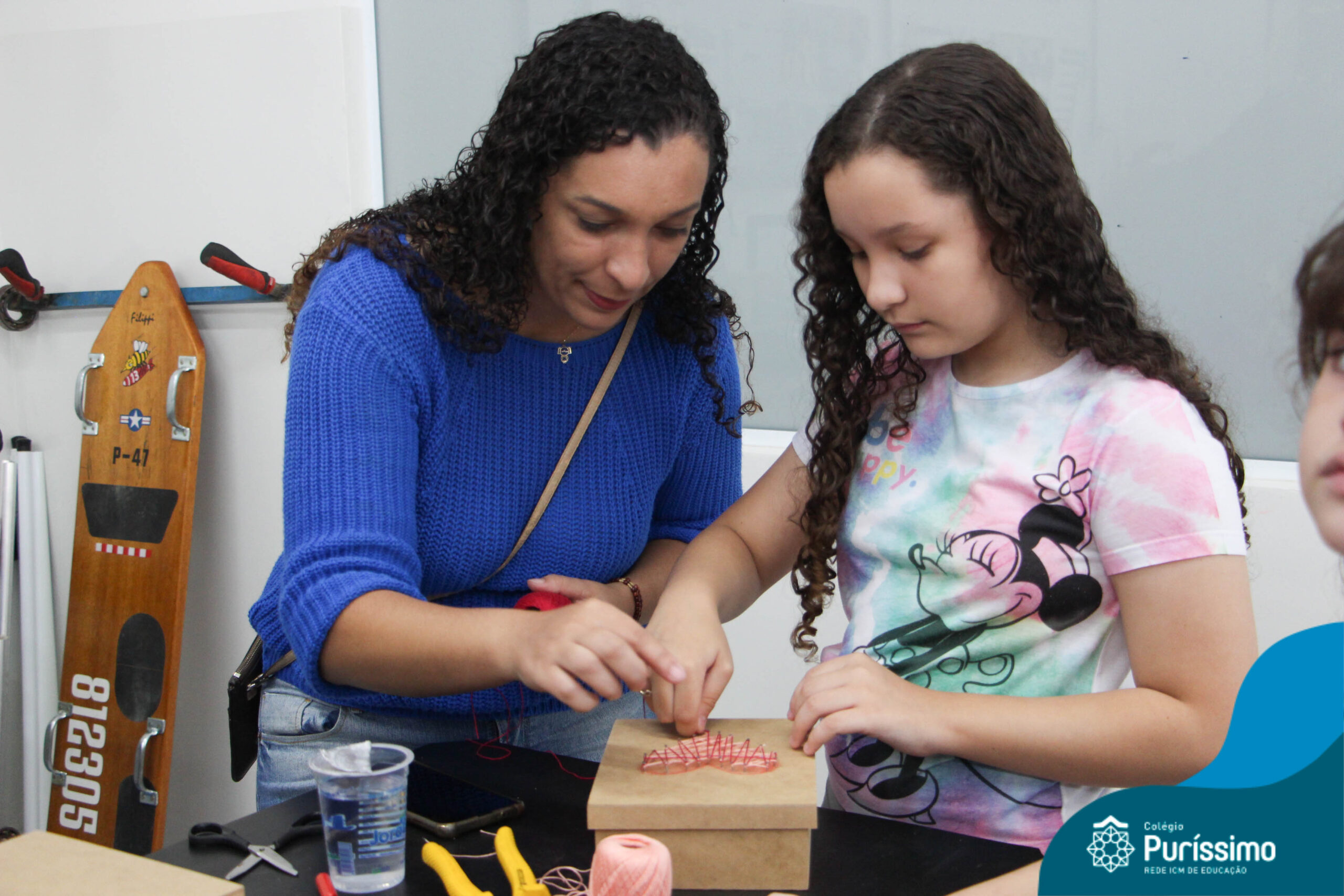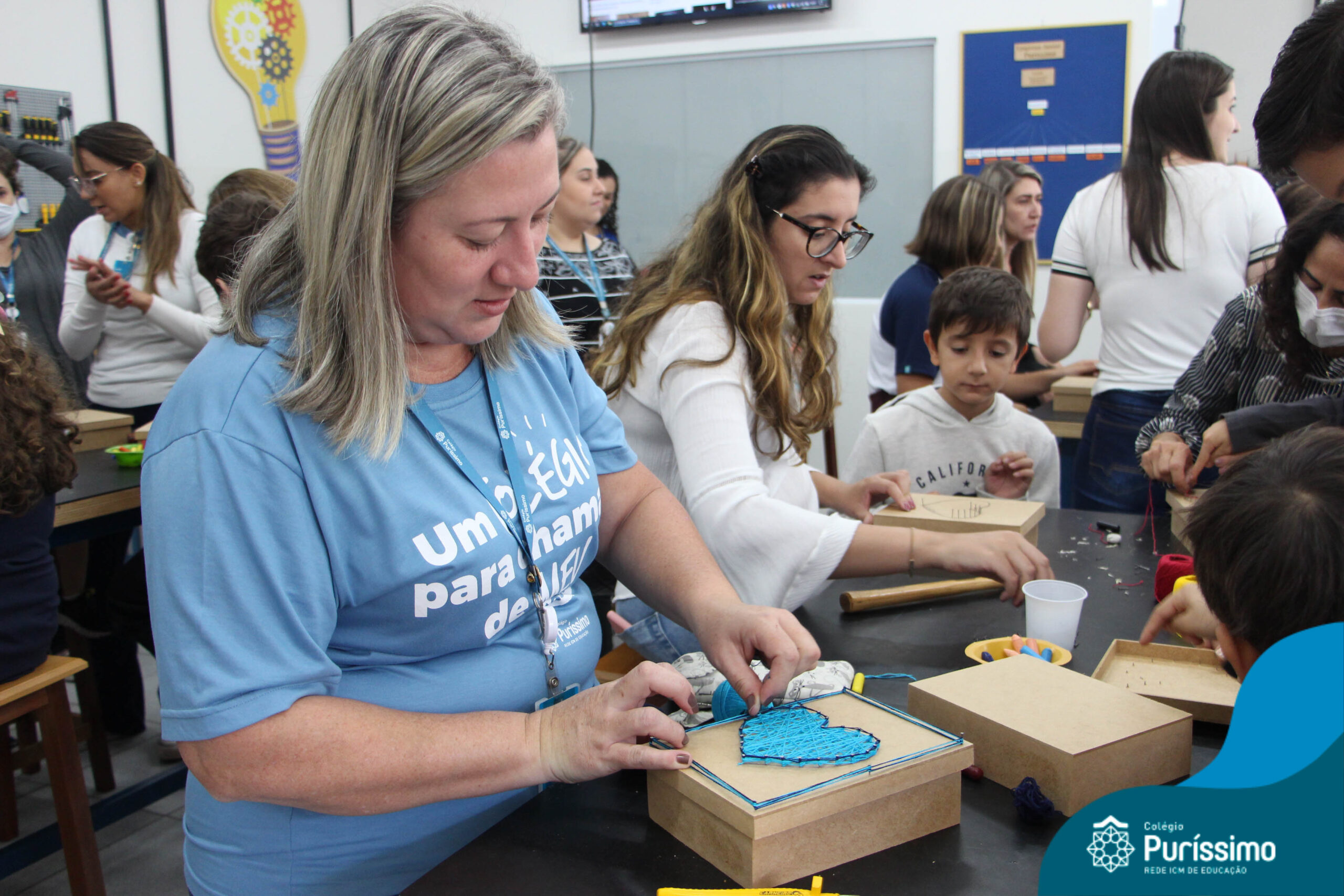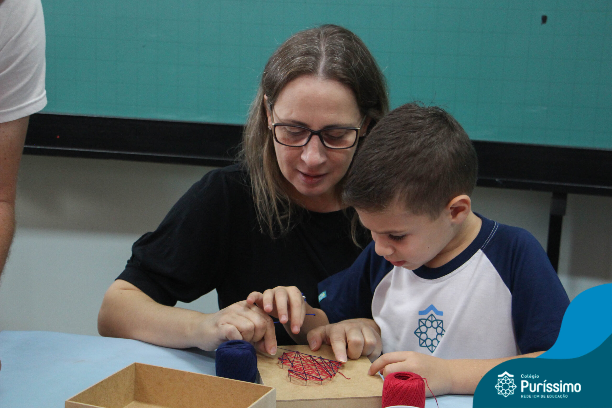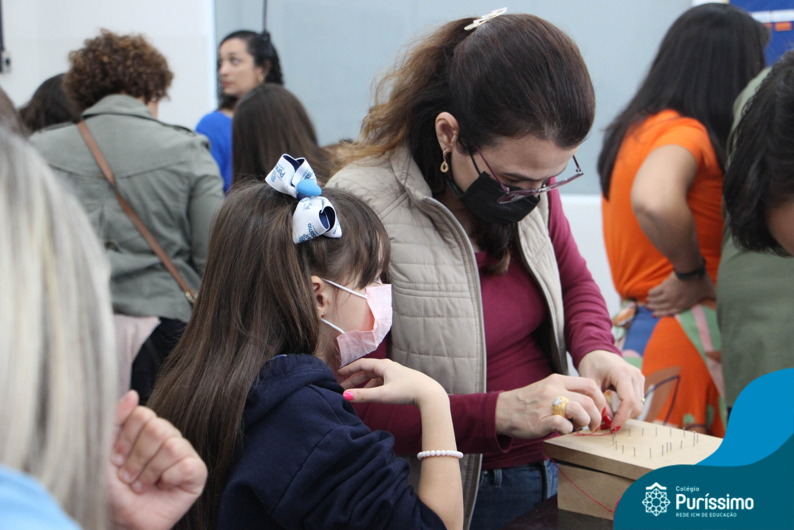 As mães também tiveram a oportunidade de aprender a fazer String Art, no nosso Espaço Maker, juntamente com seus filhos.