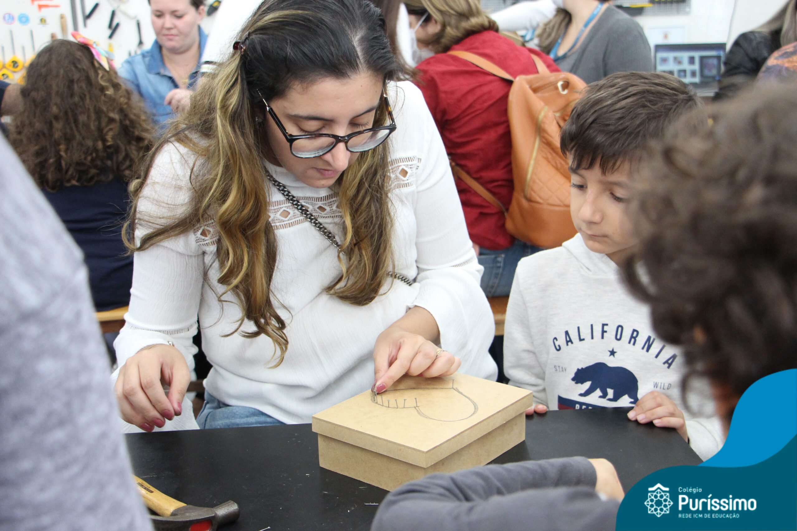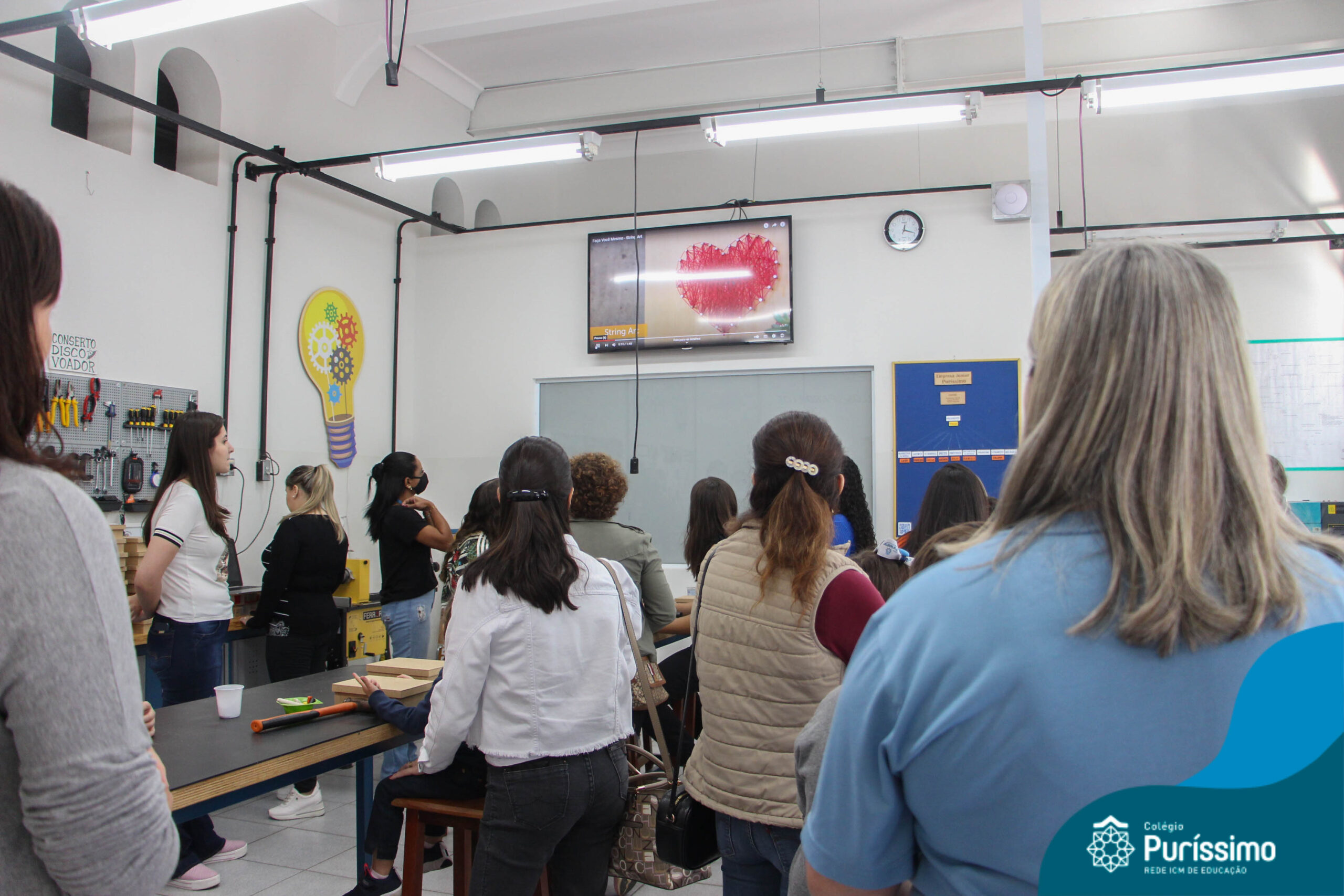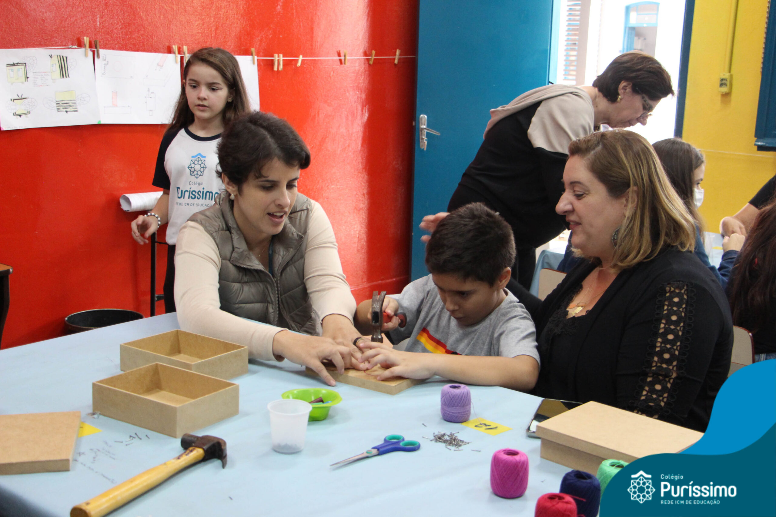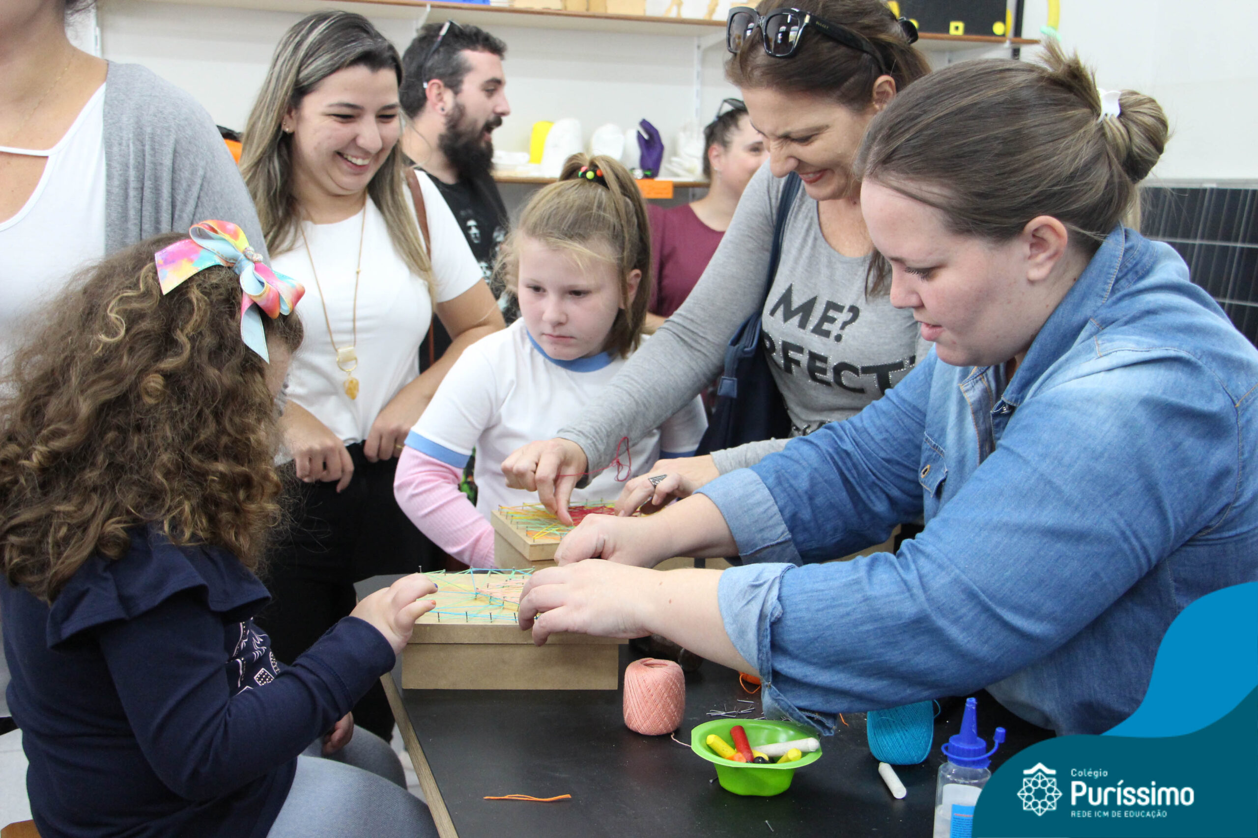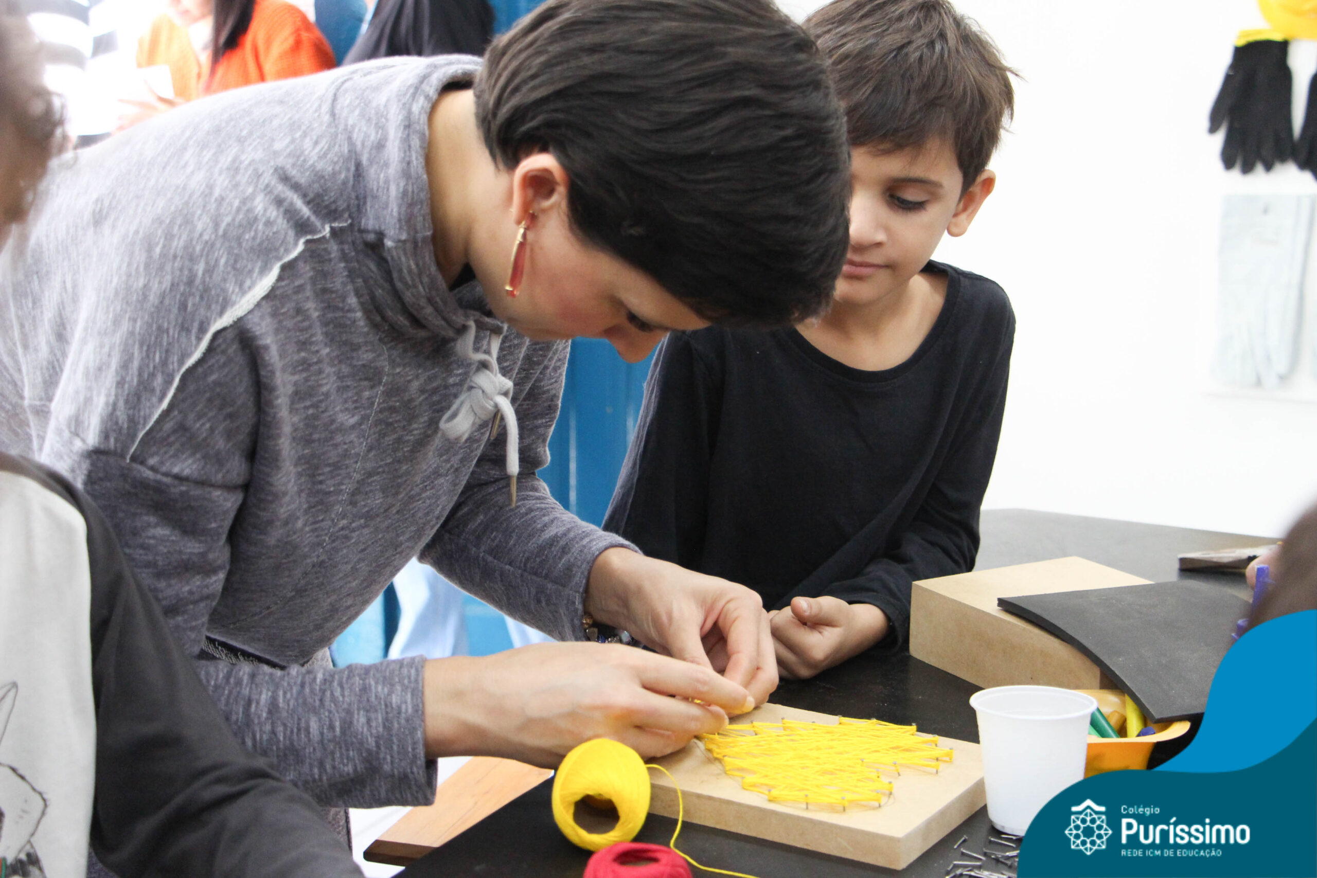 As mães também tiveram a oportunidade de aprender a fazer String Art, no nosso Espaço Maker, juntamente com seus filhos.