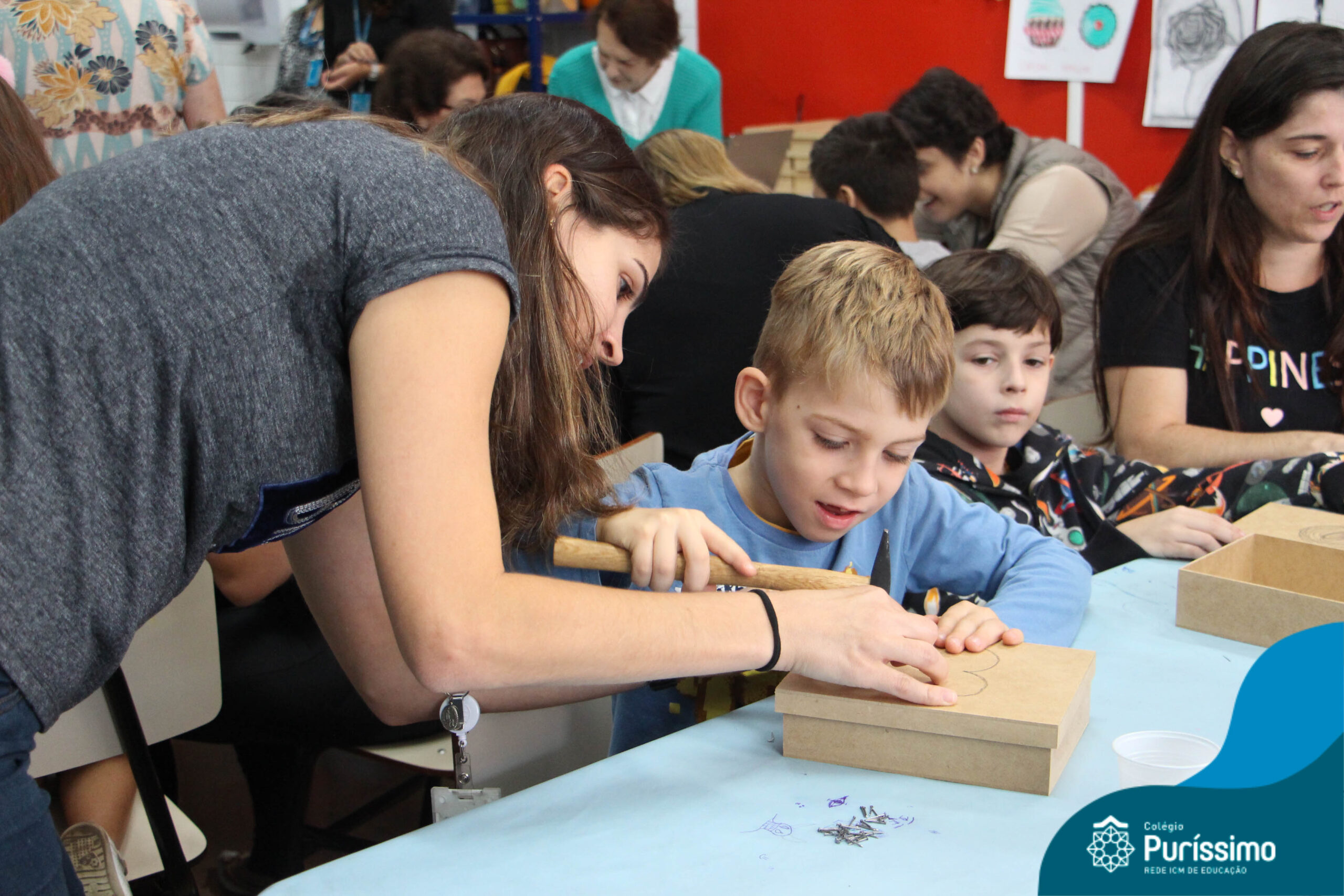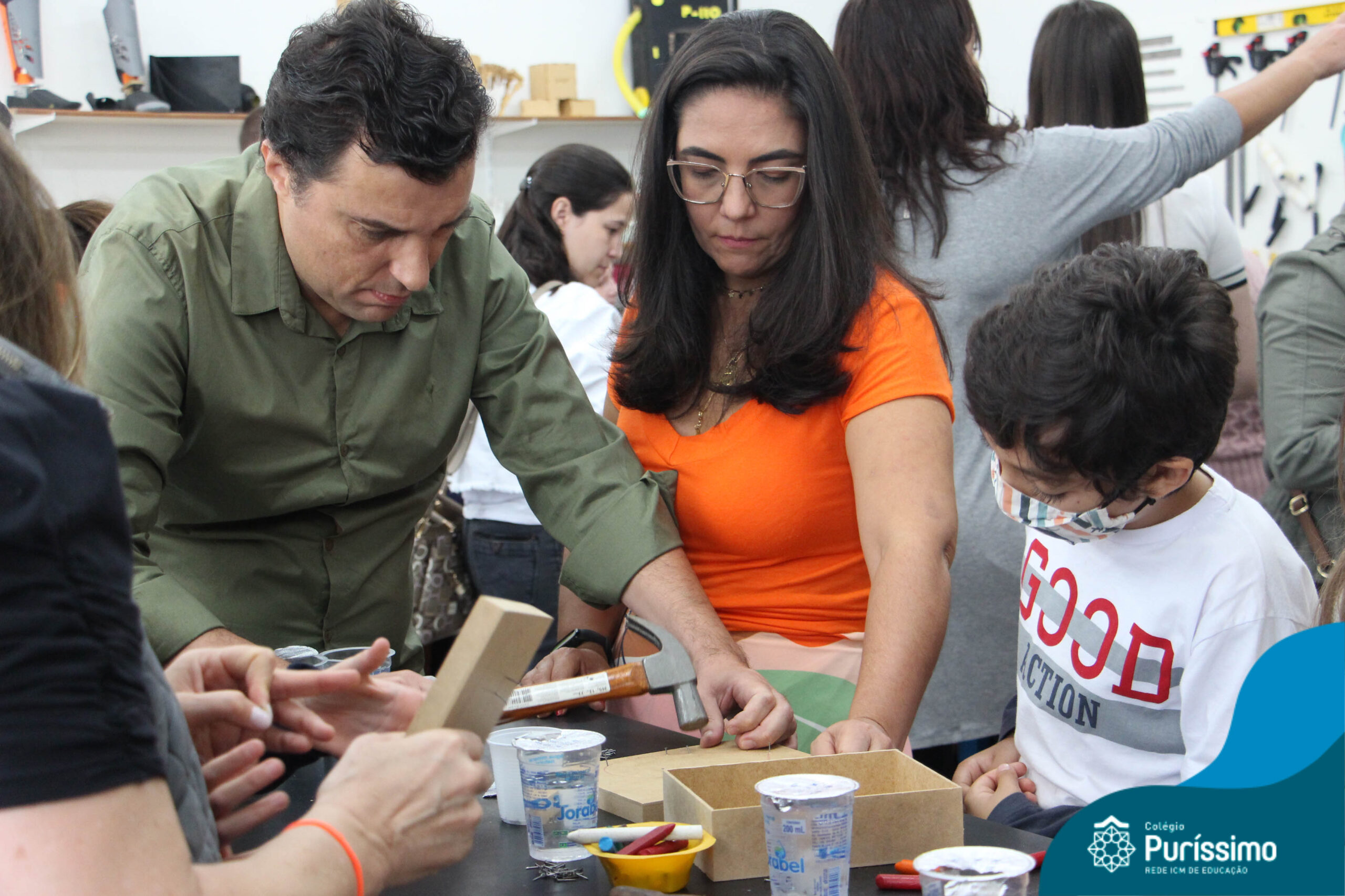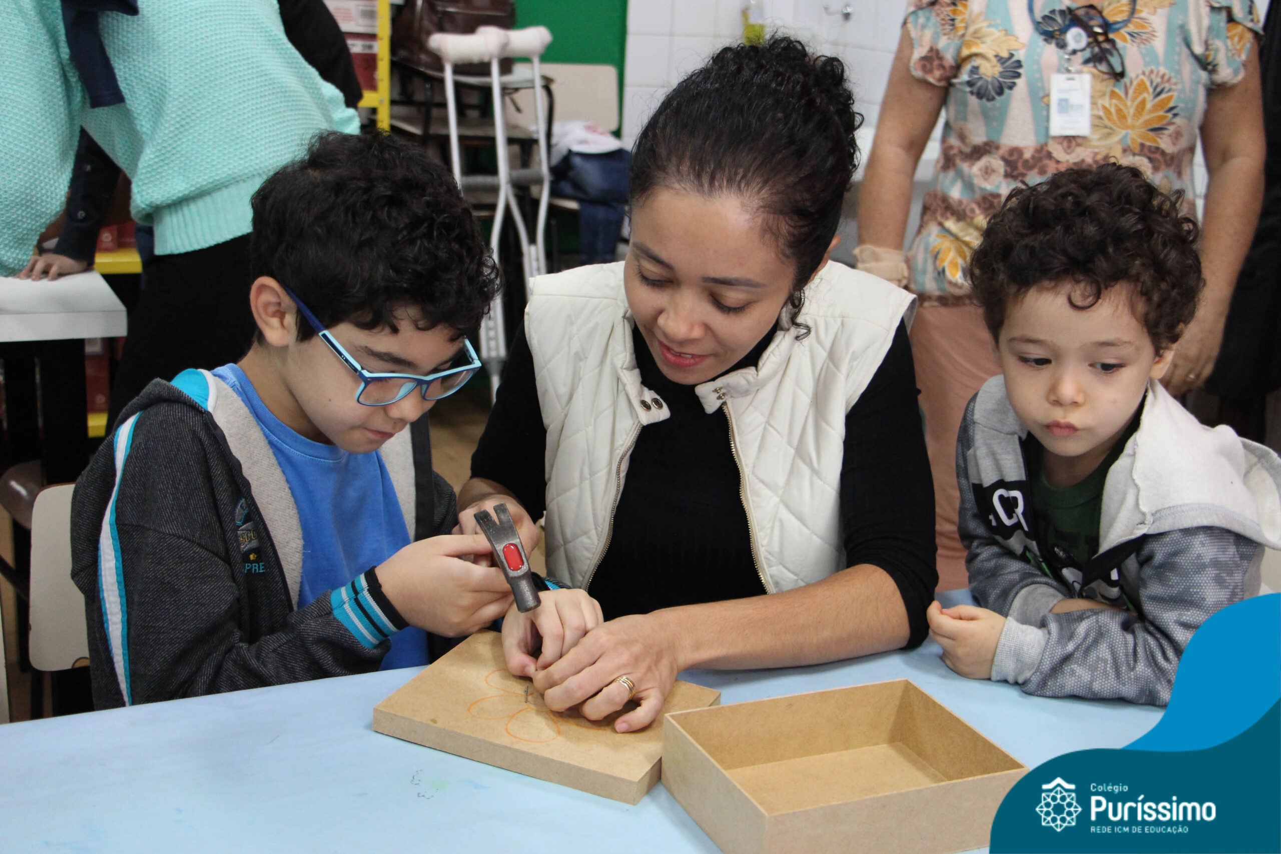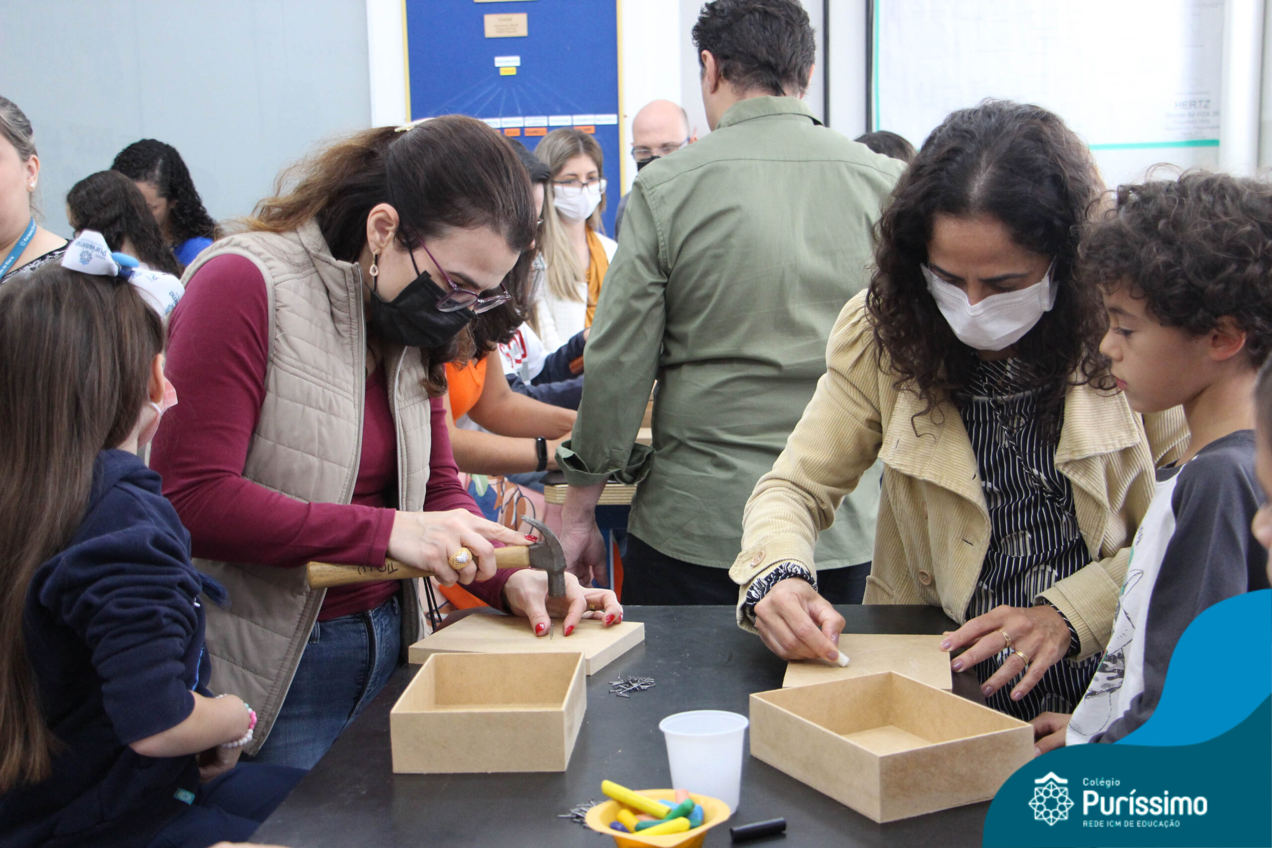 As mães também tiveram a oportunidade de aprender a fazer String Art, no nosso Espaço Maker, juntamente com seus filhos.