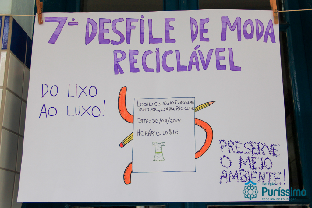 Os alunos dos 8ºs anos realizaram na semana passado o 7º Desfile de Moda Reciclável do Colégio Puríssimo, organizado pela professora de artes, Eliana Butolo.