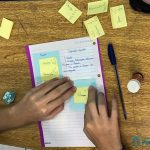 Os alunos dos 8ºs anos da manhã, desenvolveram um dicionário informal nas aulas de redação, utilizando técnicas do Design Thinking, uma abordagem que envolve a autonomia, trabalho em equipe e liderança. Essa metodologia divide-se em cinco etapas: descoberta, interpretação, idealização, experimentação e evolução. Para organizar as ideias, são utilizados post-its. A ideia é construir uma abordagem coletiva, sem fórmula pronta.
