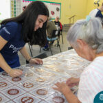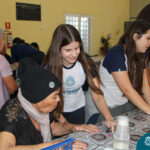 Além da convivência, bate papo e partilha, os estudantes construíram com os idosos um mobile, utilizando folhas e plantas foram recolhidas do chão ao longo do mês e colocadas para secarem, uma vez que a atividade visa também ter presente o cuidado com a Casa Comum.