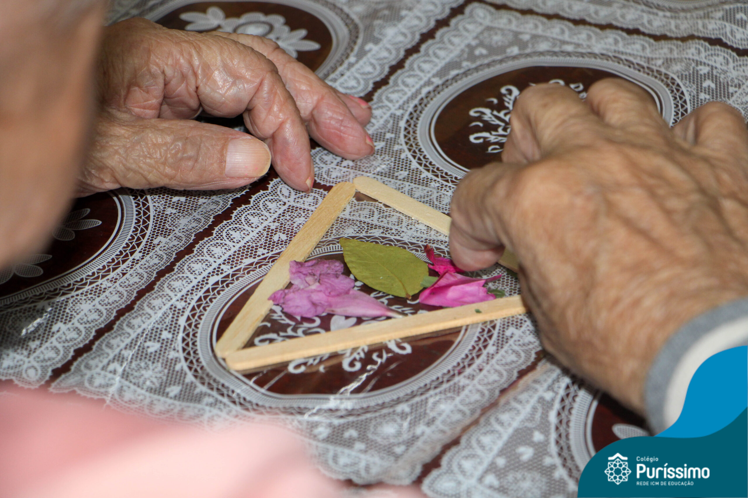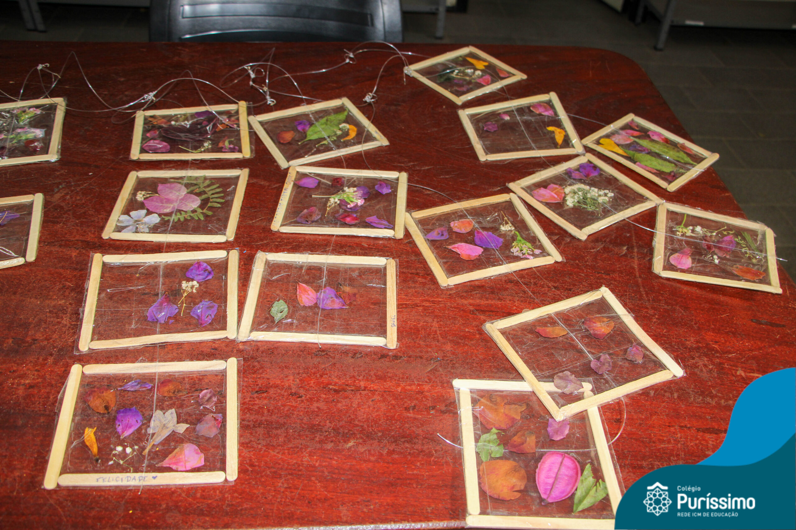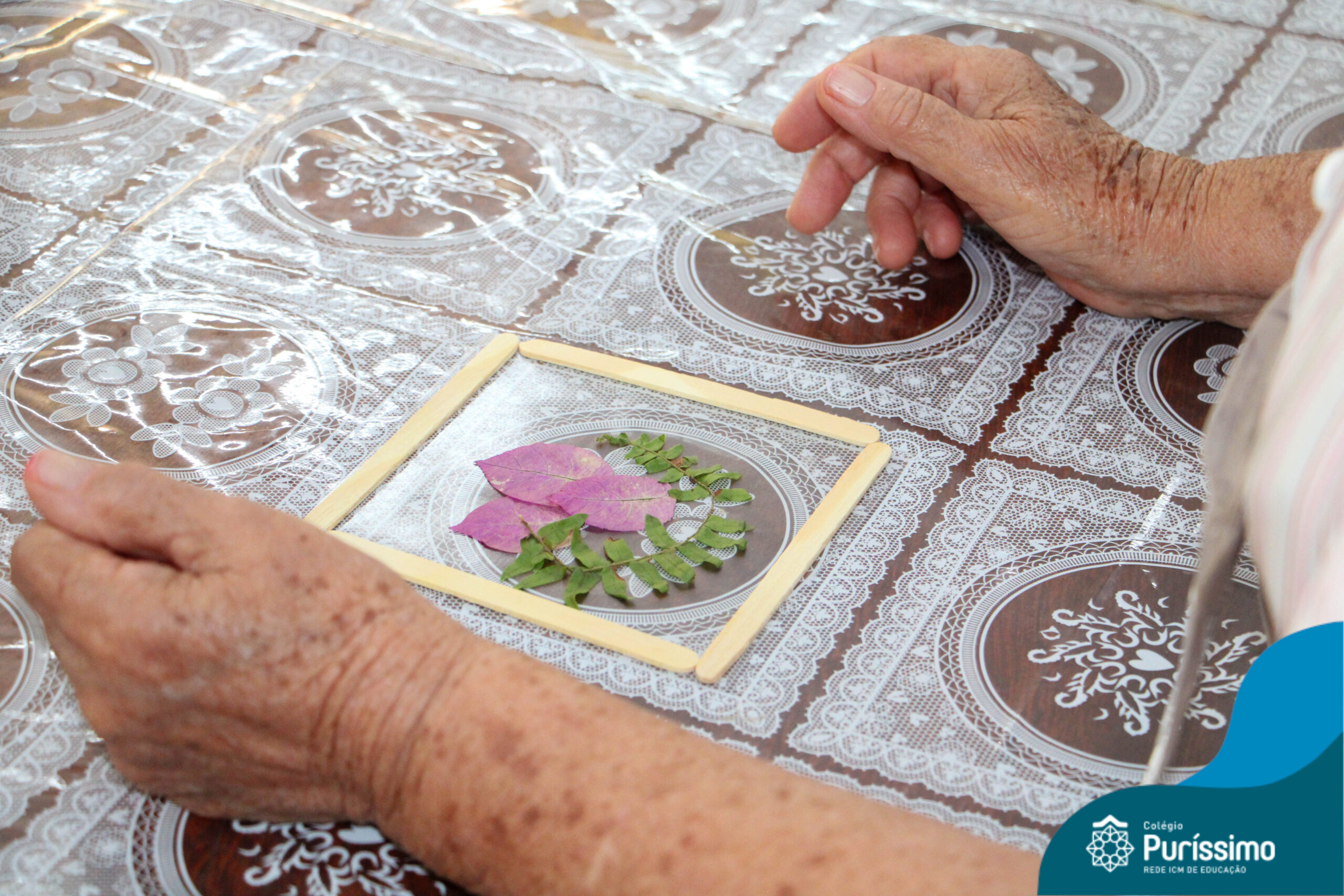 Além da convivência, bate papo e partilha, os estudantes construíram com os idosos um mobile, utilizando folhas e plantas foram recolhidas do chão ao longo do mês e colocadas para secarem, uma vez que a atividade visa também ter presente o cuidado com a Casa Comum.