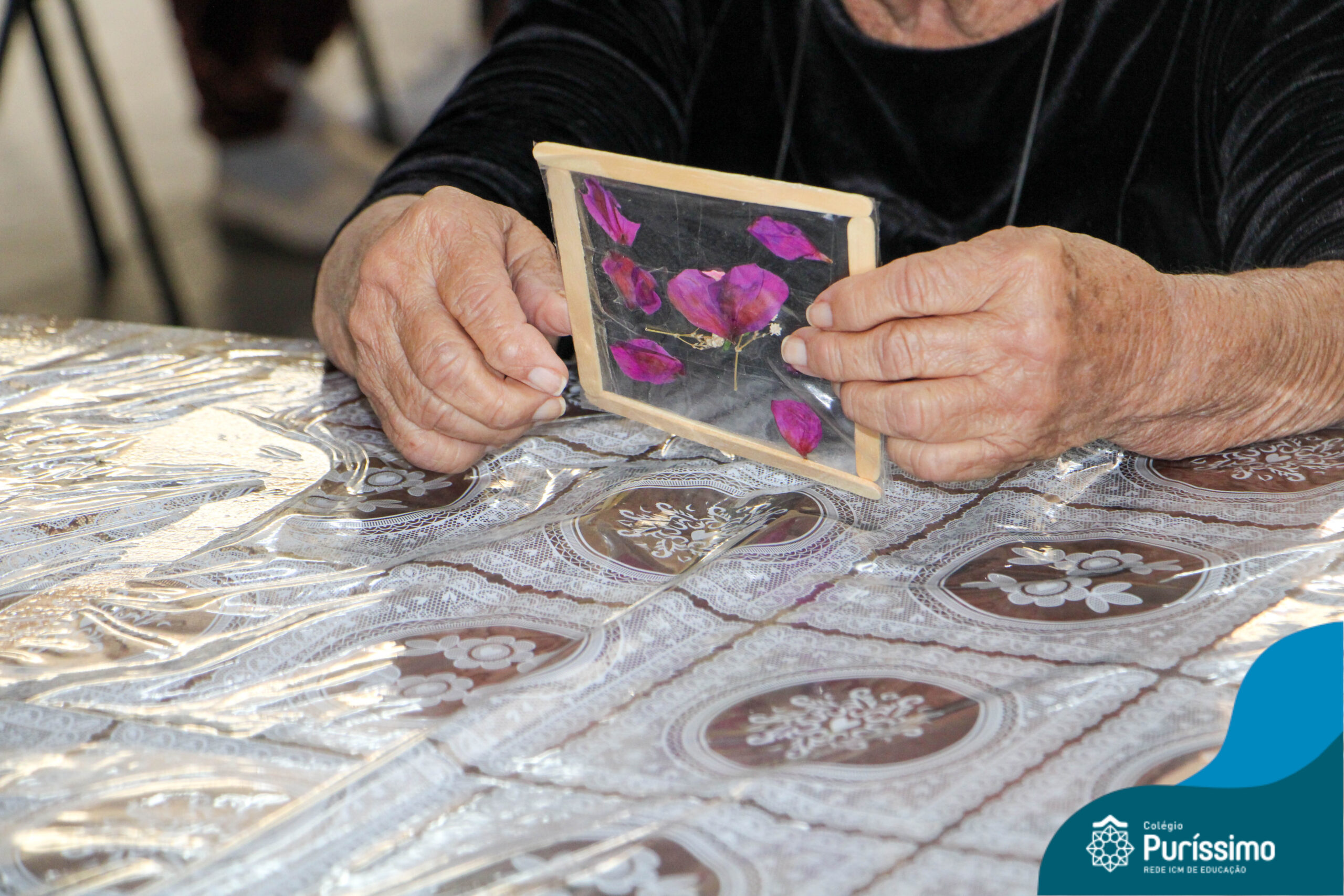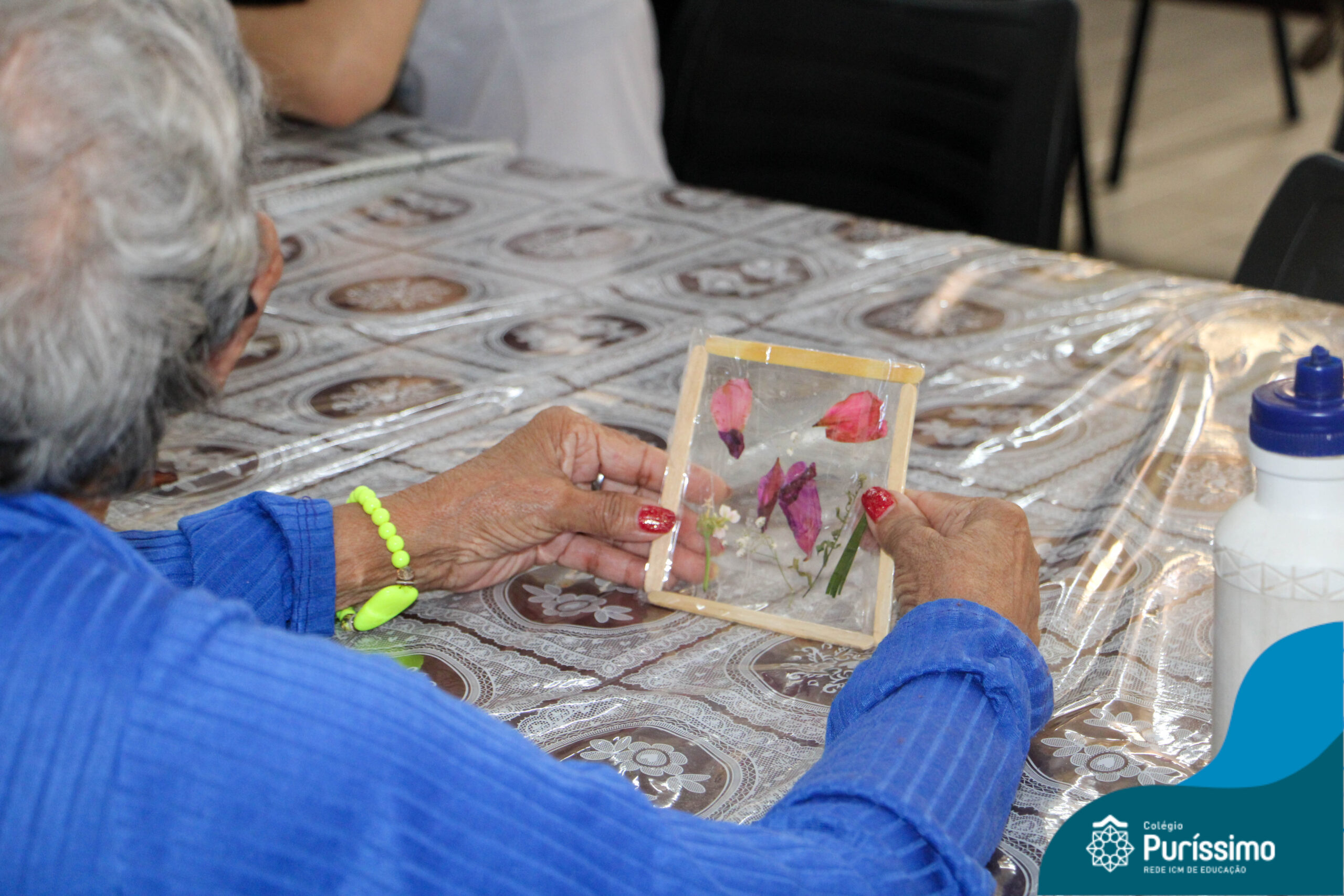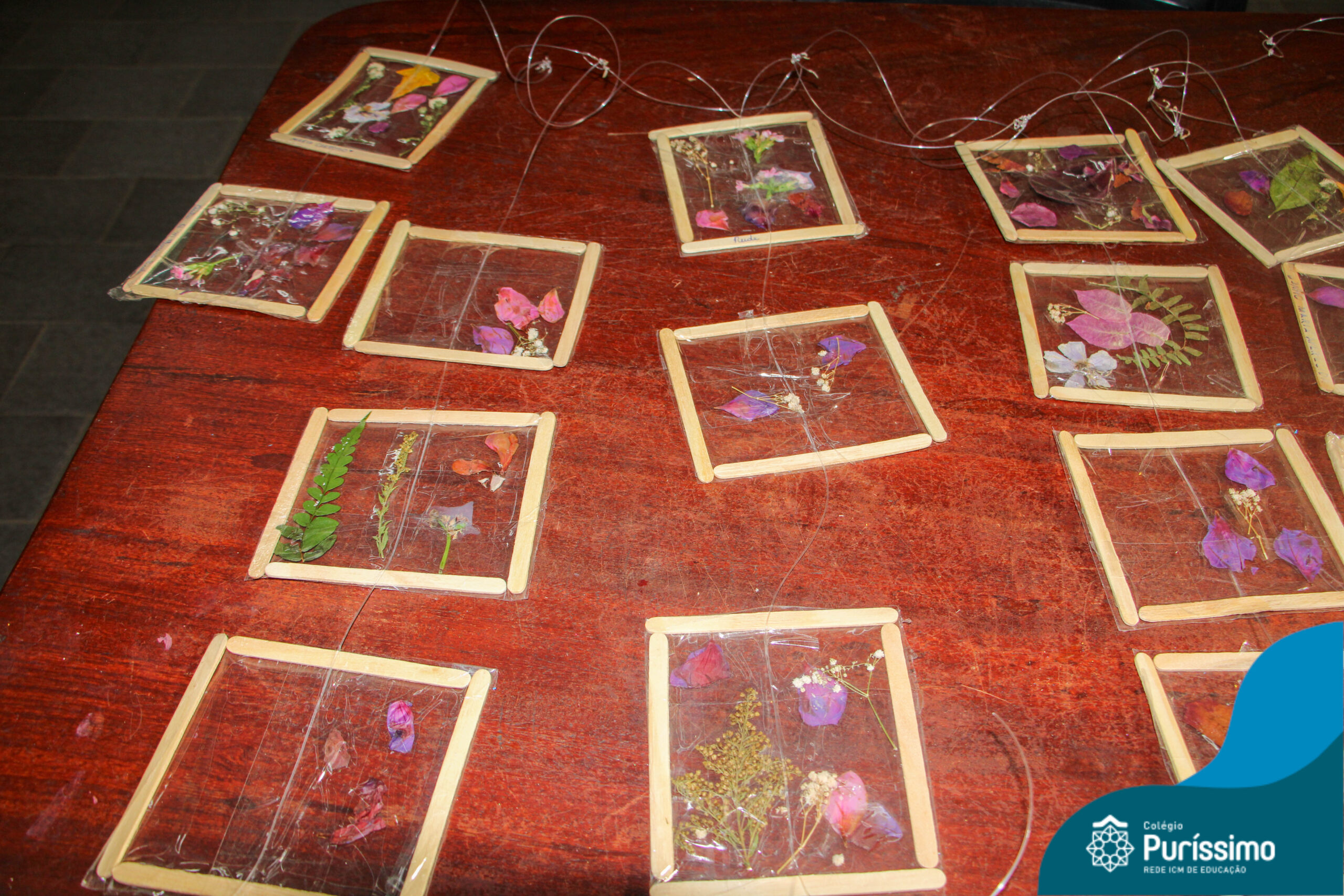 Além da convivência, bate papo e partilha, os estudantes construíram com os idosos um mobile, utilizando folhas e plantas foram recolhidas do chão ao longo do mês e colocadas para secarem, uma vez que a atividade visa também ter presente o cuidado com a Casa Comum.