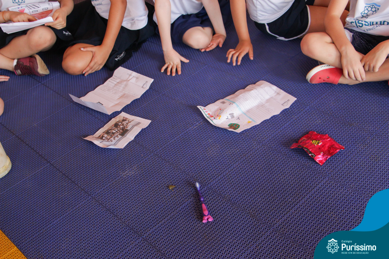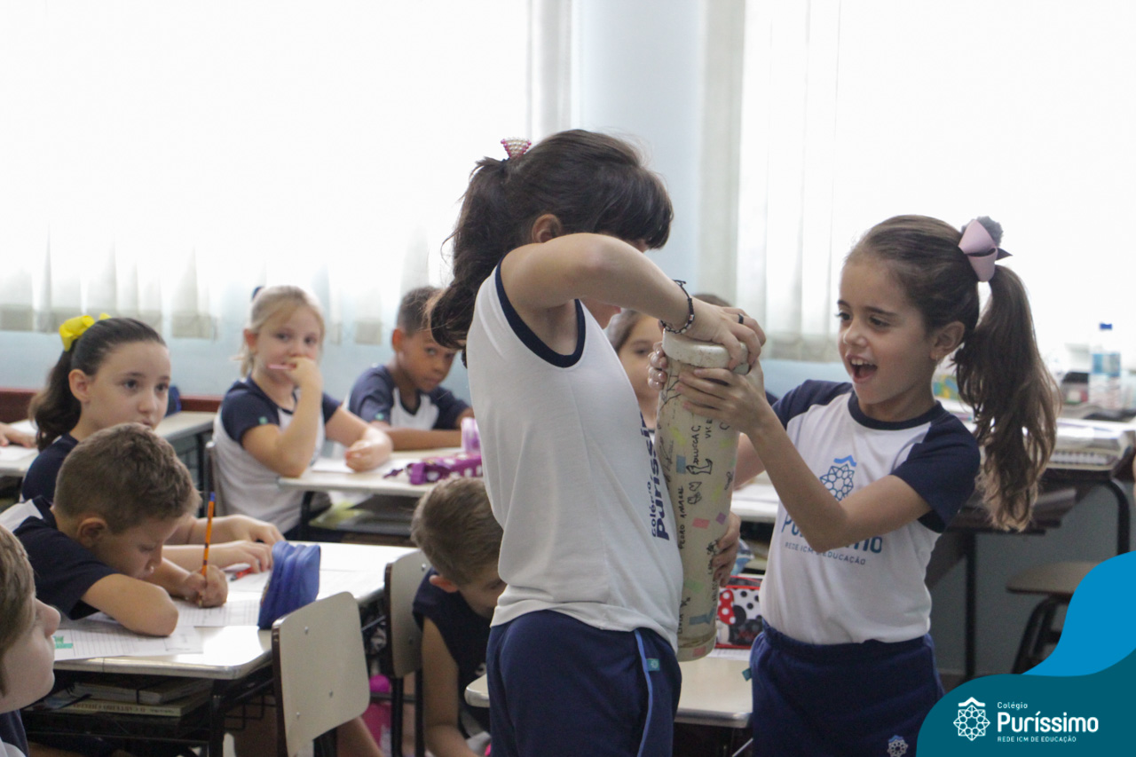 Para encerrar o projeto da Cápsula do Tempo, os alunos dos 2ºs anos do Ensino Fundamental I, desenterraram com a ajuda do funcionário Naldo, as cápsulas de cada sala.
