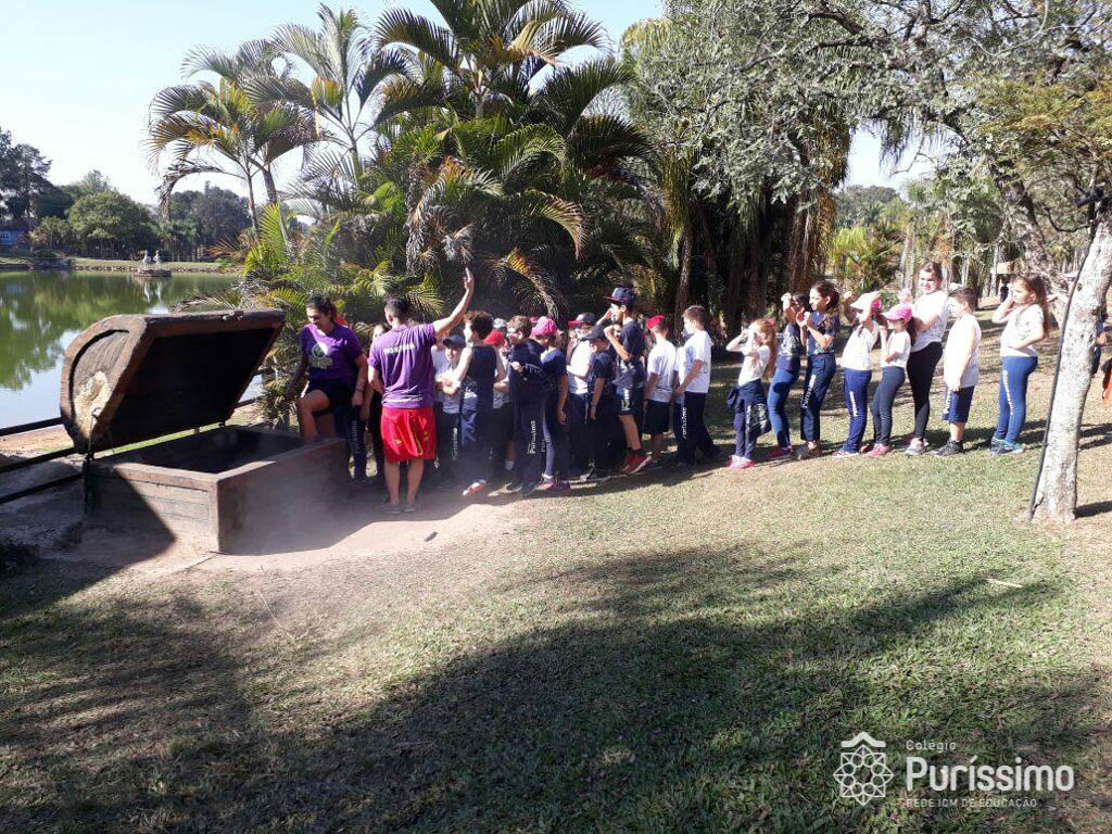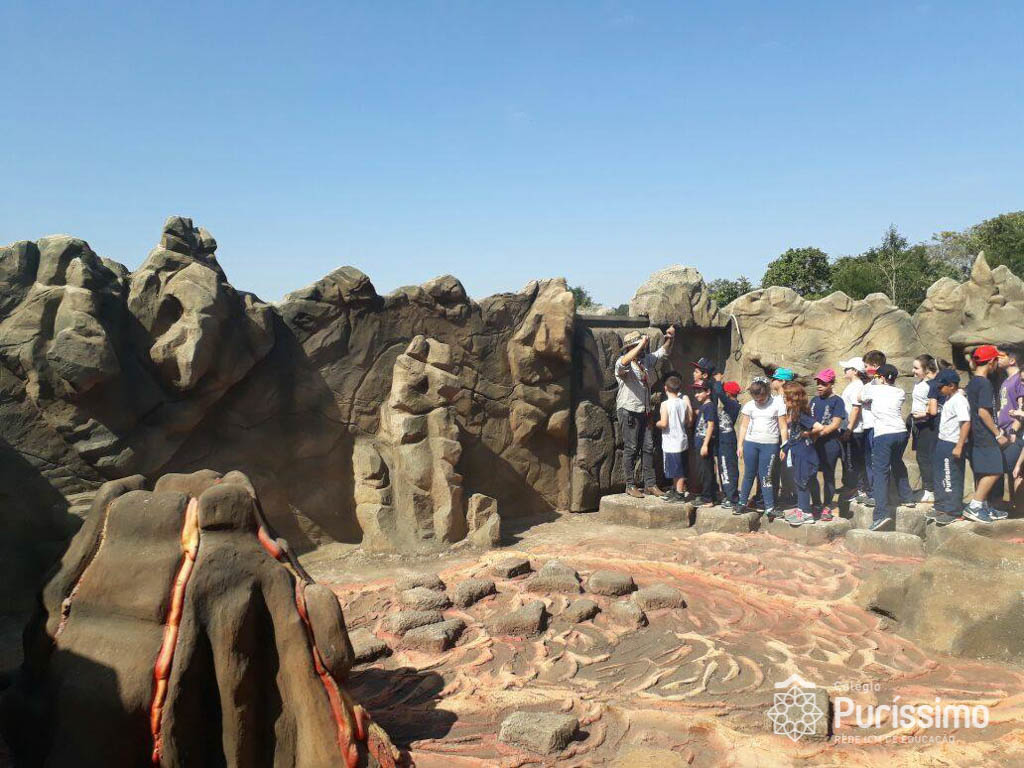 Com essa vivência foi possível aprofundar os estudos do livro do trimestre “A caverna dos dinossauros: o ataque do monstro de três chifres”, bem como conhecer a história do local, visitar a caverna da árvore falante, andar por uma trilha desvendando enigmas envolvendo a preservação do meio ambiente, passando por túneis, cavernas e labirinto com o objetivo de conhecer um pouco mais da Era Mesozoica. Ao final dessa aventura, os alunos se depararam com um “dinossauro”.