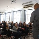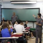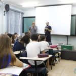 Os estudantes receberam o Subtenente Carmo, pai da ex-aluna Isabela do Carmo, e o Sargento Gonçalves, pai dos alunos Alexandre Moura do 3°ano do EF e Ana Carolina Gonçalves do 1°ano do EF, o Corpo de Bombeiros de Rio Claro.