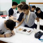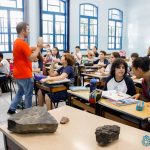 Os alunos dos 6ºs anos investigaram durante o mês de Abril, a origem e evolução da vida na Terra nas aulas de Geografia do Professor Tiago e de Ciências da Professora Fabiana. Os alunos estudaram e puderam interagir com as diferentes eras geológicas, simular a dinâmica tectônica, classificar rochas e minerais e analisar alguns fósseis. Utilizando aplicativos (a saber: “a Terra”, “earth Viwer” e “Dynamic plates”) e manipulando rochas, minerais e fósseis (nomeadamente o Mesosaurus, disponível no acervo paleontológico do Colégio) os alunos fizeram uma verdadeira viagem à origem da Terra!