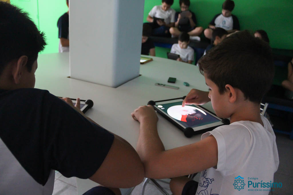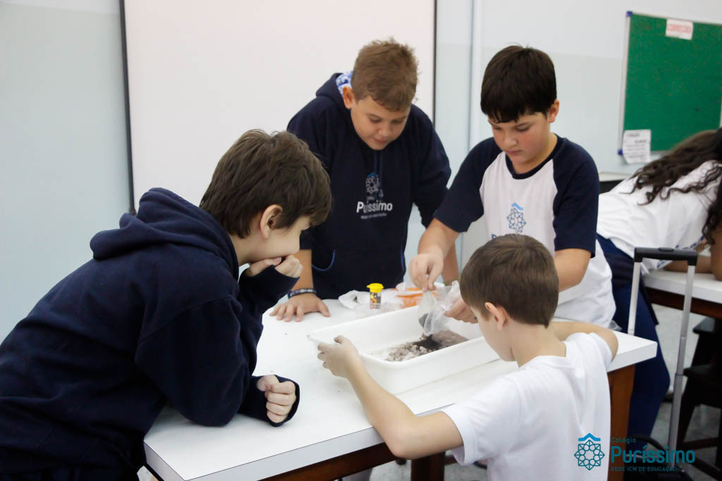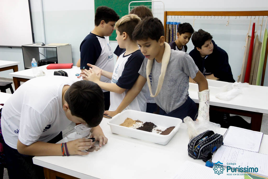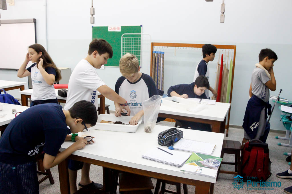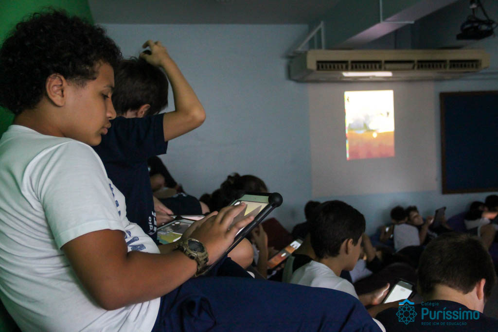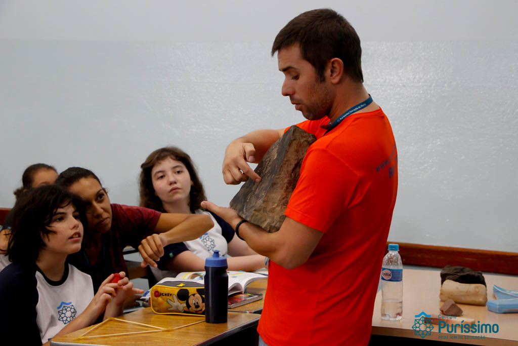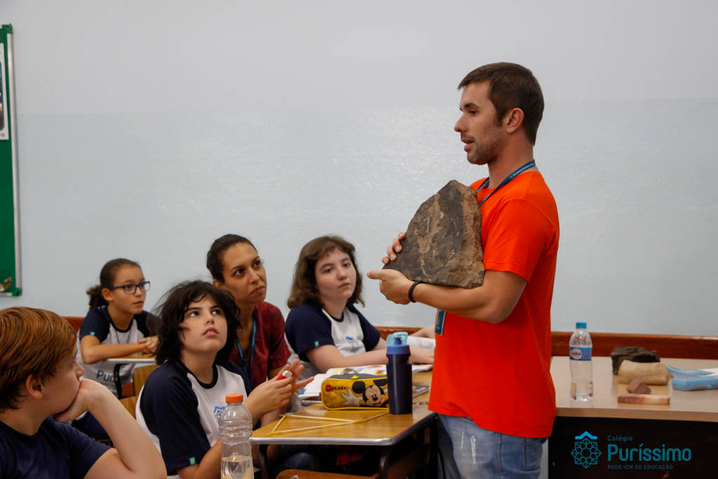 Os alunos dos 6ºs anos investigaram durante o mês de Abril, a origem e evolução da vida na Terra nas aulas de Geografia do Professor Tiago e de Ciências da Professora Fabiana. Os alunos estudaram e puderam interagir com as diferentes eras geológicas, simular a dinâmica tectônica, classificar rochas e minerais e analisar alguns fósseis. Utilizando aplicativos (a saber: “a Terra”, “earth Viwer” e “Dynamic plates”) e manipulando rochas, minerais e fósseis (nomeadamente o Mesosaurus, disponível no acervo paleontológico do Colégio) os alunos fizeram uma verdadeira viagem à origem da Terra!