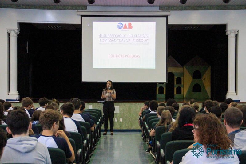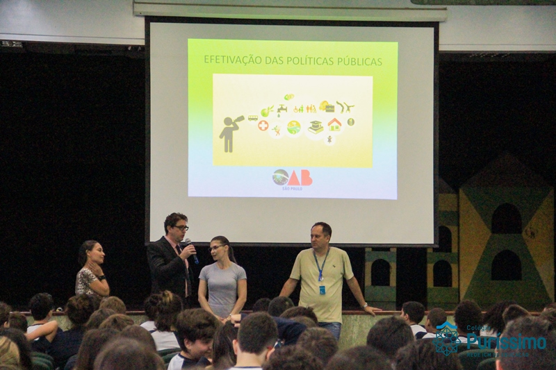 Para este momento, contamos com a presenças das Doutoras Maísa Cristina Nunes, Luciana Imperatore Vianna, Fernanda Hebling e todas da Comissão da OAB vai à escola, além do Doutor Marcos Vasques, presidente da respectiva comissão.