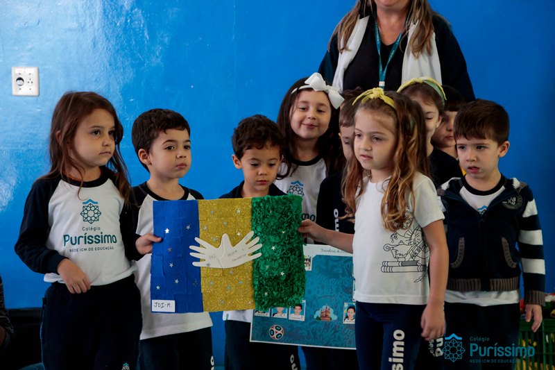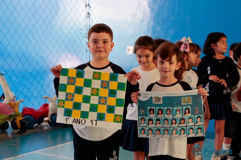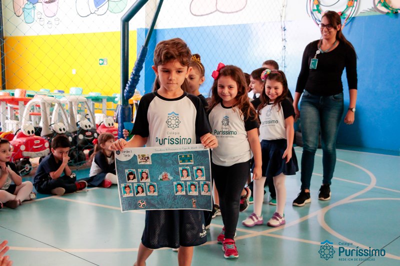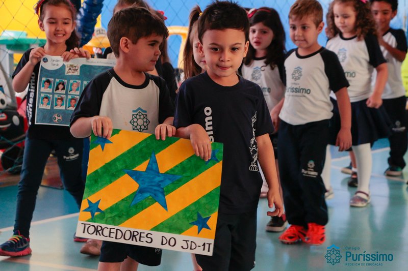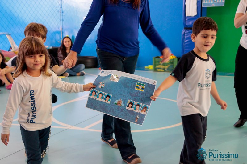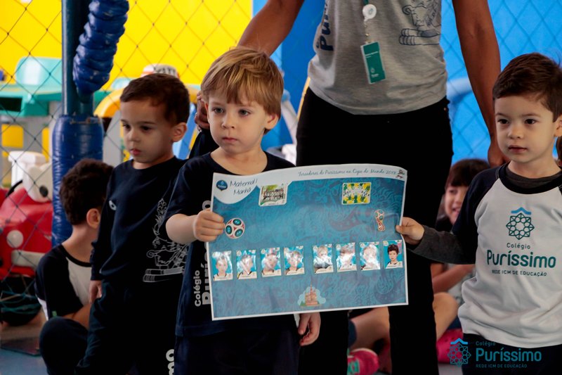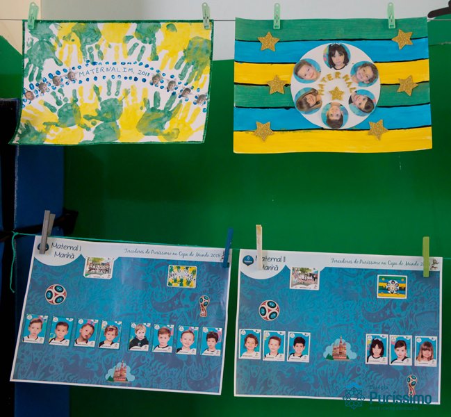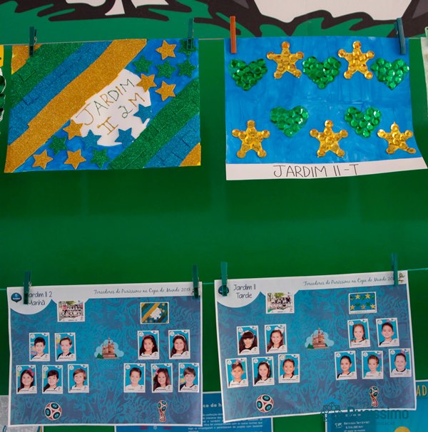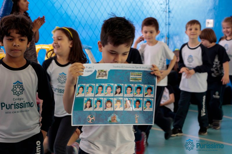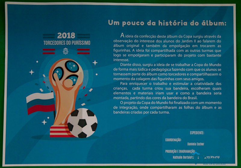 Ontem tivemos o lançamento do álbum dos torcedores da Copa 2018, que envolve os alunos da Educação Infantil aos 1ºs anos. A ideia do álbum surgiu da empolgação das crianças em torcer para o Brasil e da alegria em trocar as figurinhas do álbum oficial, com isso, para trabalhar a Copa do Mundo de maneira mais lúdica, transformarmos os alunos em jogadores/torcedores e todos viraram figurinhas. Cada sala confeccionou uma bandeira com as cores do Brasil e tudo isso se tornou um álbum colorido e divertido para as crianças participarem ainda mais da torcida pelo hexa e se aprenderem sobre a Copa.