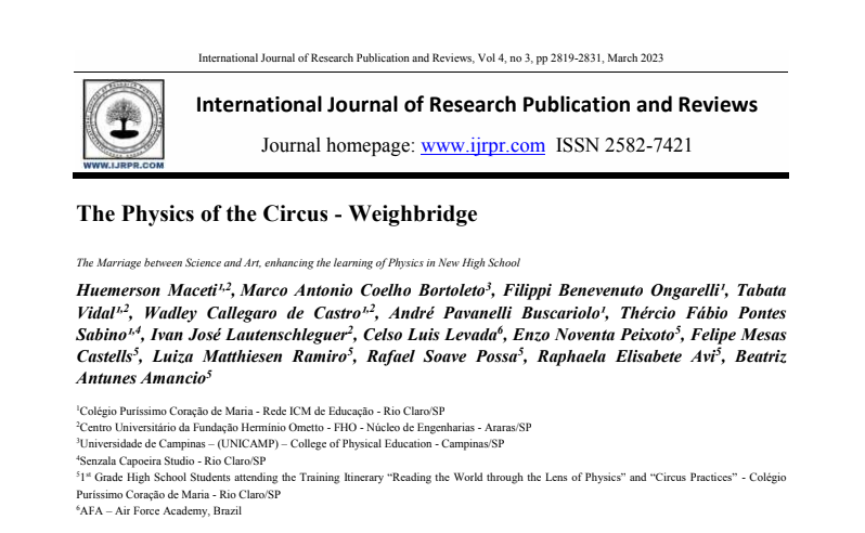 O artigo conta com a autoria dos alunos de Ensino Médio Enzo Noventa Peixoto, Felipe Mesas Castells, Luiza Matthiesen Ramiro, Rafael Soave Possa, Raphaela Elisabete Avi e Beatriz Antunes Amancio, todos de primeiro ano do Ensino Médio em 2022, dos professores de Física do Colégio, Huemerson Maceti, Filippi Benevenuto Ongarelli. Tabata Vidal, Wadley Callegaro de Castro e André Pavanelli Buscariolo, do professor de Educação Física e Itinerário Formativo de Práticas Circenses, Thércio Fábio Pontes Sabino, do professor de Educação Física e Circo da UNICAMP, Marco Antonio Coelho Bortoleto, do professor de Física da FHO, Ivan José Lautenschleguer e do professor aposentado da AFA, Celso Luis Levada.