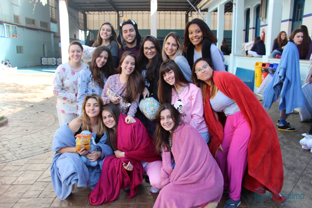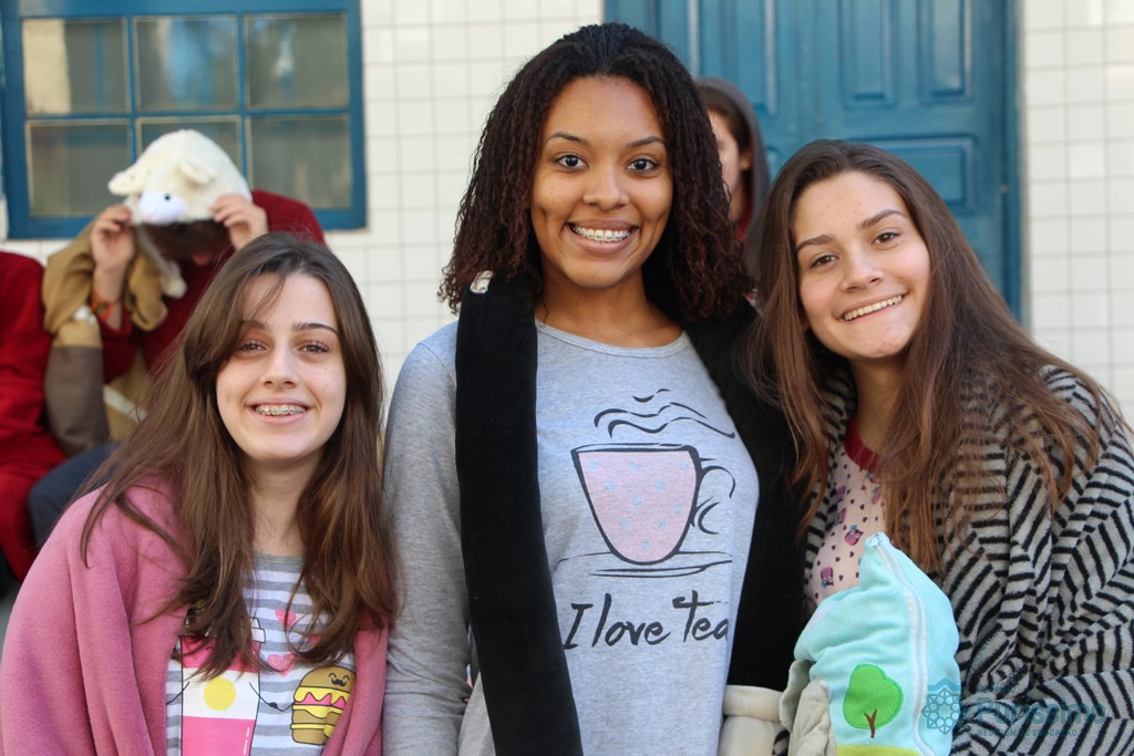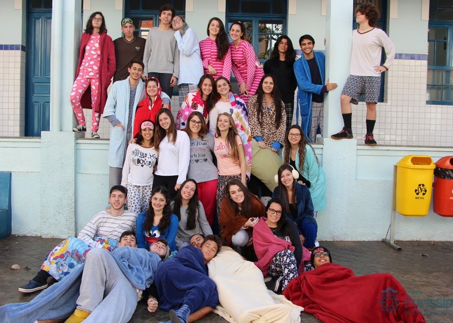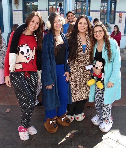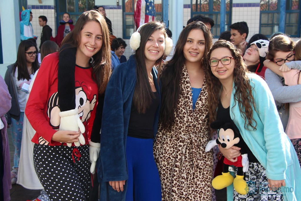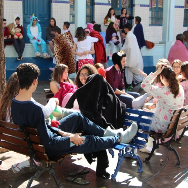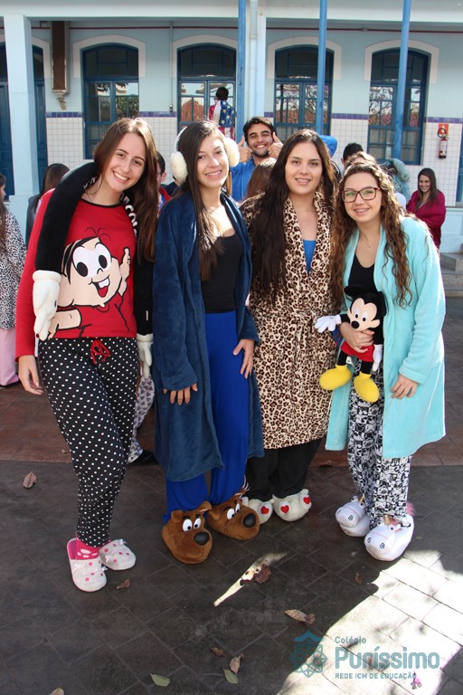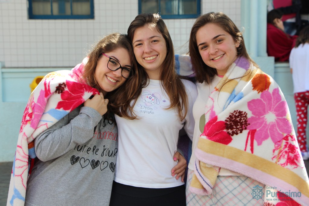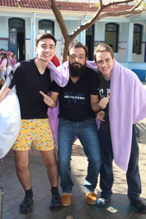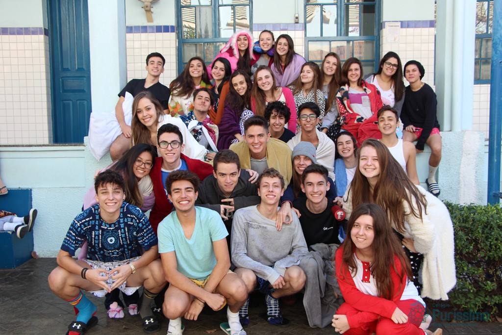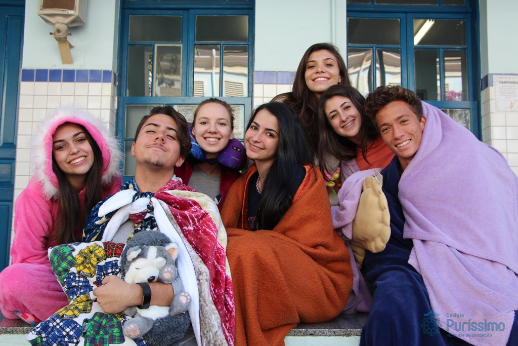 No intervalo dessa quinta – feira, 22 de junho, nem parecia que os alunos do Ensino Médio tinham saído da cama. Os estudantes trouxeram para o Colégio Puríssimo seus pijamas, cobertores e pantufas, para o último Trote do semestre.