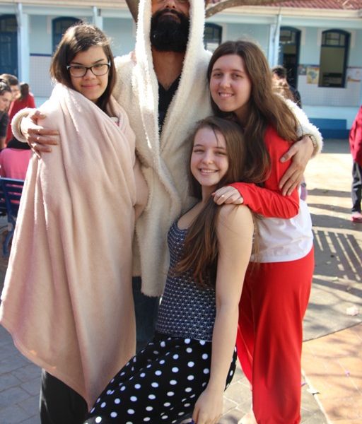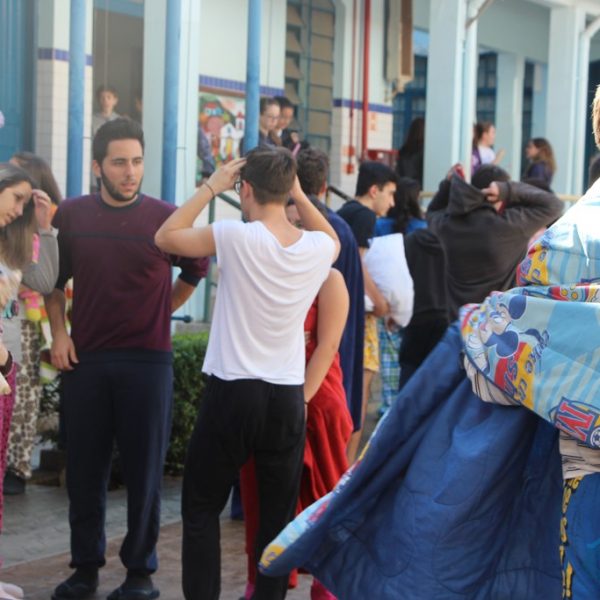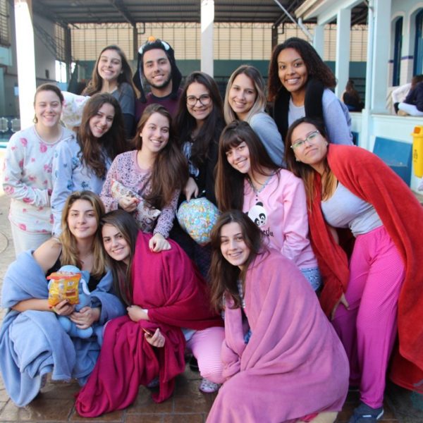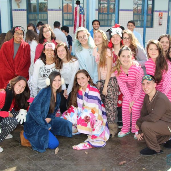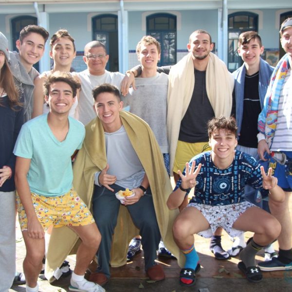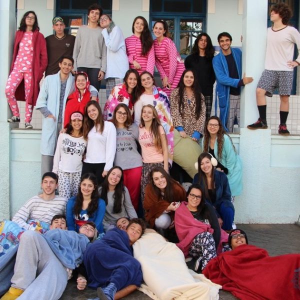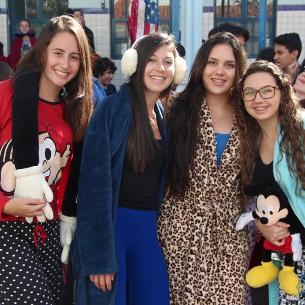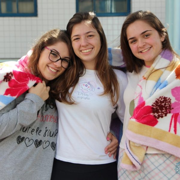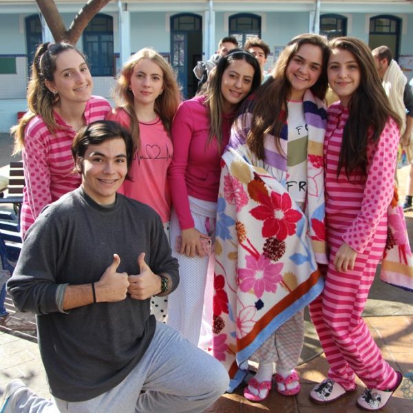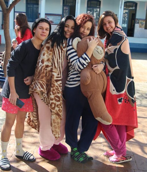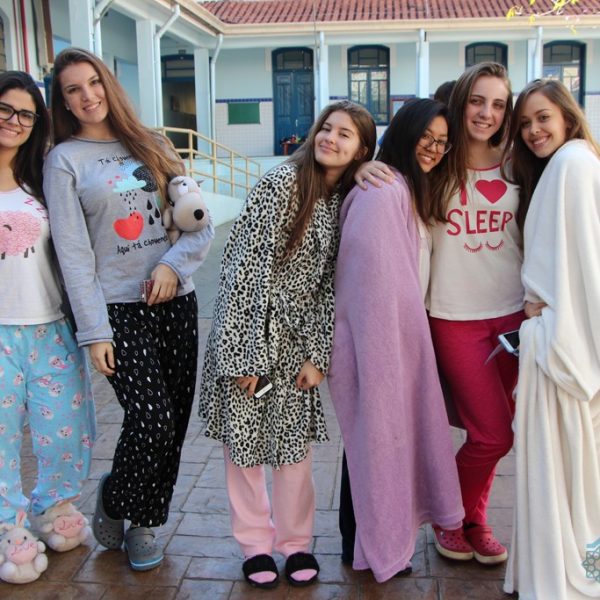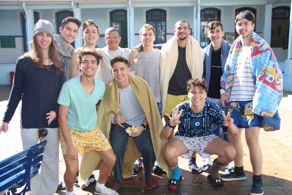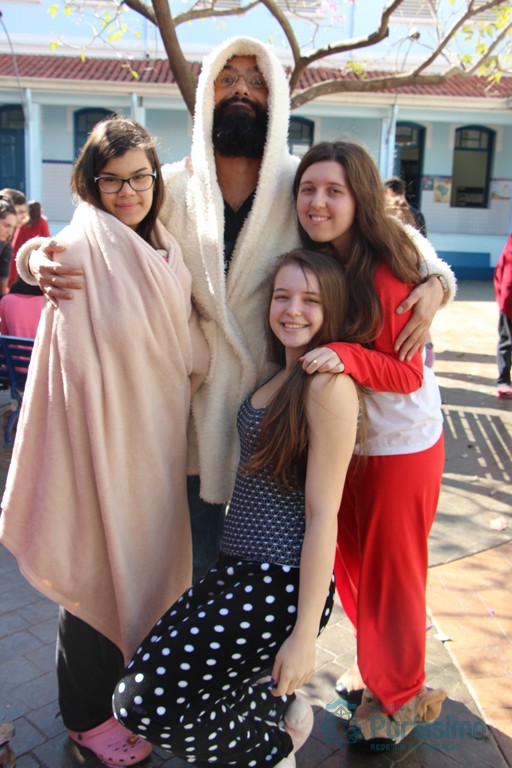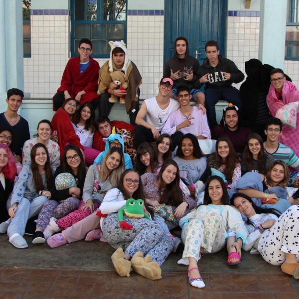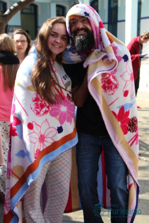 No intervalo dessa quinta – feira, 22 de junho, nem parecia que os alunos do Ensino Médio tinham saído da cama. Os estudantes trouxeram para o Colégio Puríssimo seus pijamas, cobertores e pantufas, para o último Trote do semestre.