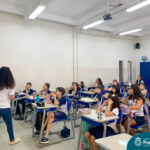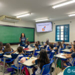 Durante a última semana de setembro, os alunos do 5º ano receberam a visita da orientadora educacional do Ensino Fundamental Anos Finais, Janaina Cortinhas, para um bate-papo sobre a nova etapa que se iniciará a partir do próximo ano.
