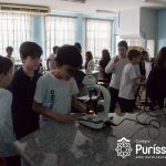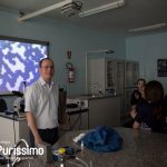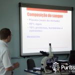 Além de fazer uma apresentação sobre o sangue, o Doutor Sergio, explicou sobre seus componentes e suas funções, elucidando as explicações com lâminas com amostra de sangue, que os alunos puderam examinar nos microscópios e verificar glóbulos vermelhos, hemácias, glóbulos brancos e leucócitos. Terra também trouxe um oxímetro, aparelho que mede a saturação do sangue, desconhecido por muitos alunos.
