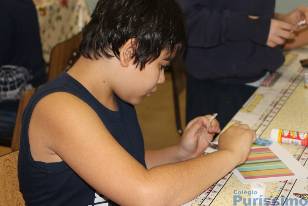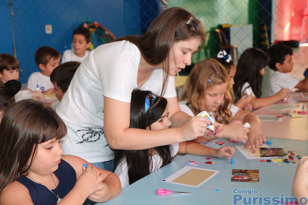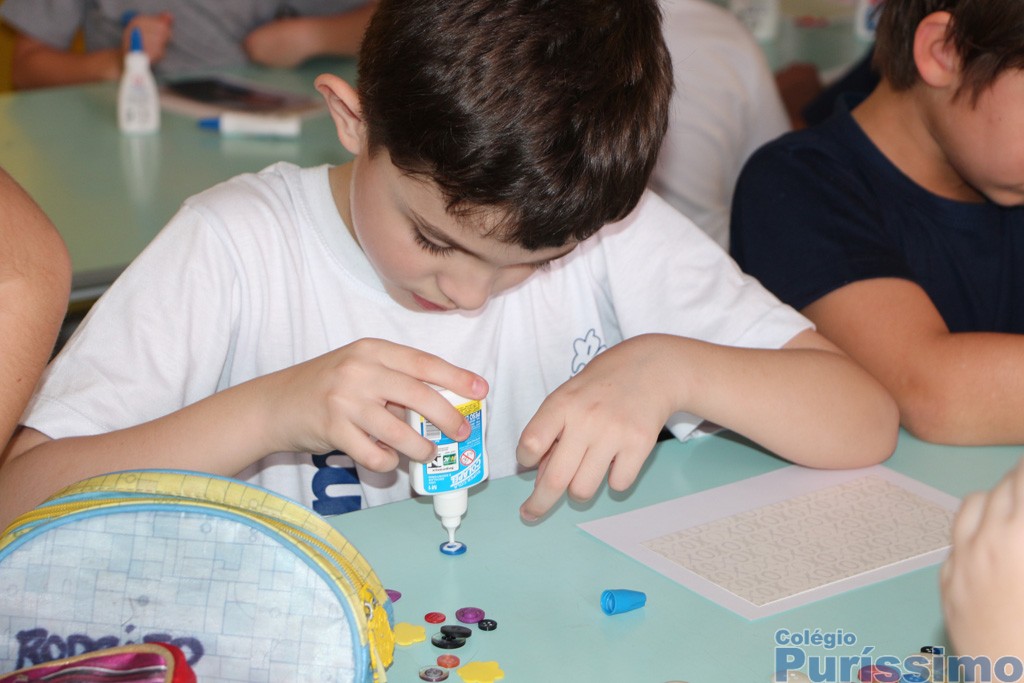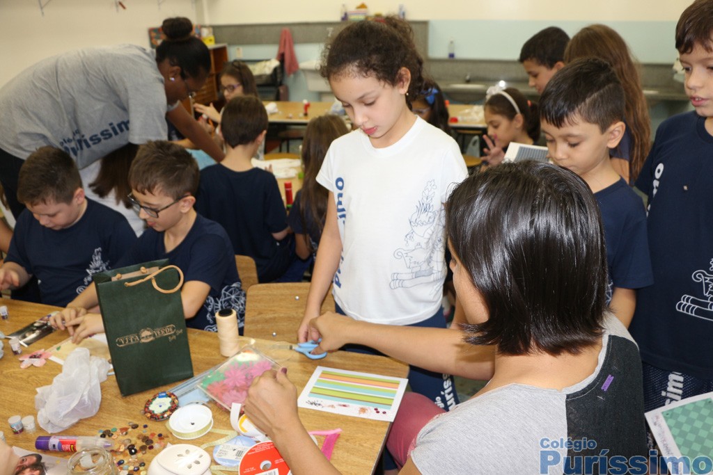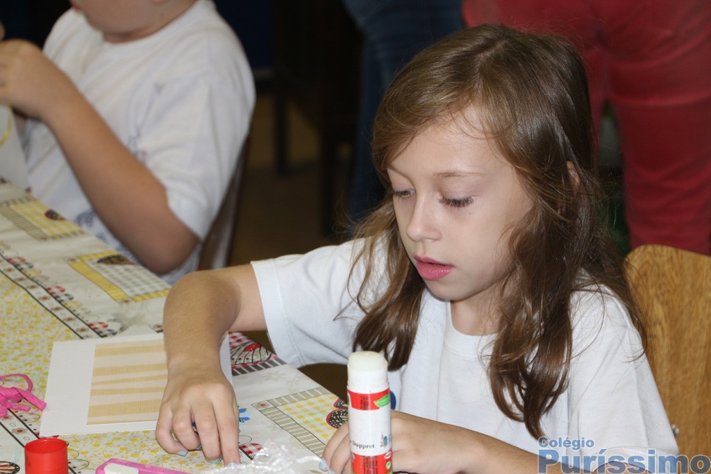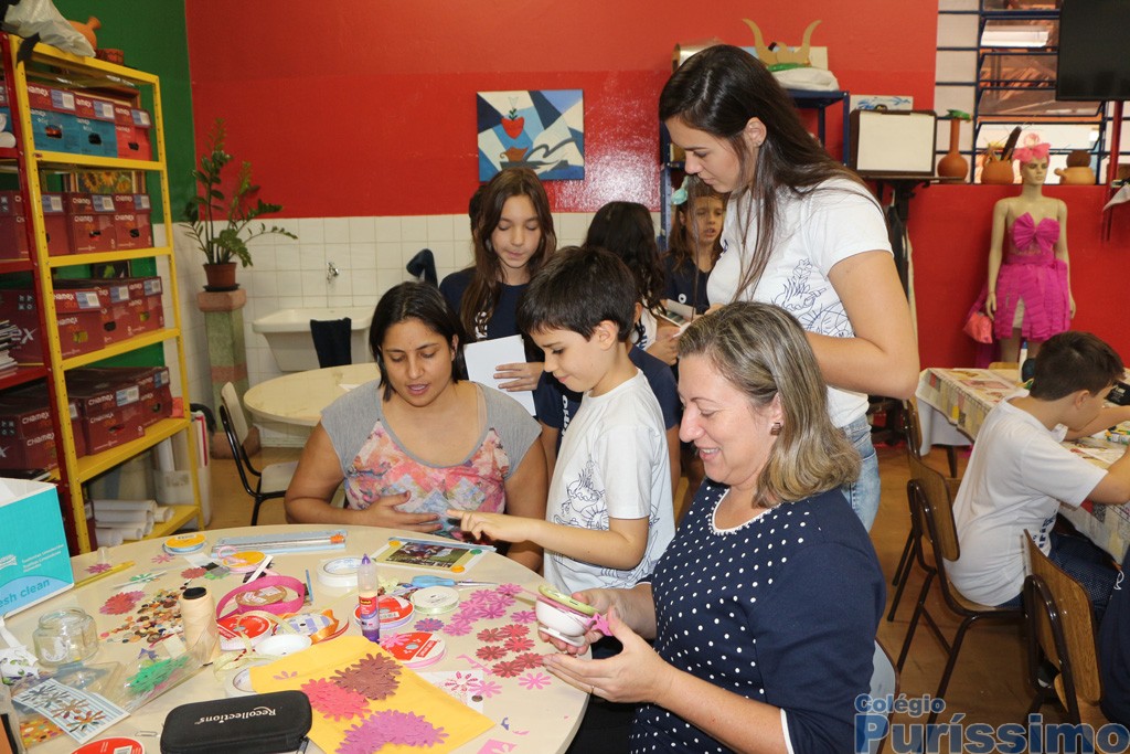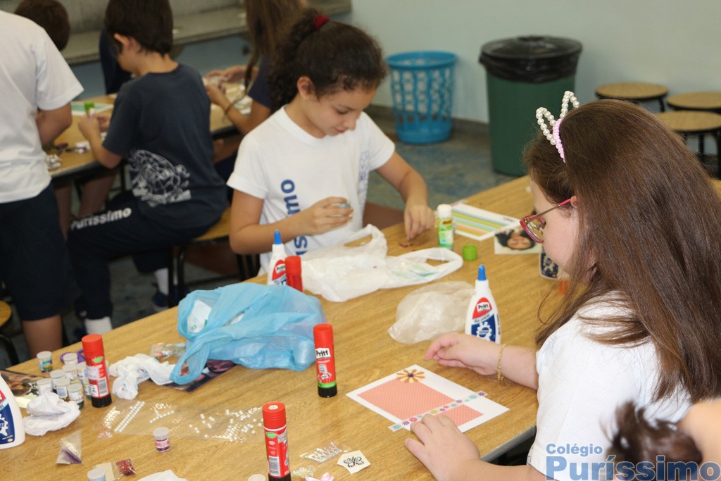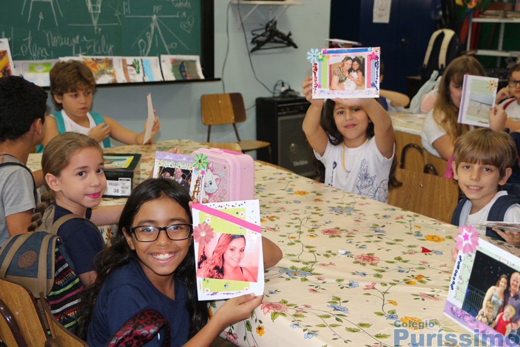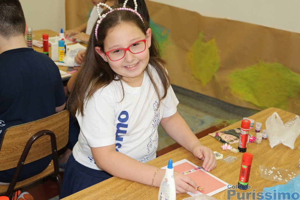Em homenagem ao Dia das Mães os alunos do 2º ao 4º ano do Ensino Fundamental realizaram uma oficina de cartões para entregar para as mamães e responsáveis. Para a atividade contou – se com a presença da artesã Michele Concon, mãe dos alunos Tiago e Cauã do Ensino Fundamental II.