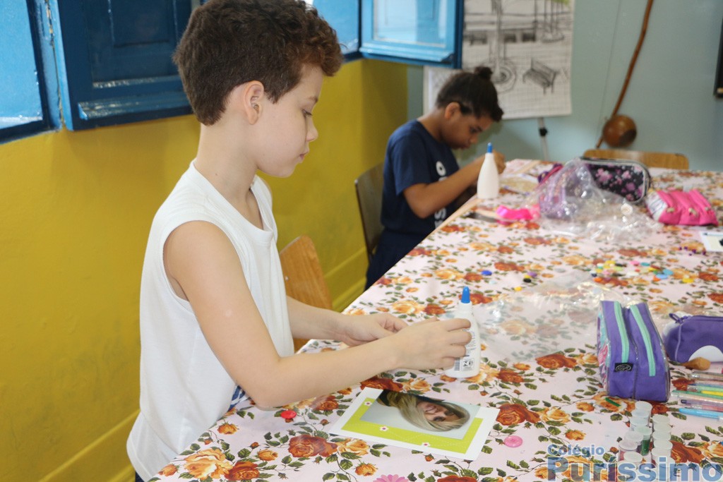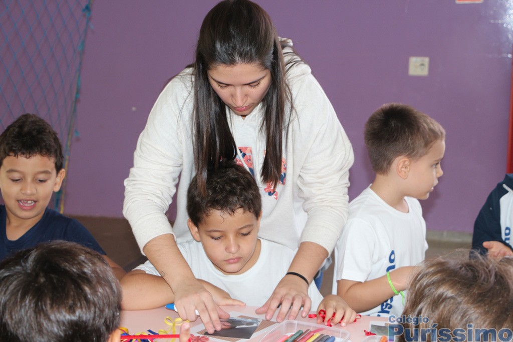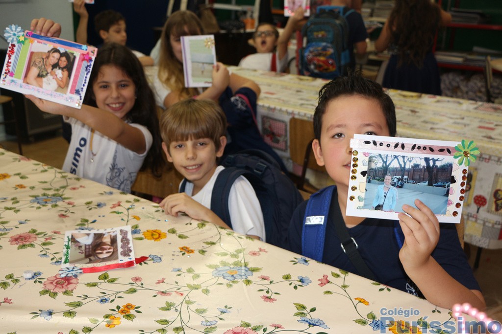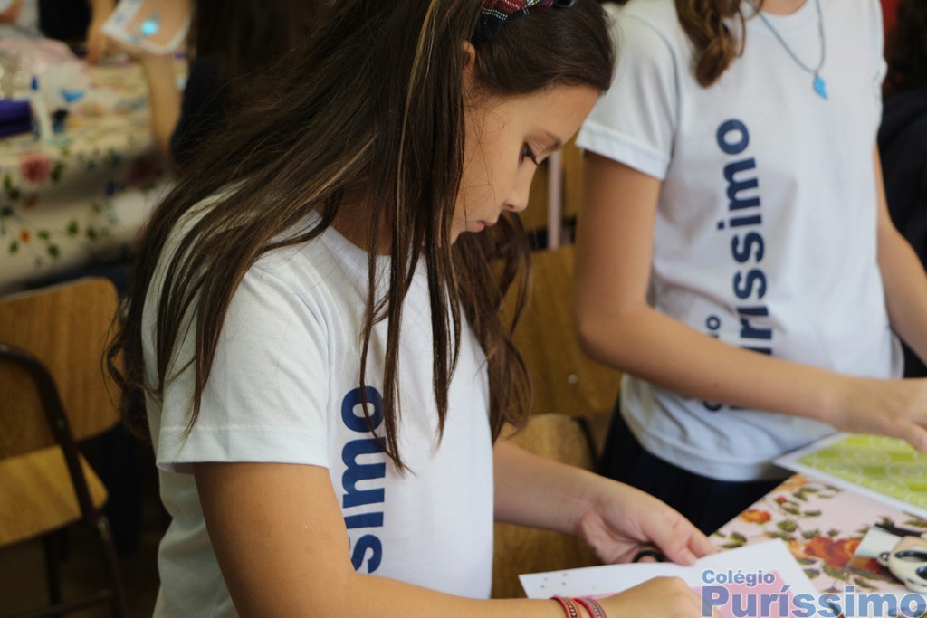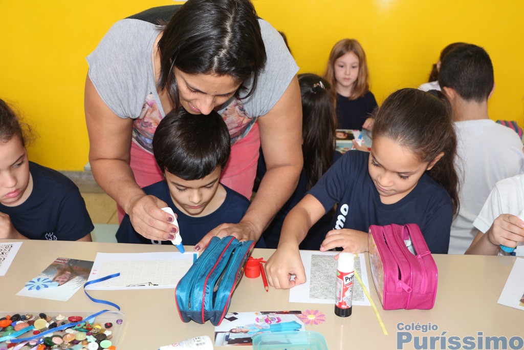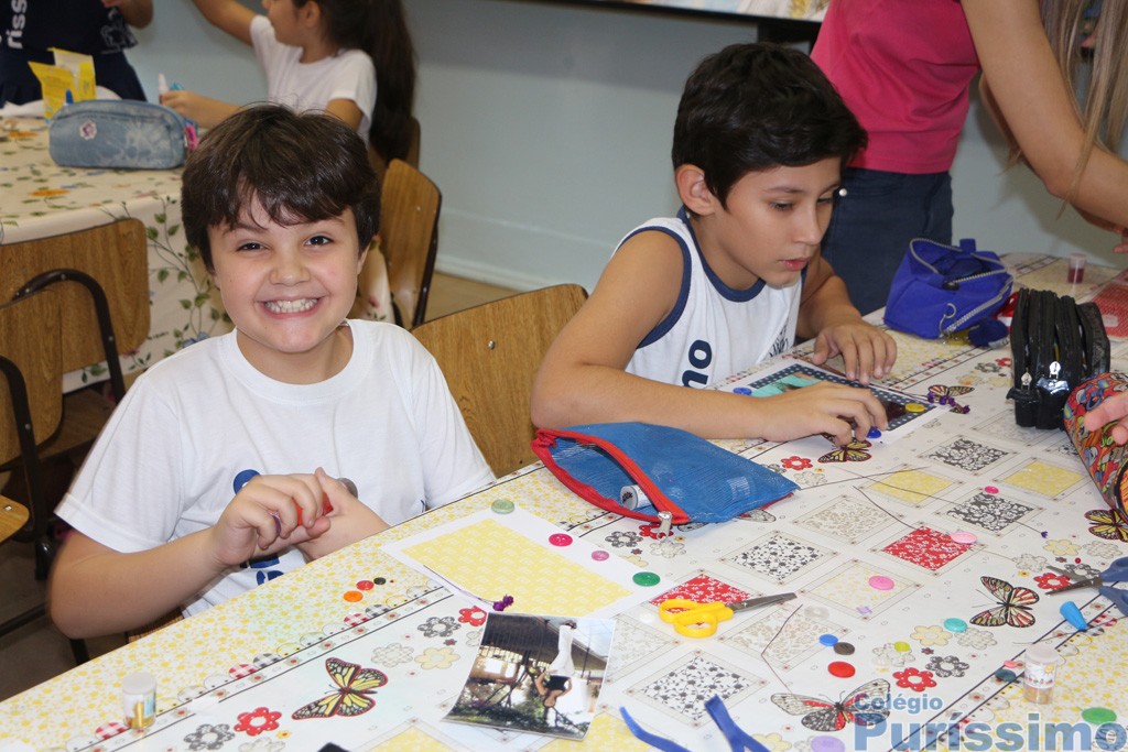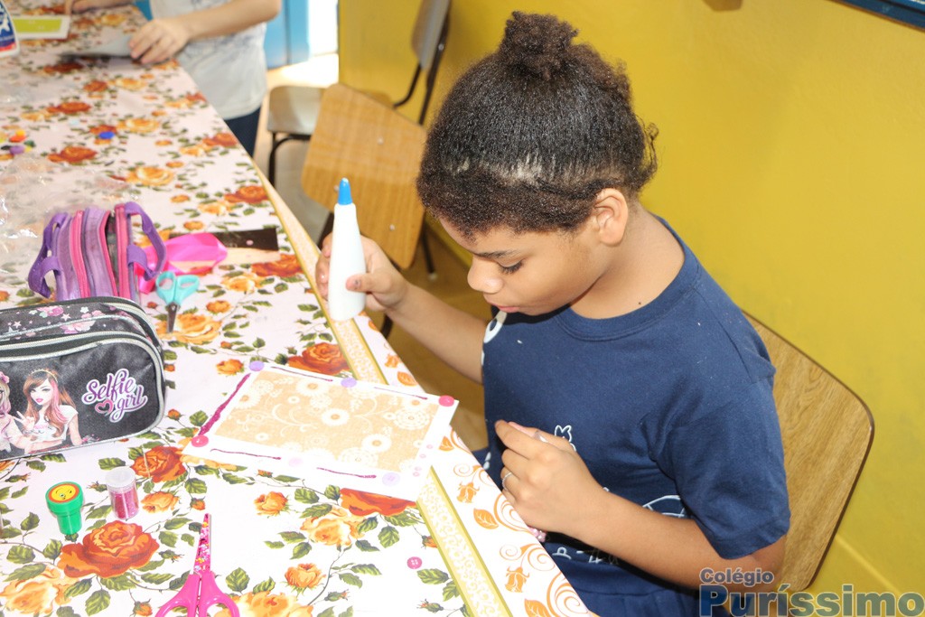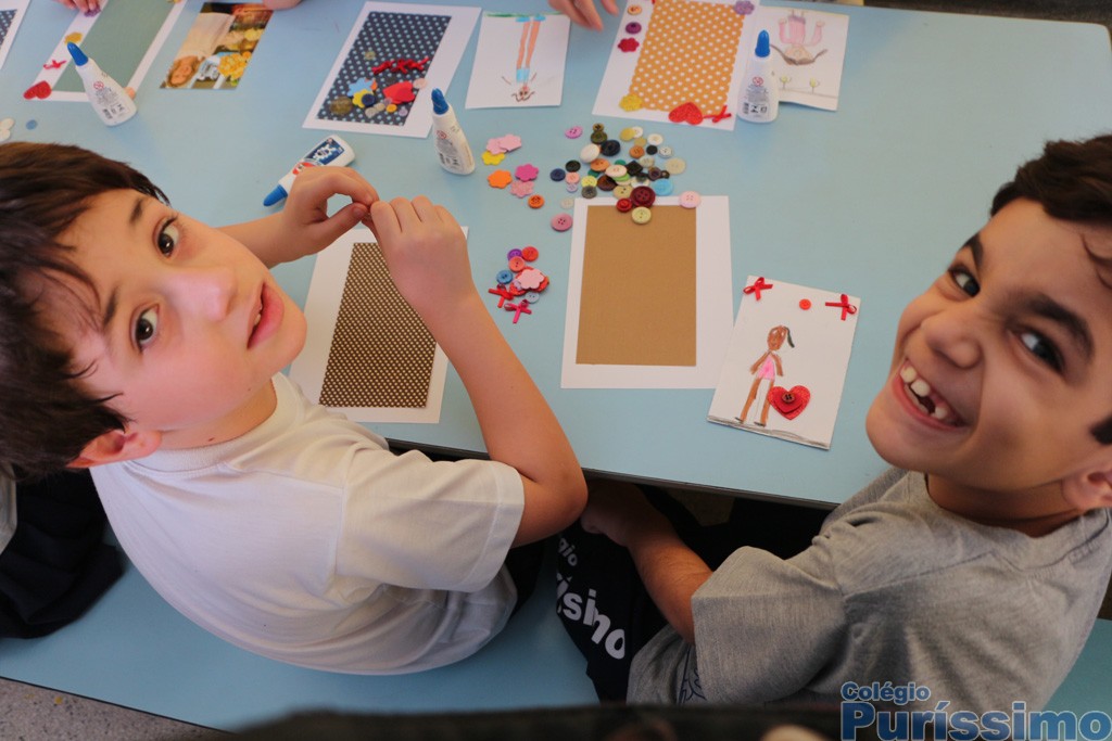 Em homenagem ao Dia das Mães os alunos do 2º ao 4º ano do Ensino Fundamental realizaram uma oficina de cartões para entregar para as mamães e responsáveis. Para a atividade contou – se com a presença da artesã Michele Concon, mãe dos alunos Tiago e Cauã do Ensino Fundamental II.