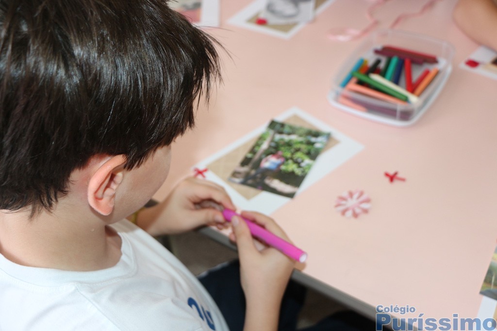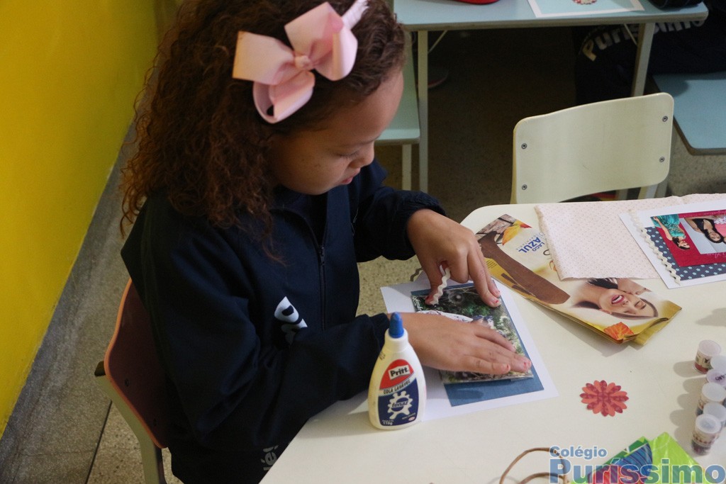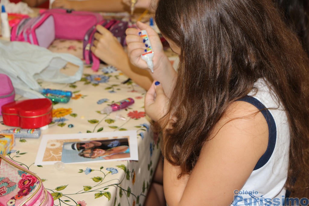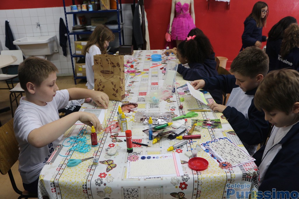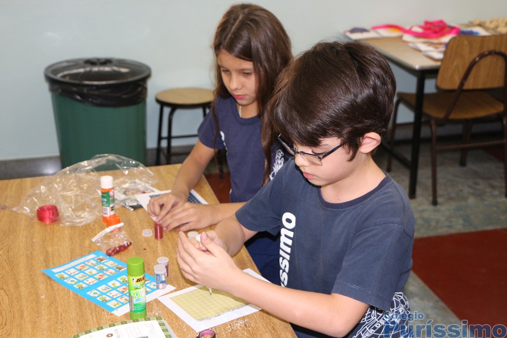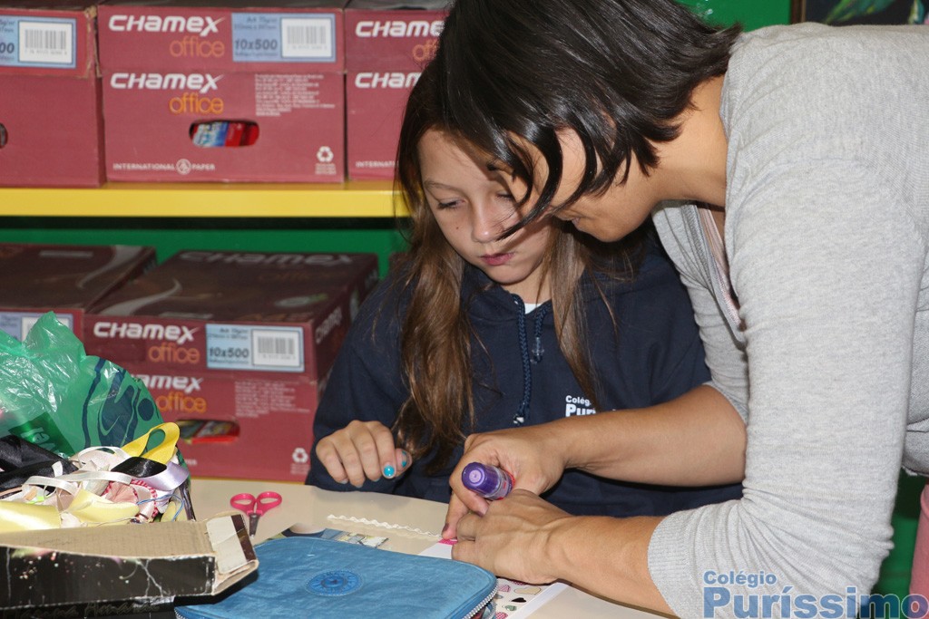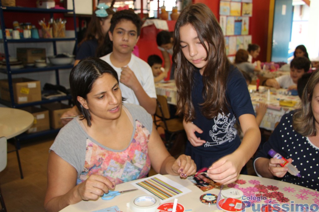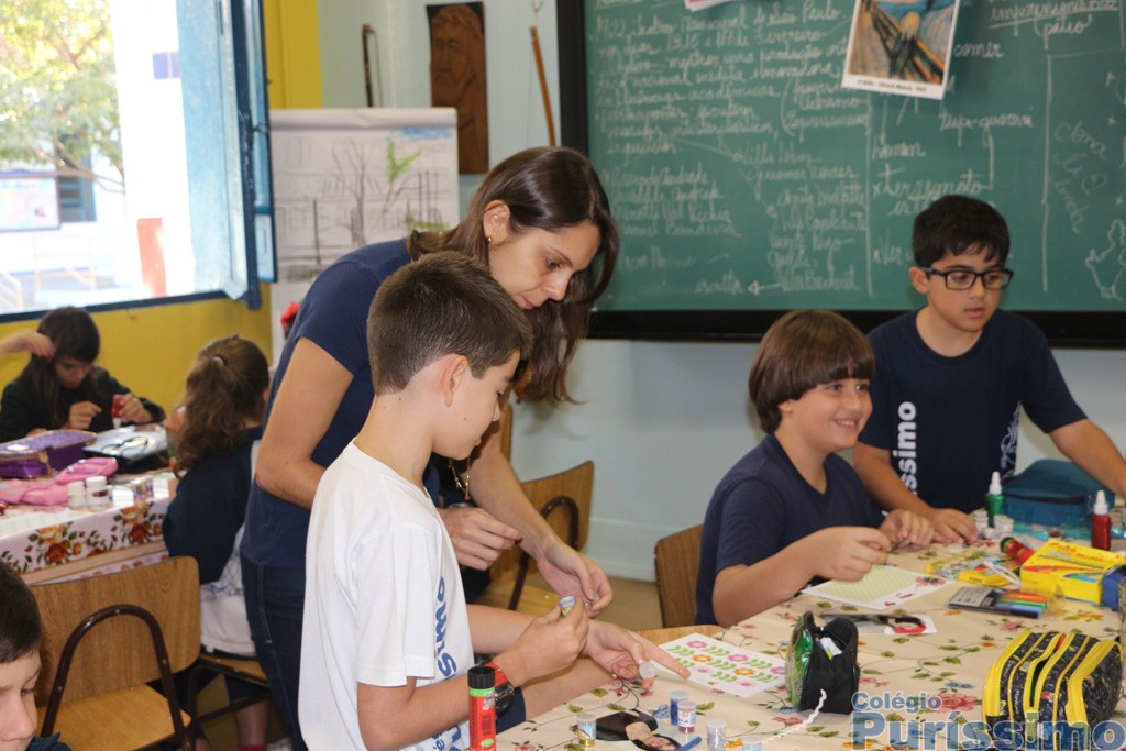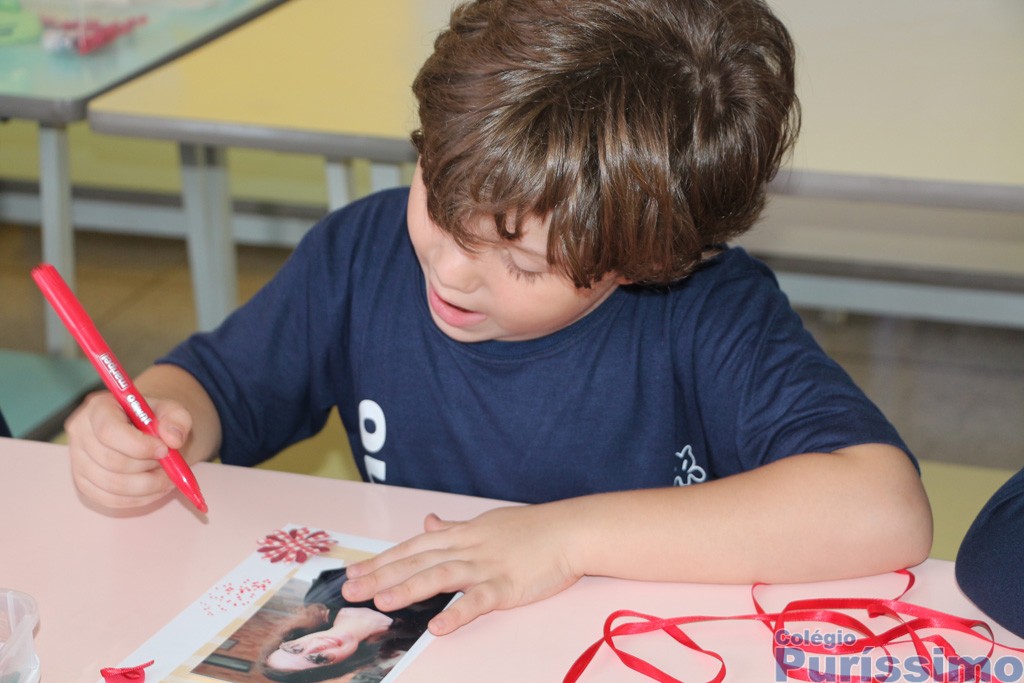 Em homenagem ao Dia das Mães os alunos do 2º ao 4º ano do Ensino Fundamental realizaram uma oficina de cartões para entregar para as mamães e responsáveis. Para a atividade contou – se com a presença da artesã Michele Concon, mãe dos alunos Tiago e Cauã do Ensino Fundamental II.
