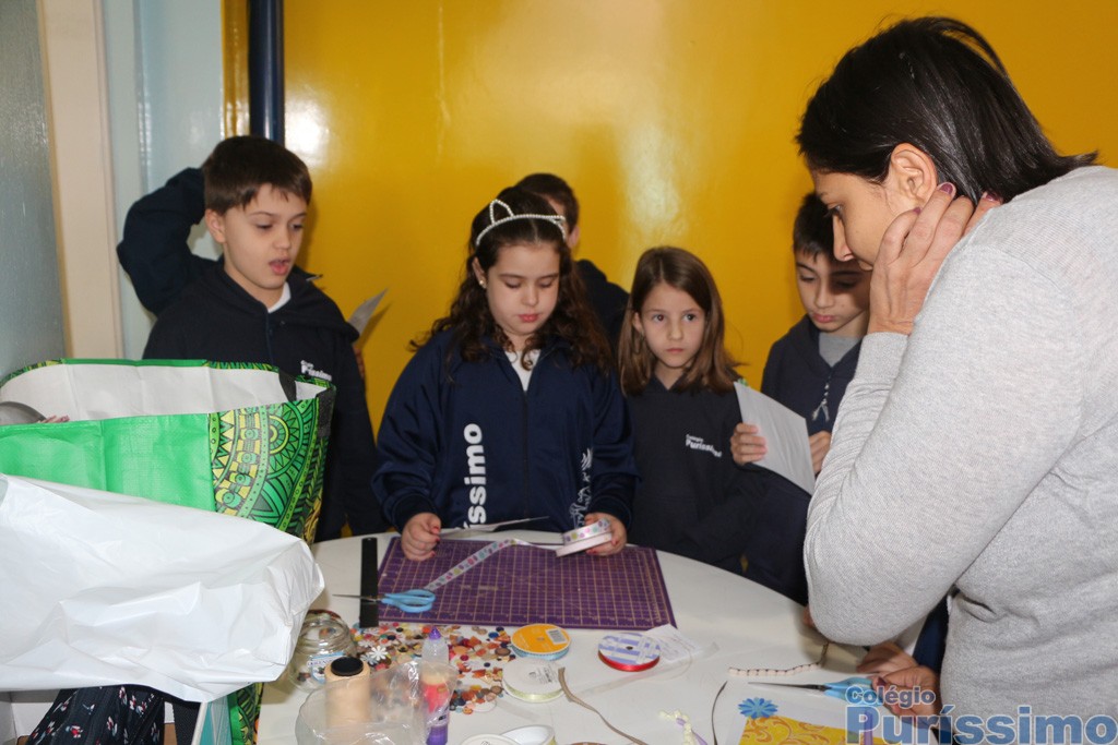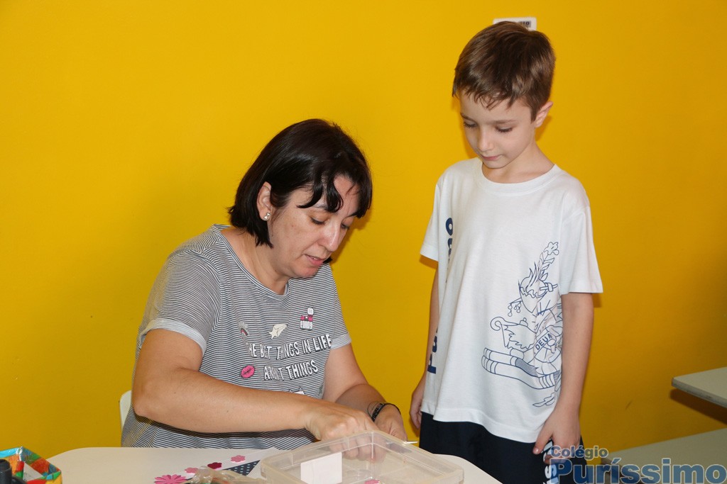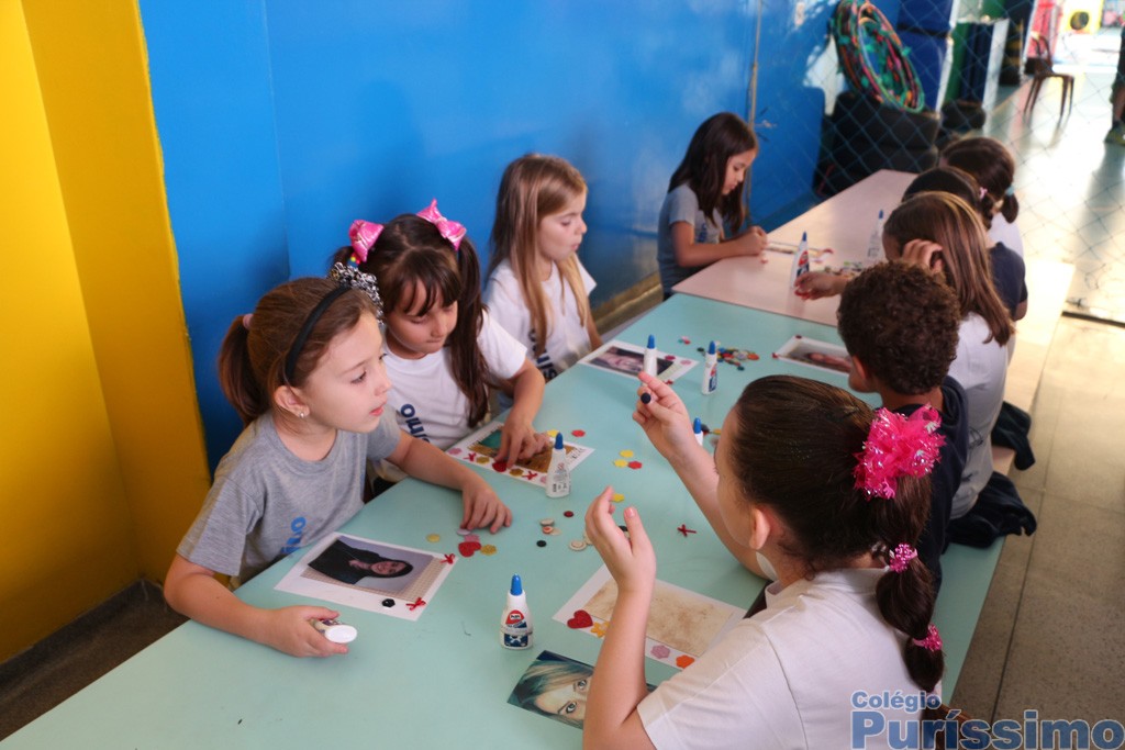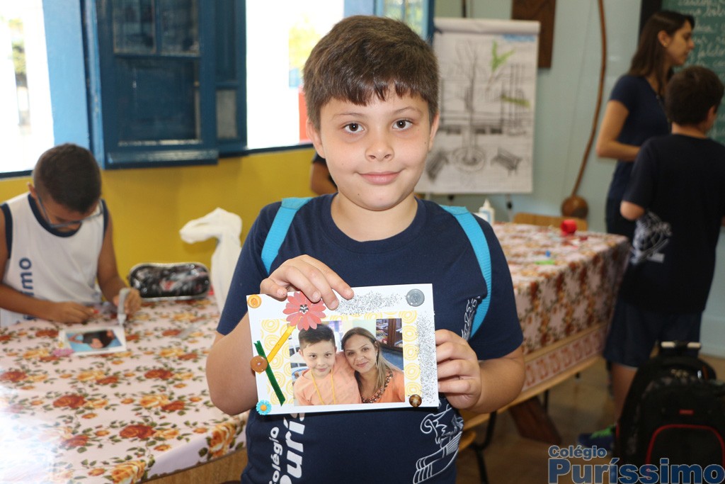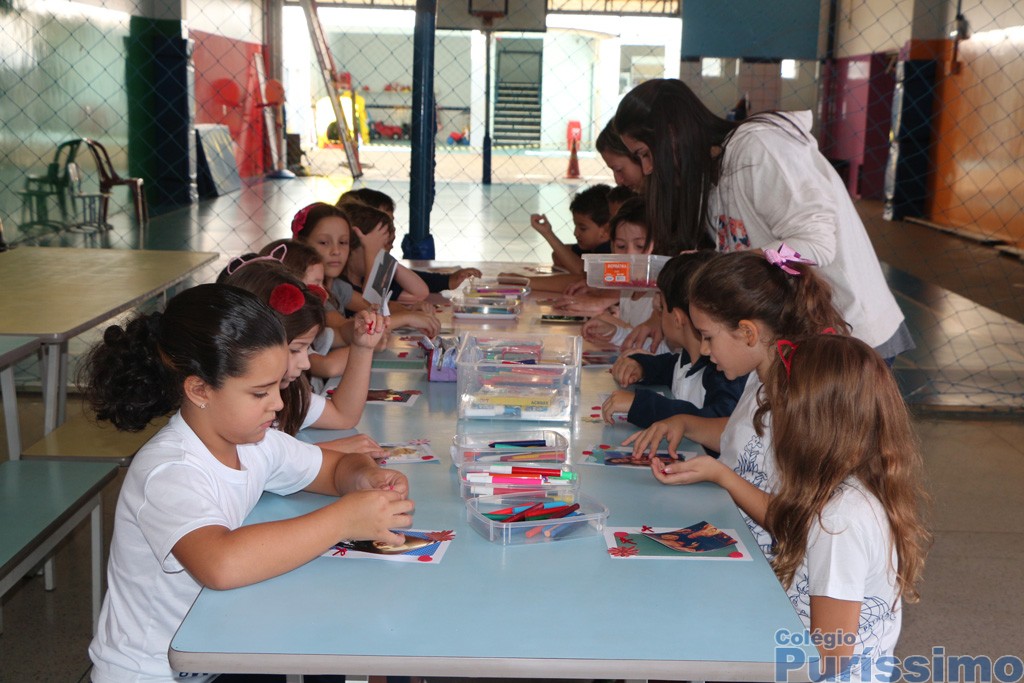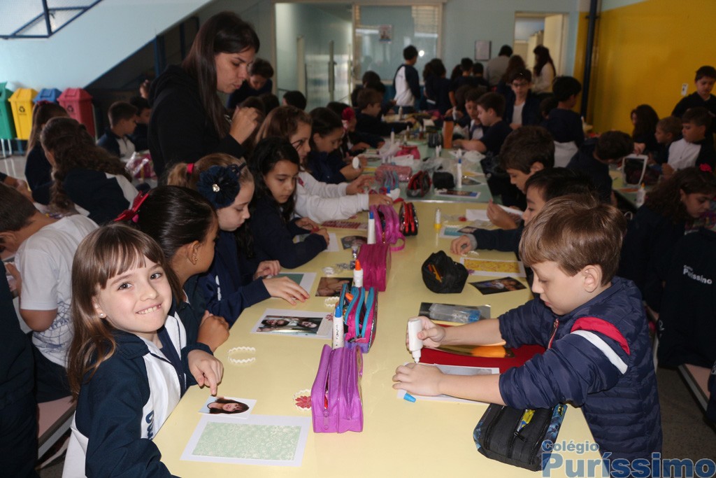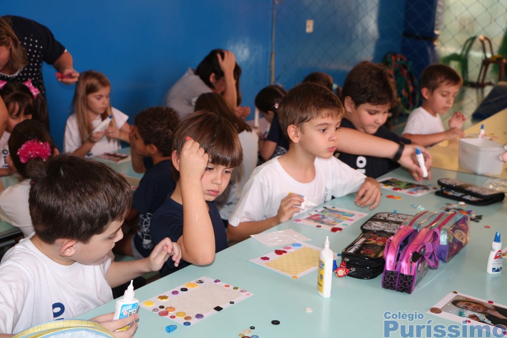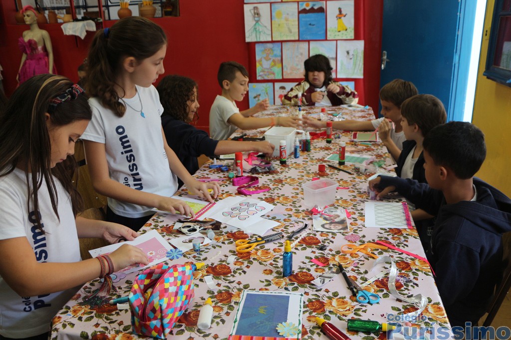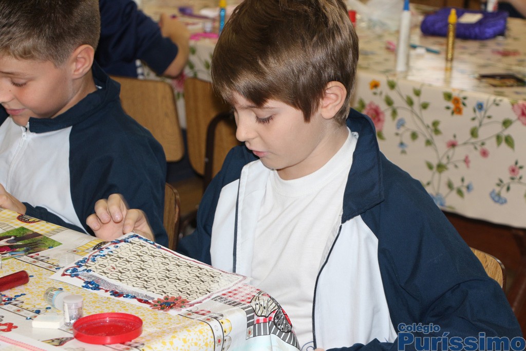 Em homenagem ao Dia das Mães os alunos do 2º ao 4º ano do Ensino Fundamental realizaram uma oficina de cartões para entregar para as mamães e responsáveis. Para a atividade contou – se com a presença da artesã Michele Concon, mãe dos alunos Tiago e Cauã do Ensino Fundamental II.