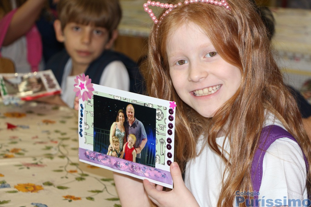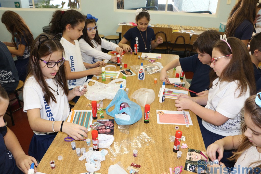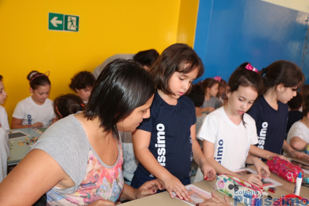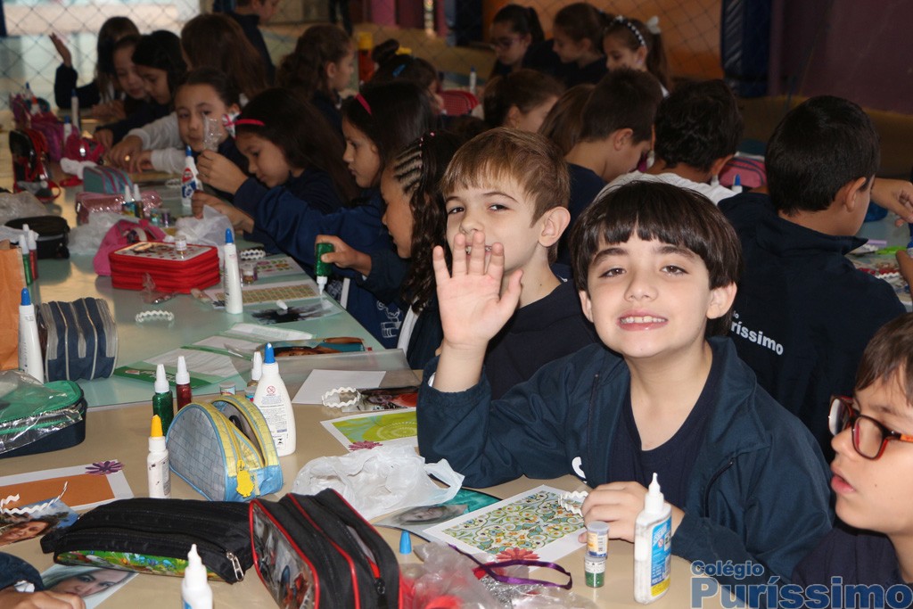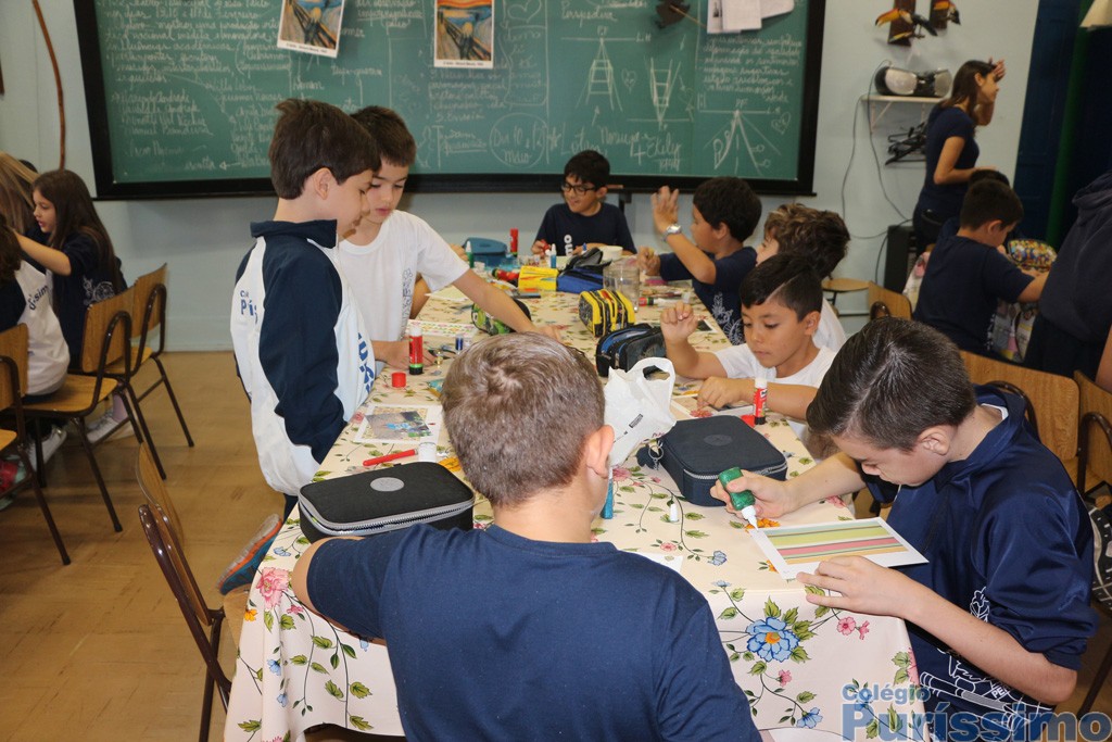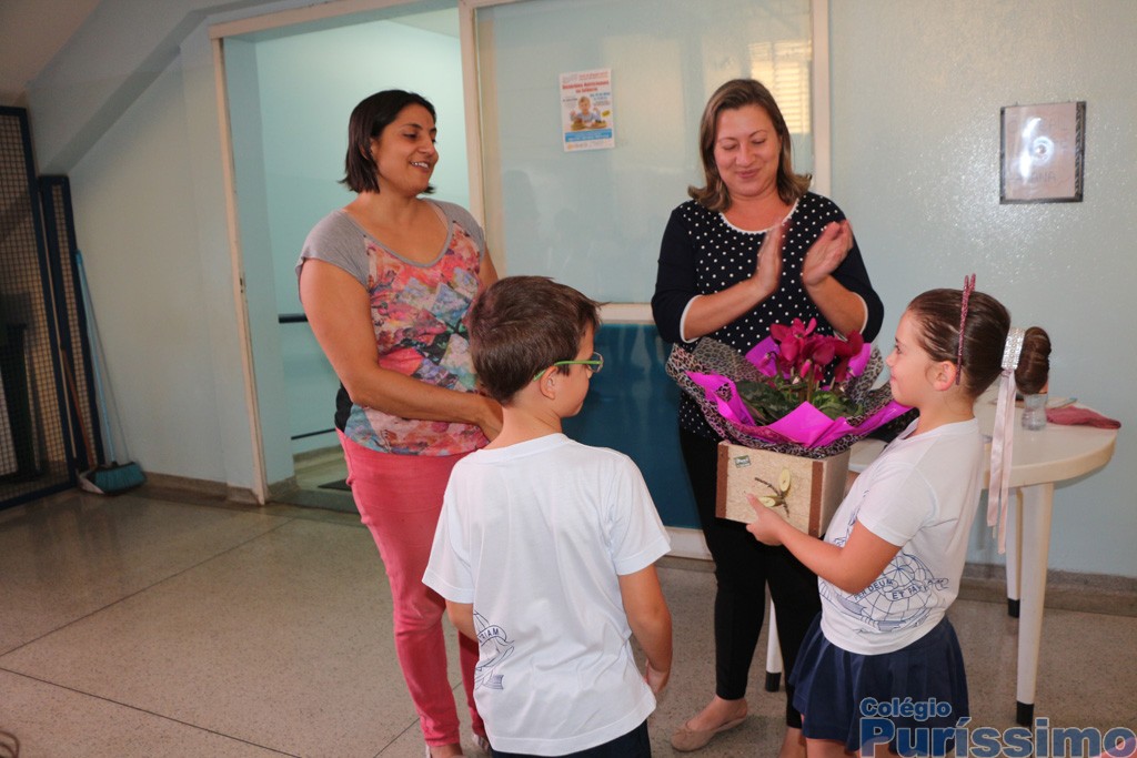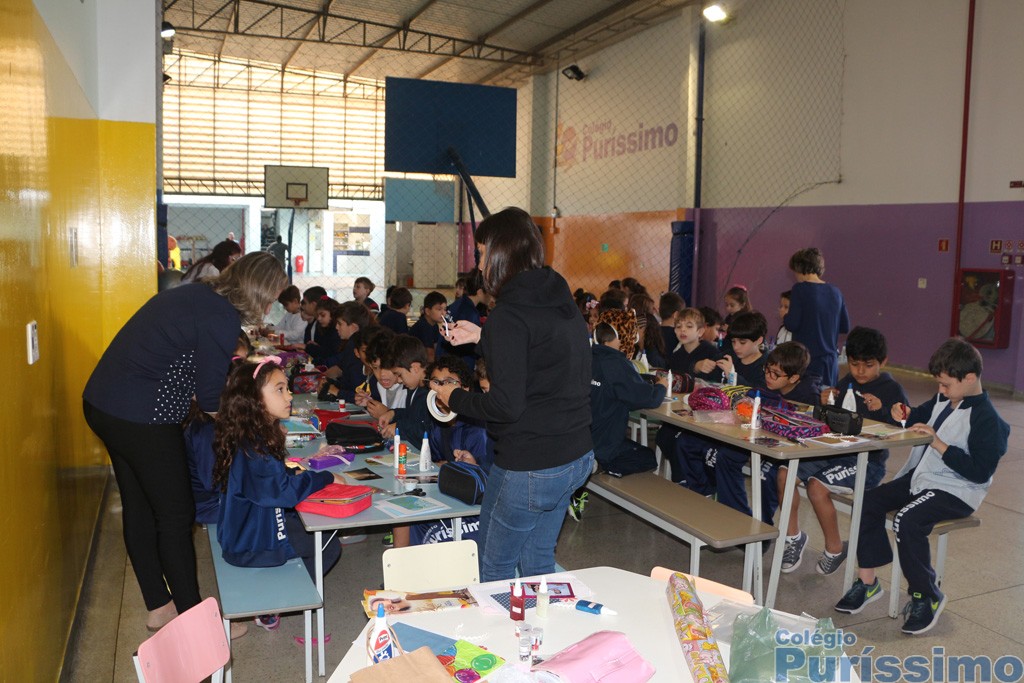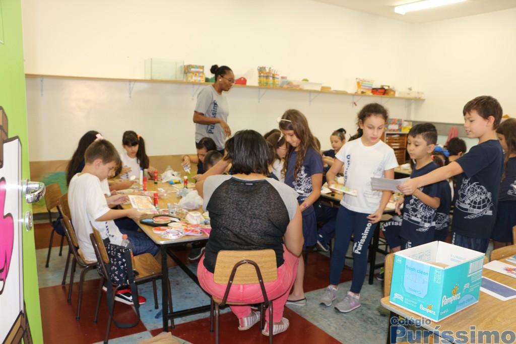 Em homenagem ao Dia das Mães os alunos do 2º ao 4º ano do Ensino Fundamental realizaram uma oficina de cartões para entregar para as mamães e responsáveis. Para a atividade contou – se com a presença da artesã Michele Concon, mãe dos alunos Tiago e Cauã do Ensino Fundamental II.