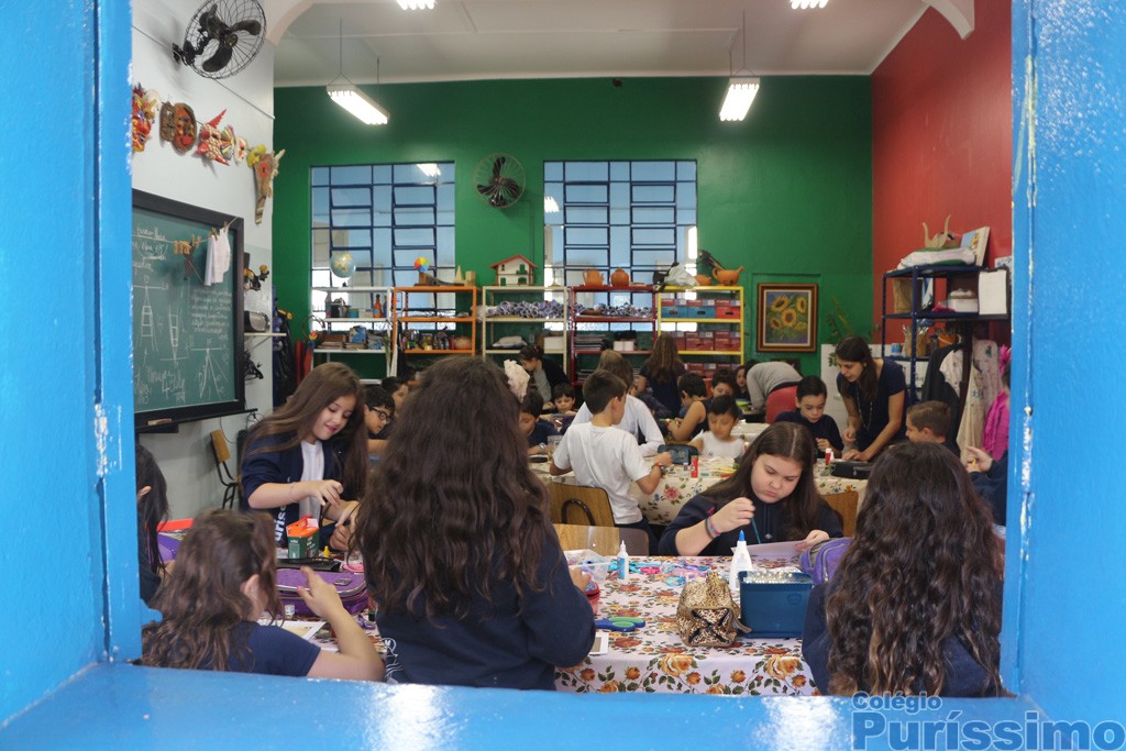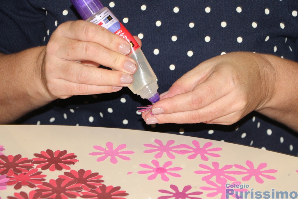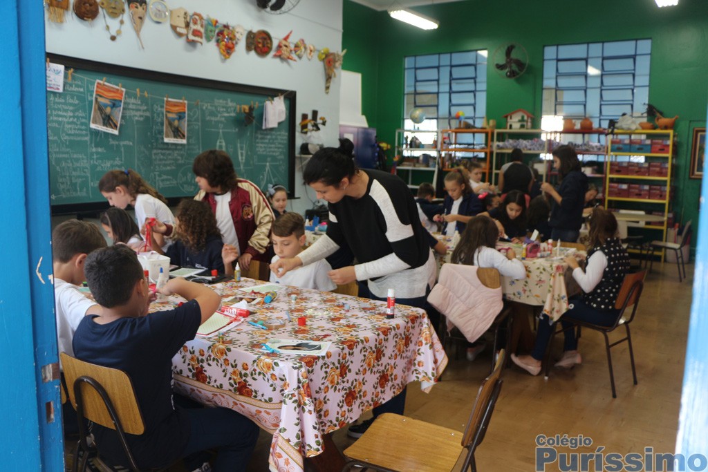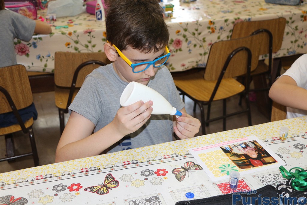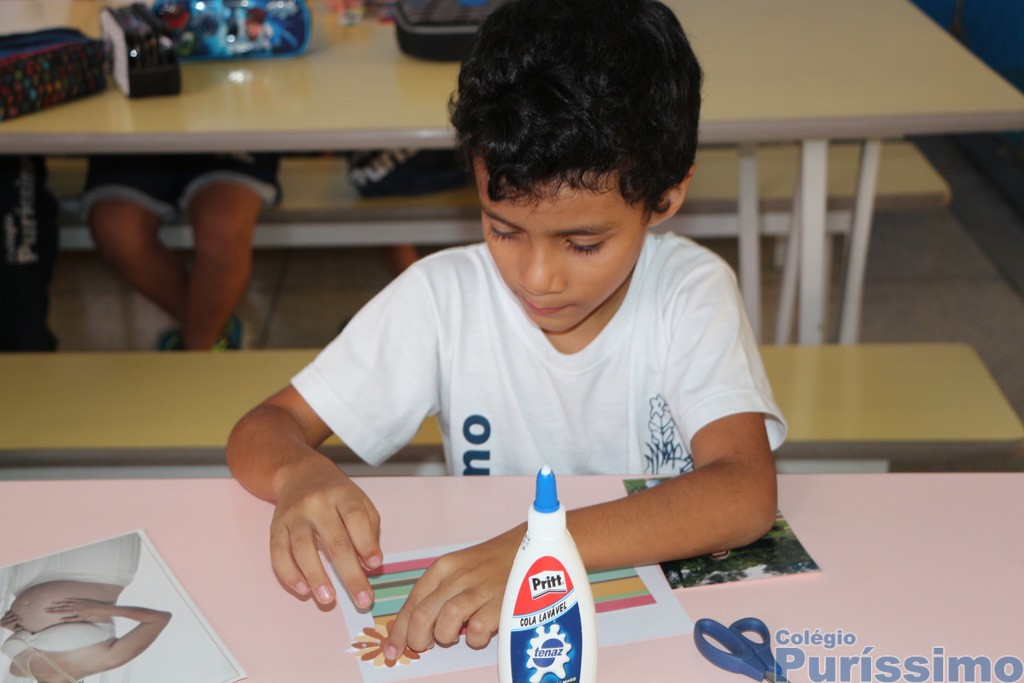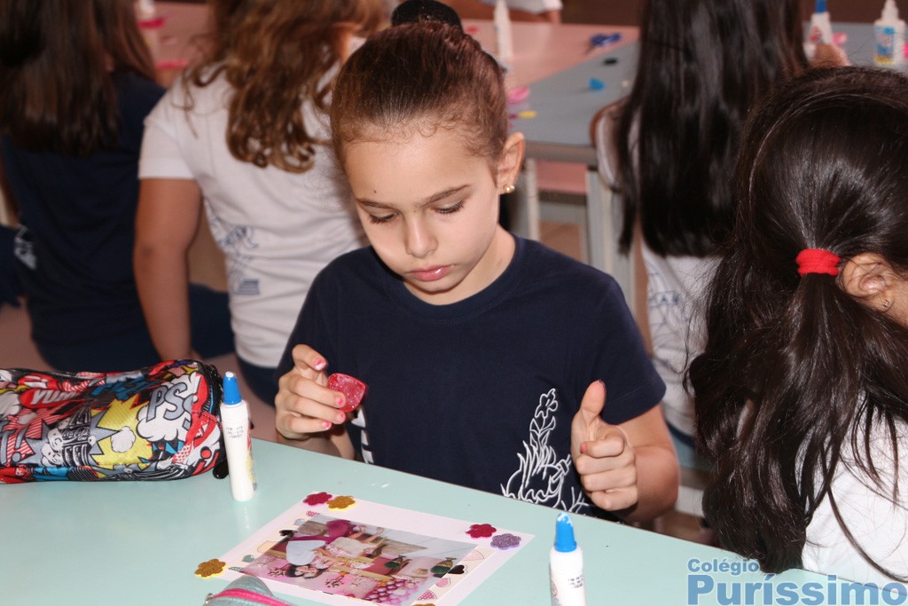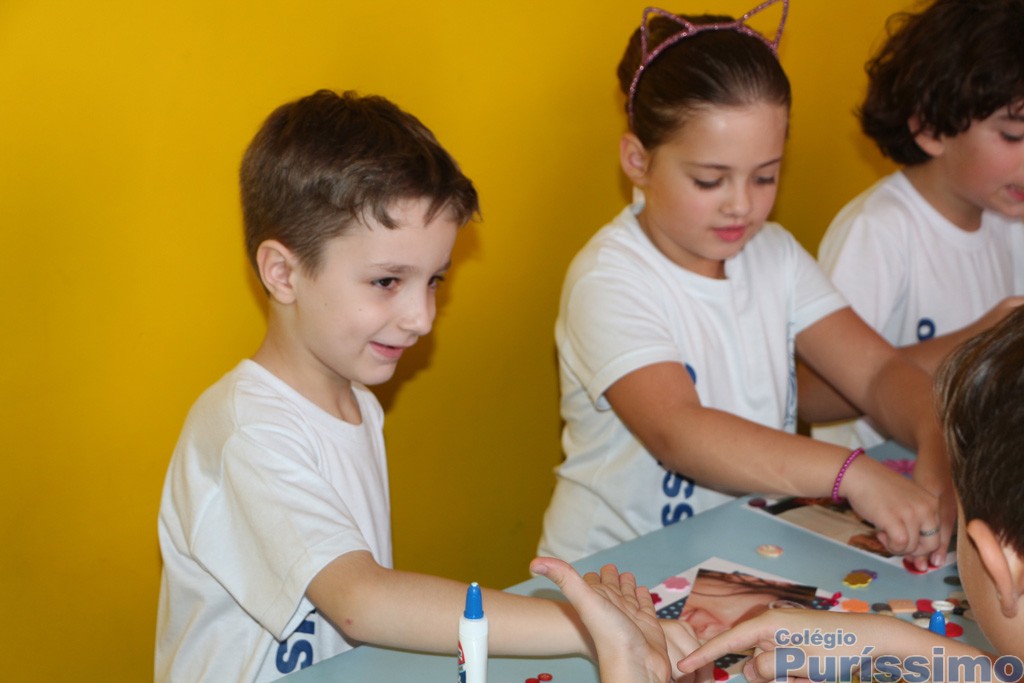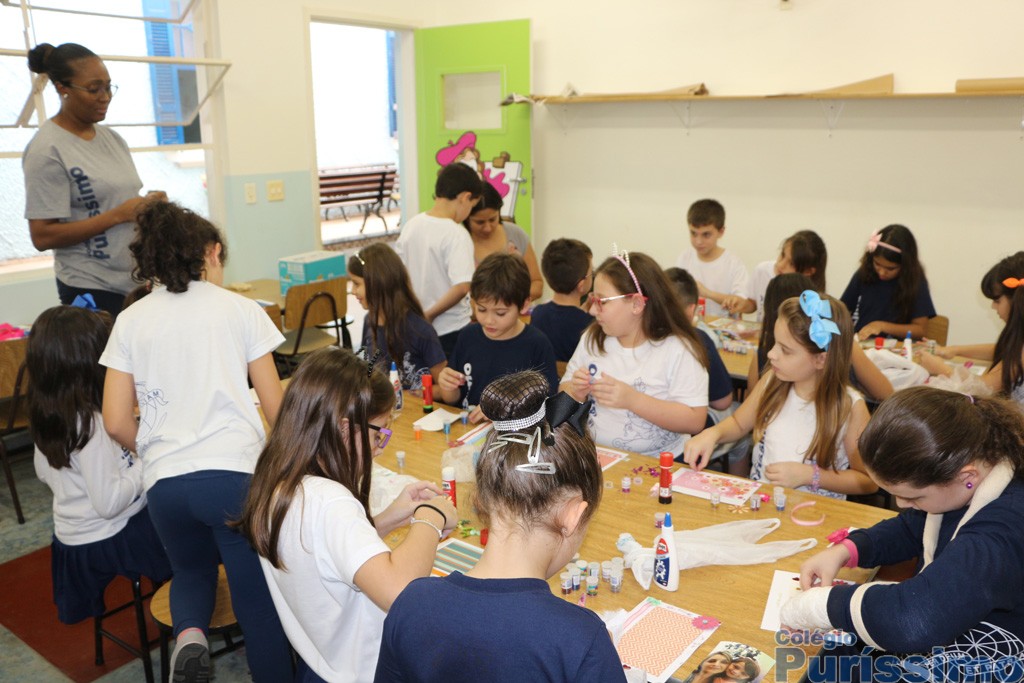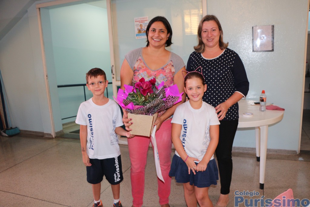 Em homenagem ao Dia das Mães os alunos do 2º ao 4º ano do Ensino Fundamental realizaram uma oficina de cartões para entregar para as mamães e responsáveis. Para a atividade contou – se com a presença da artesã Michele Concon, mãe dos alunos Tiago e Cauã do Ensino Fundamental II.