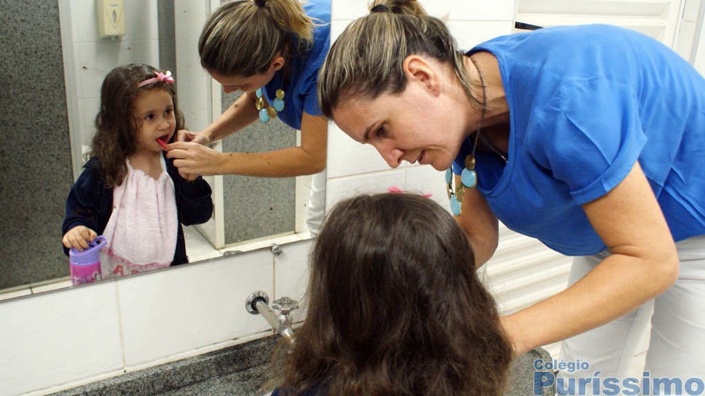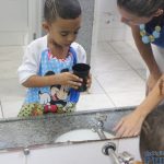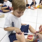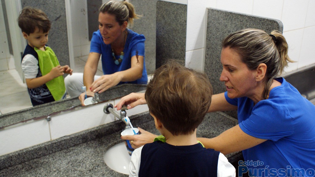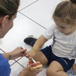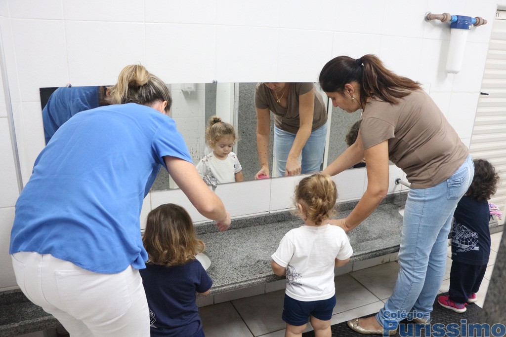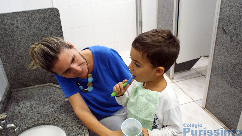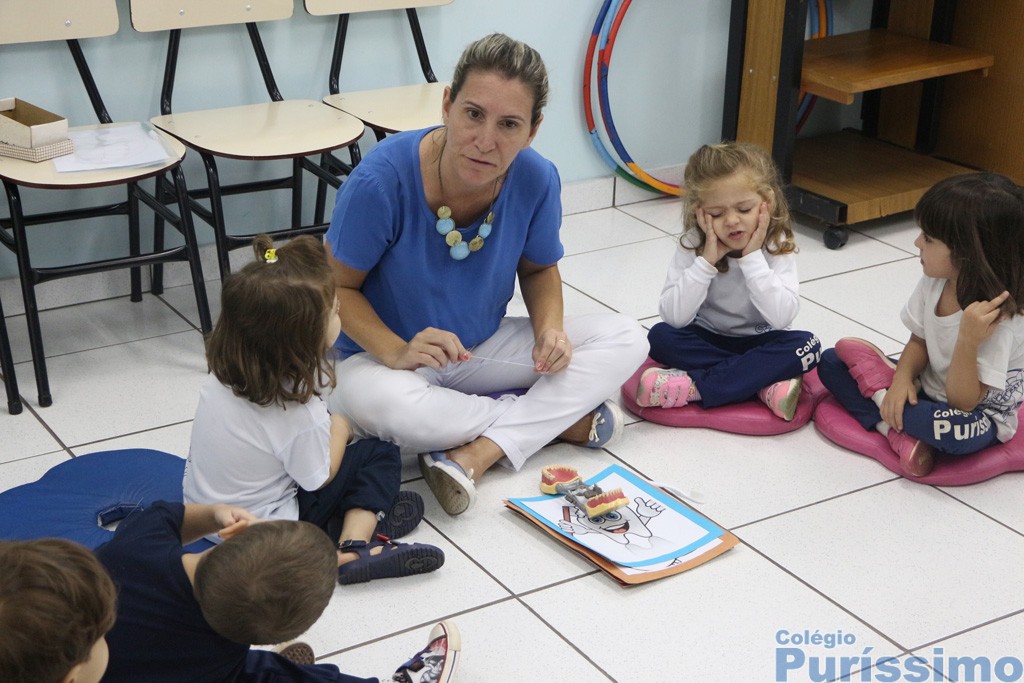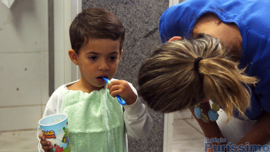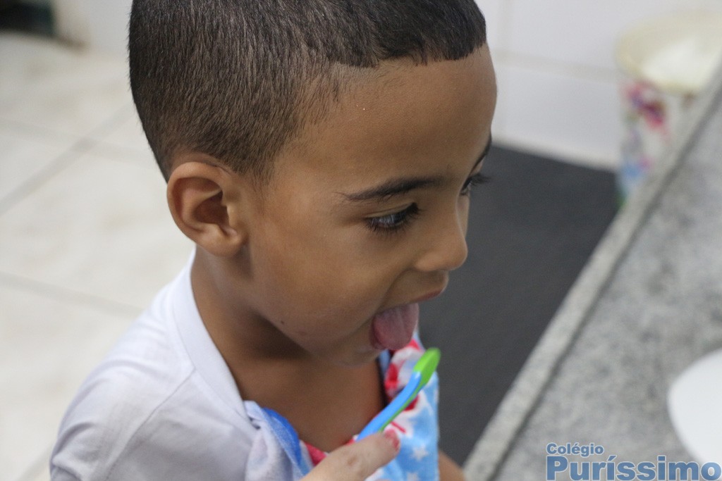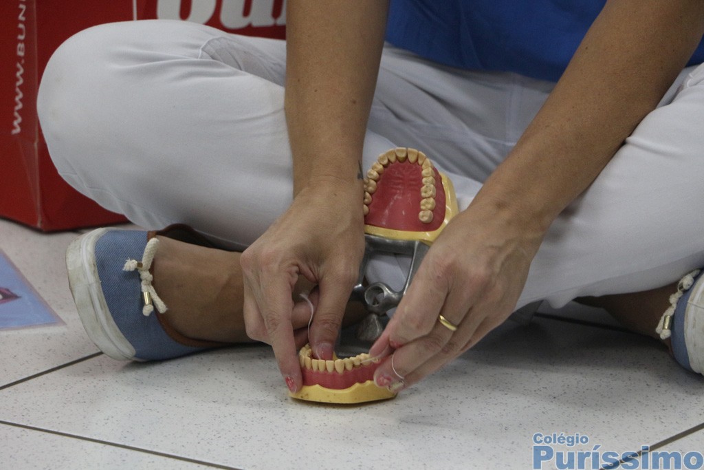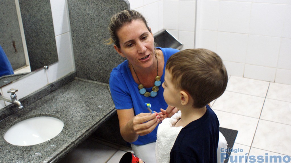Com essa intenção a coordenação da Educação Infantil organizou uma visita da dentista Maria Eduarda Biscaro, mãe da aluna Isabella Biscaro Bovo, do Jardim I da manhã. Foi realizada uma palestra com os pequenos do Maternal II (manhã e tarde) afim de mostrar o que acontece com os dentes caso eles não tenham a devida higiene, além disso, Maria Eduarda ensinou as crianças as técnicas de escovação. Posteriormente eles foram aplicar, utilizando o kit escova que trouxeram e que passará a ser usado diariamente após o lanche.