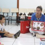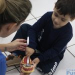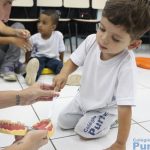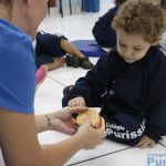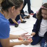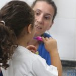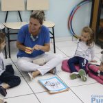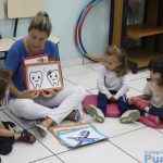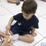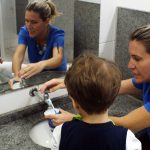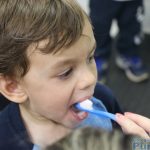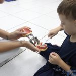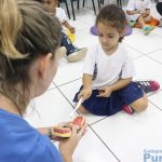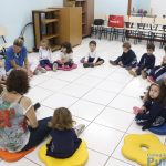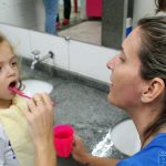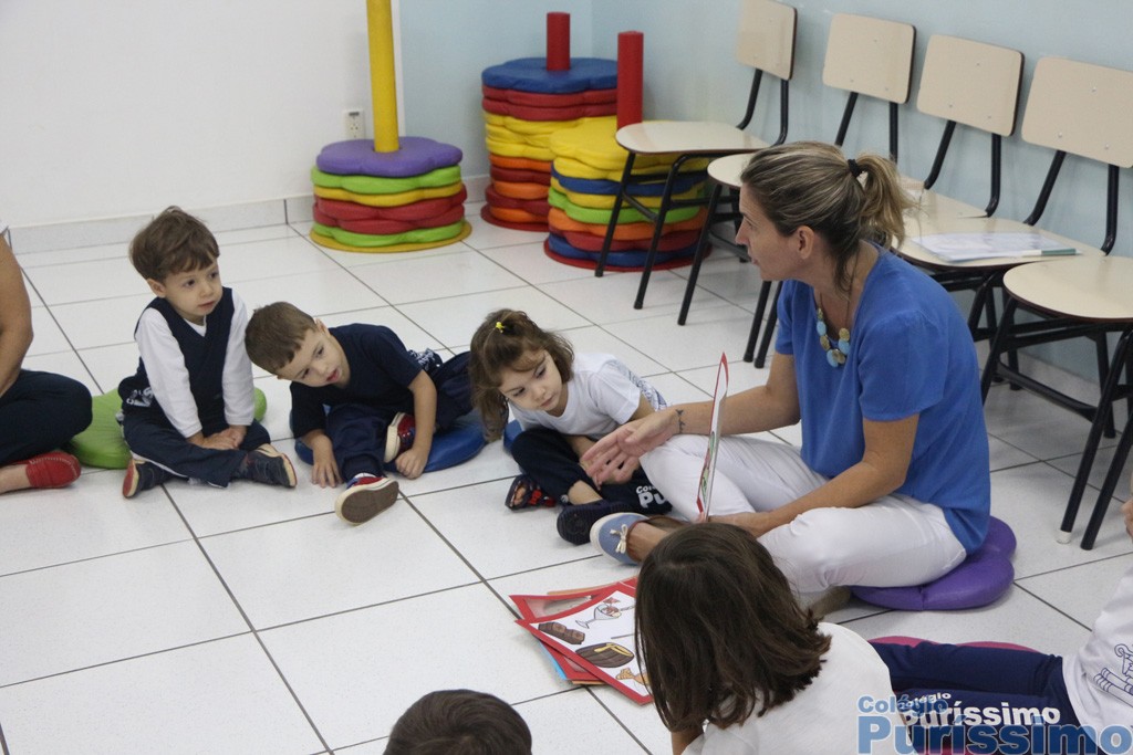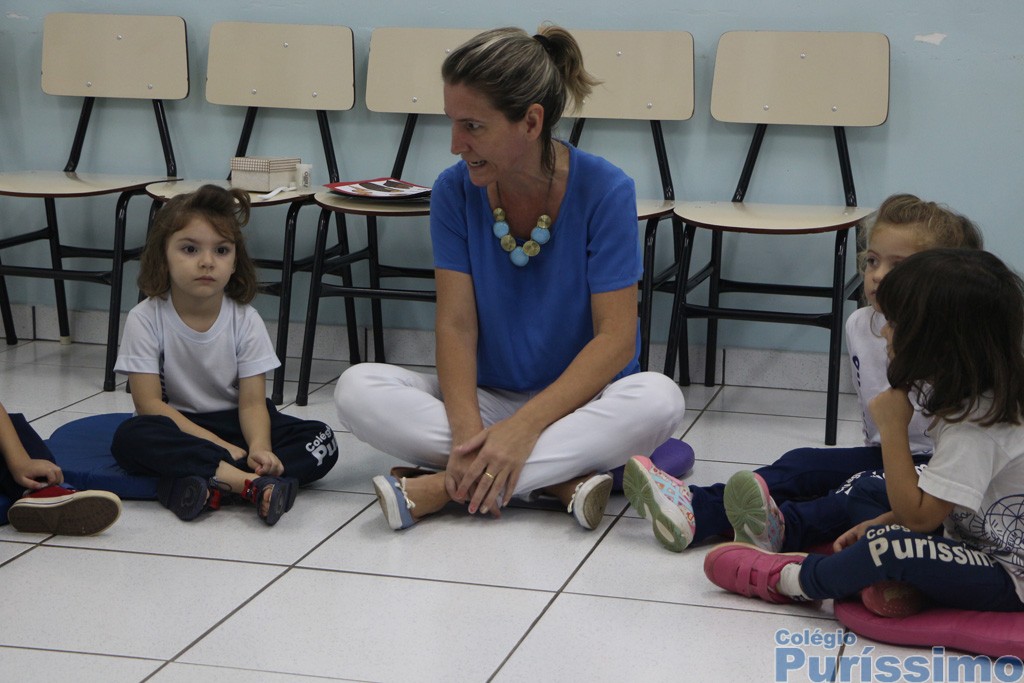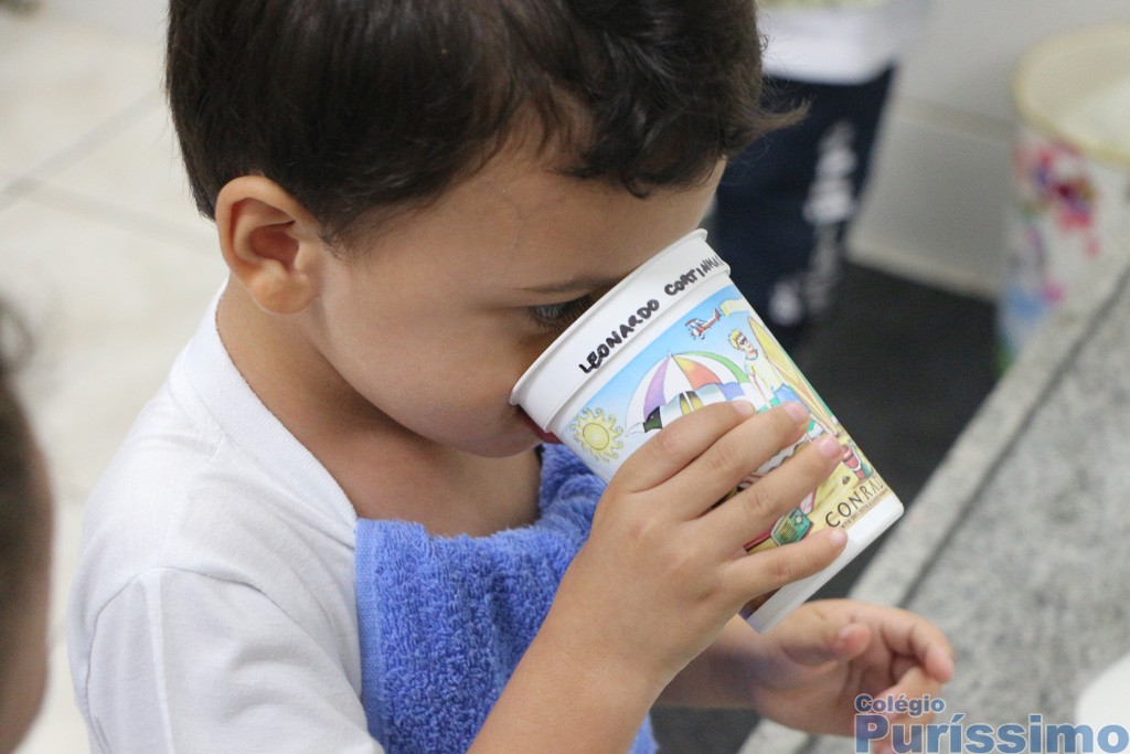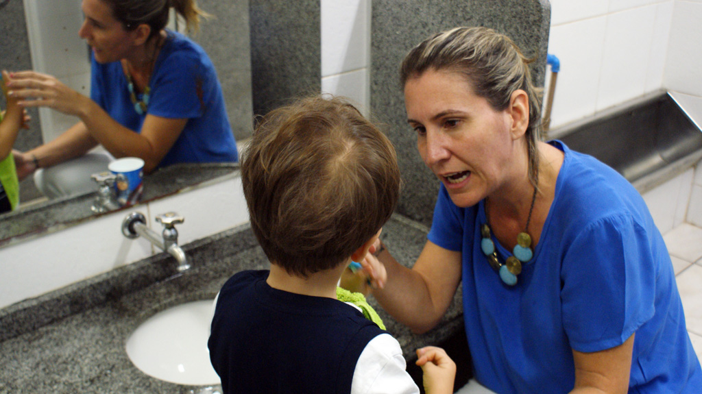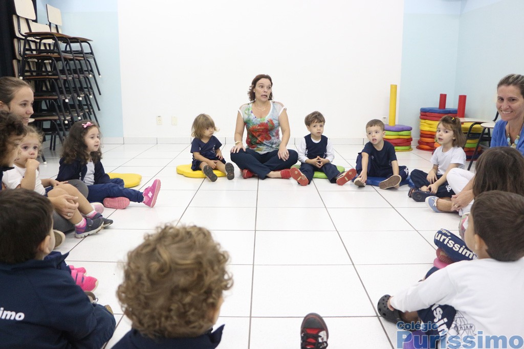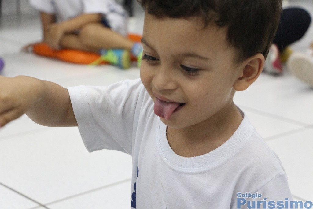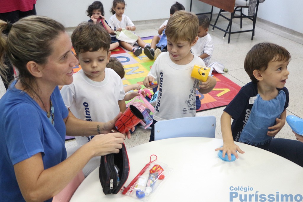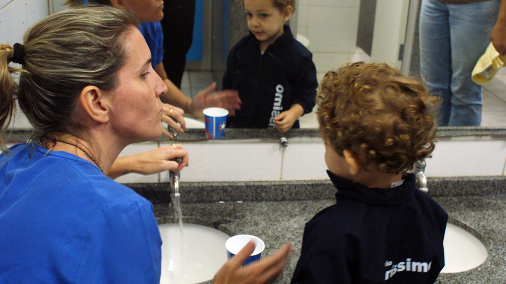 Com essa intenção a coordenação da Educação Infantil organizou uma visita da dentista Maria Eduarda Biscaro, mãe da aluna Isabella Biscaro Bovo, do Jardim I da manhã. Foi realizada uma palestra com os pequenos do Maternal II (manhã e tarde) afim de mostrar o que acontece com os dentes caso eles não tenham a devida higiene, além disso, Maria Eduarda ensinou as crianças as técnicas de escovação. Posteriormente eles foram aplicar, utilizando o kit escova que trouxeram e que passará a ser usado diariamente após o lanche.