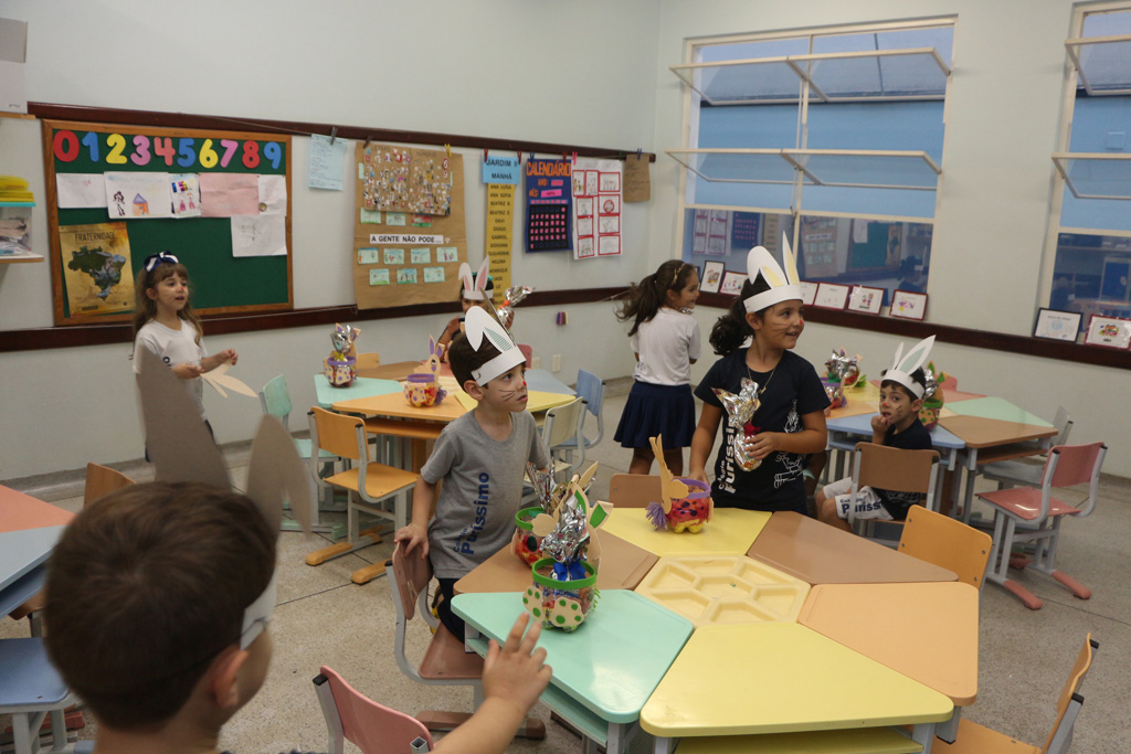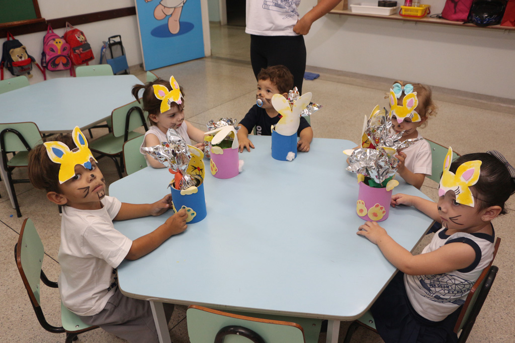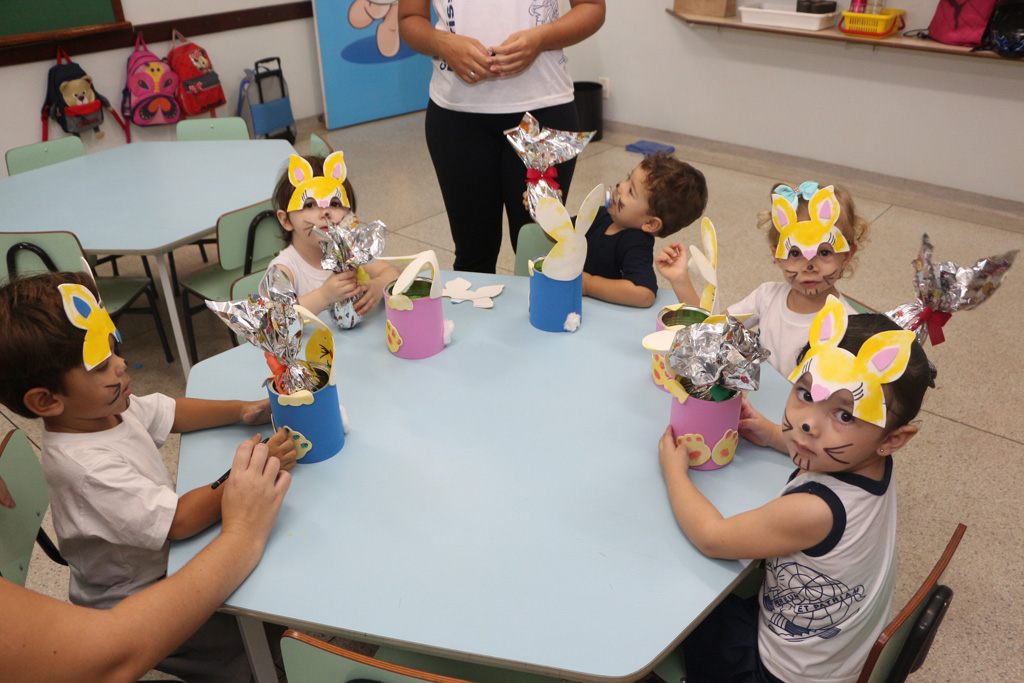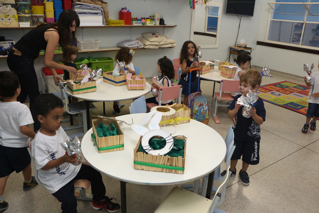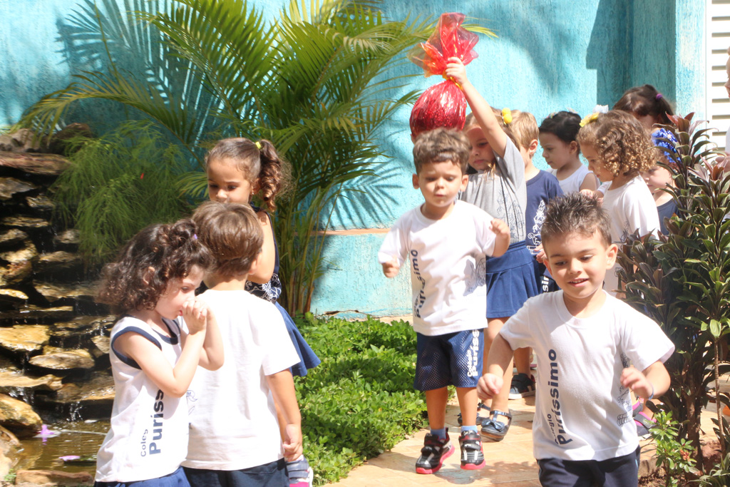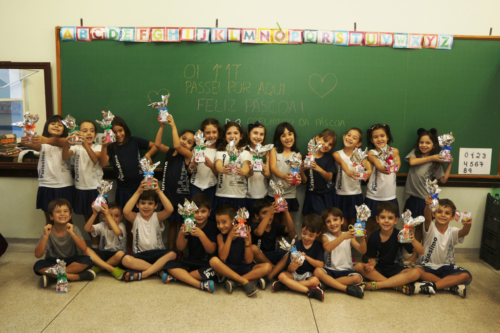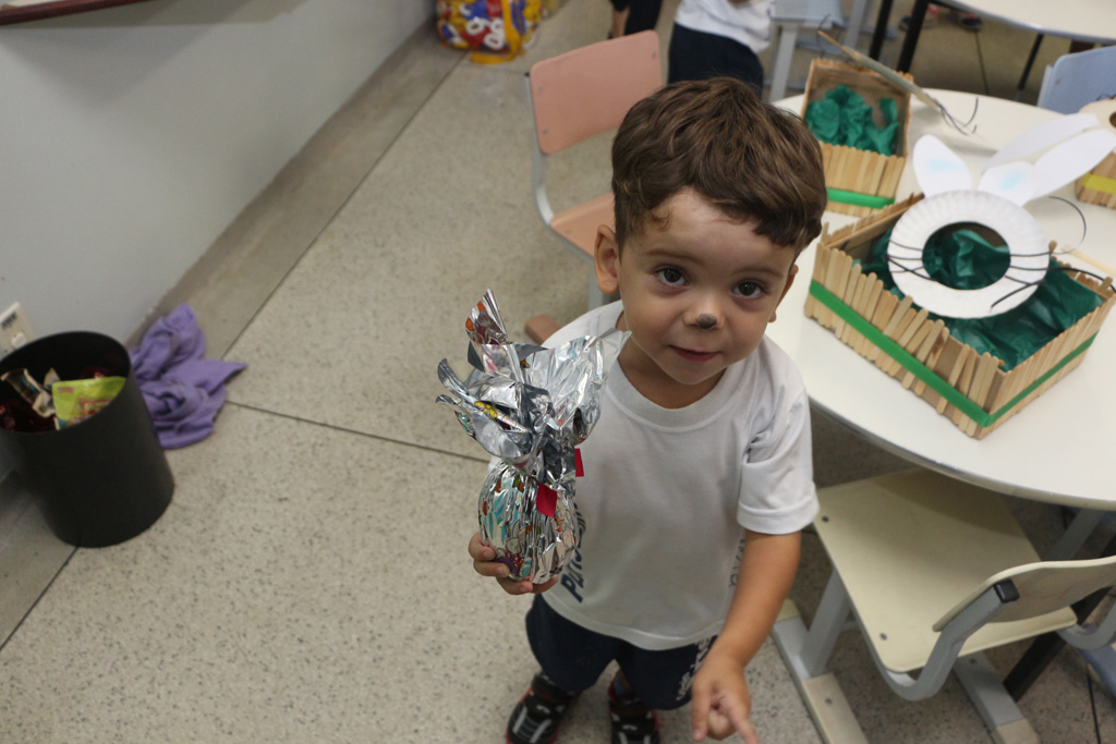 Os alunos da Educação Infantil e dos primeiros anos do Ensino Fundamental comemoraram a Páscoa com muitas atividades divertidas. Eles fizeram a caça aos ovos, a partilha do ovo, e por fim o Puríssimo ficou cheio de coelhinhos, os pequenos colocaram máscaras, se pintaram e fantasiaram de coelhos.