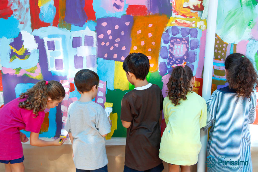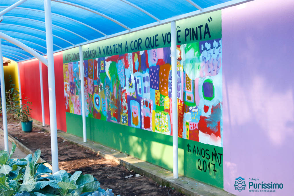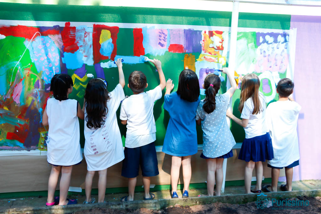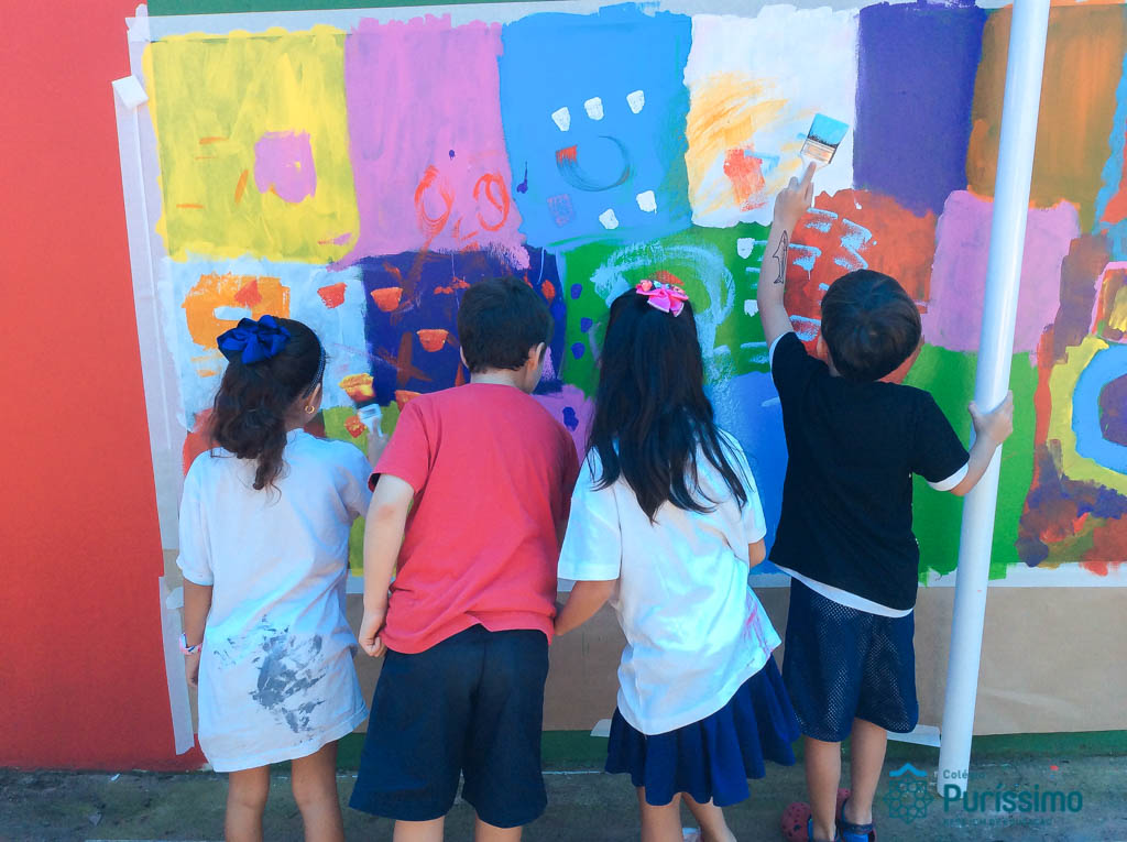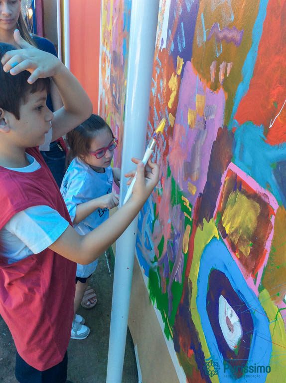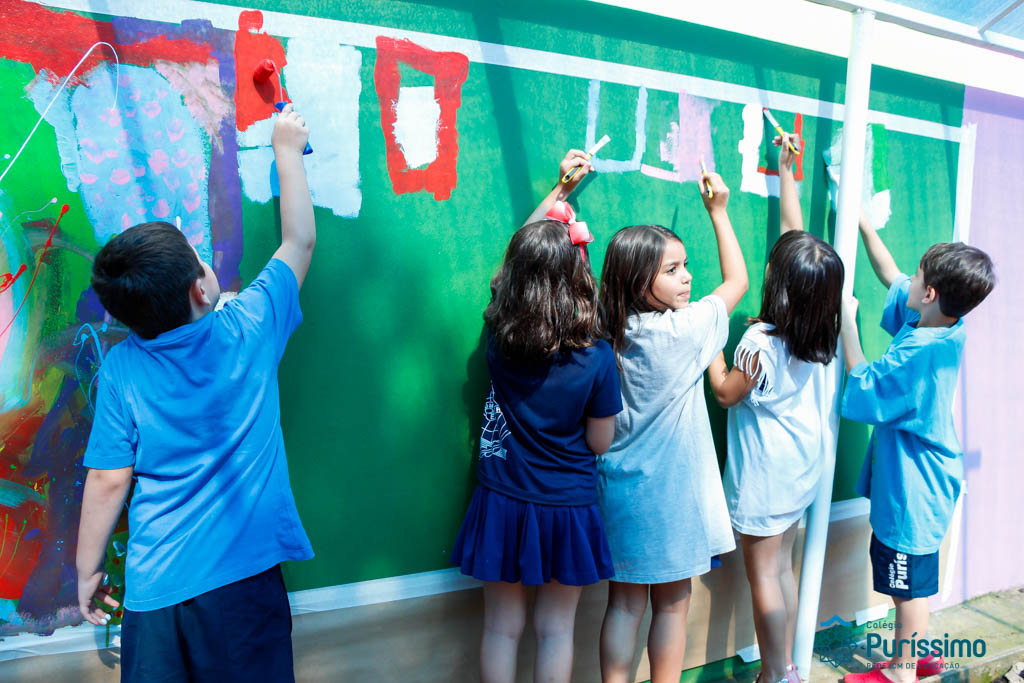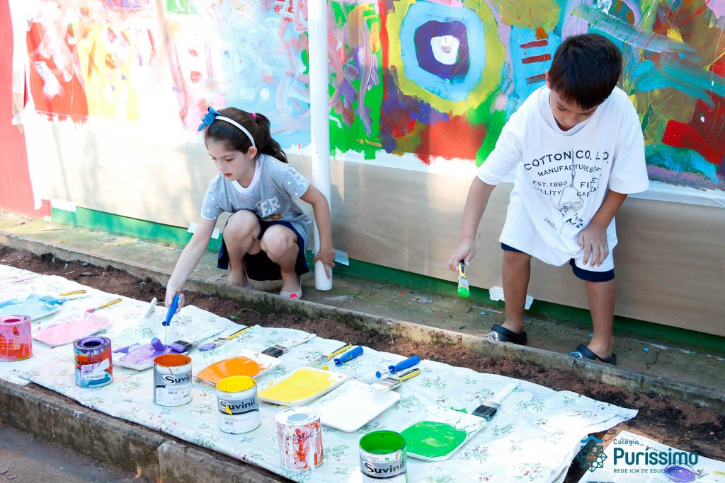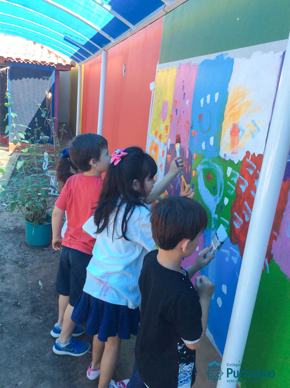 Durante o terceiro trimestre os alunos dos 1ºs anos (Manhã e Tarde) se encantaram com o projeto: “Da Pré-história a Era Contemporânea – A transformação da arte no decorrer dos tempos”, o qual realizaram uma apresentação de palco aos pais sobre este tema. Dando continuidade no projeto, os alunos produziram um desenho na parede da área externa do colégio, em frente a horta da Casa Azul, deixando registros gráficos através da pintura abstrata.