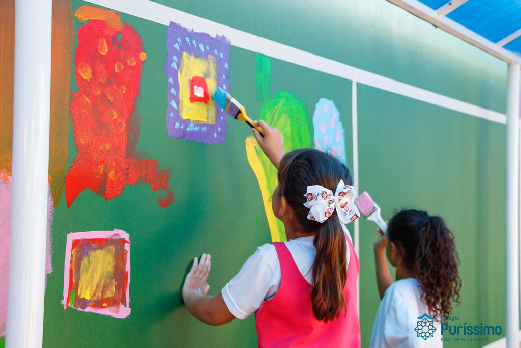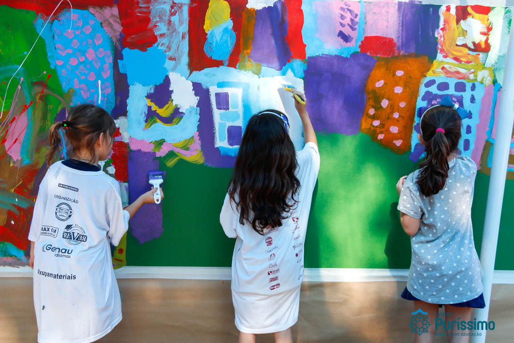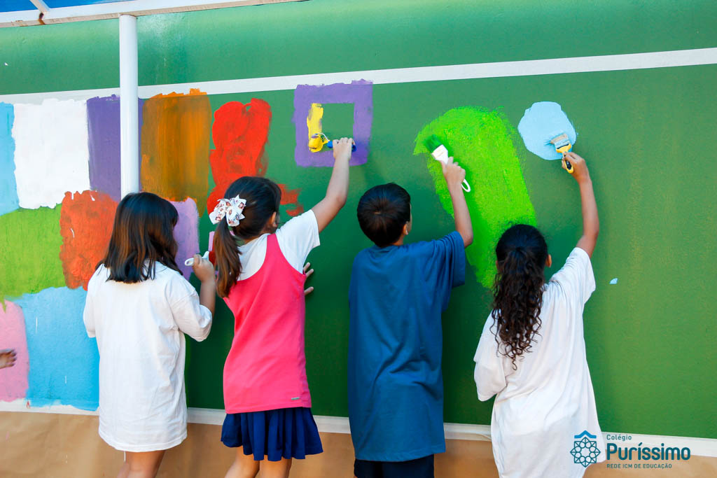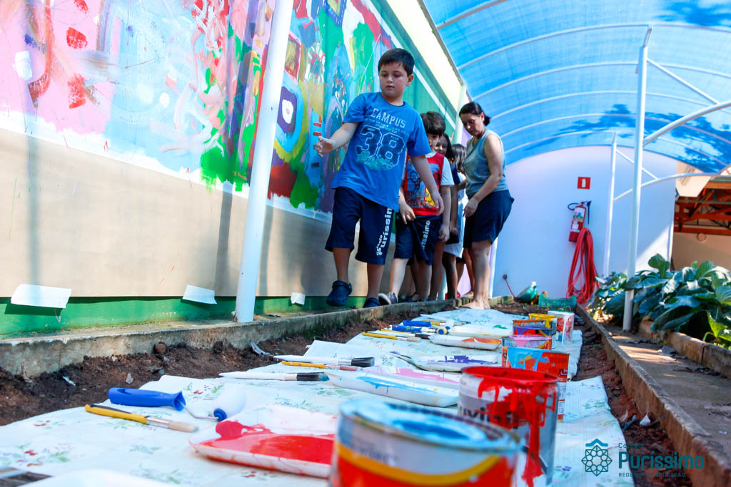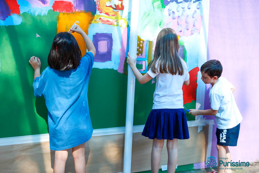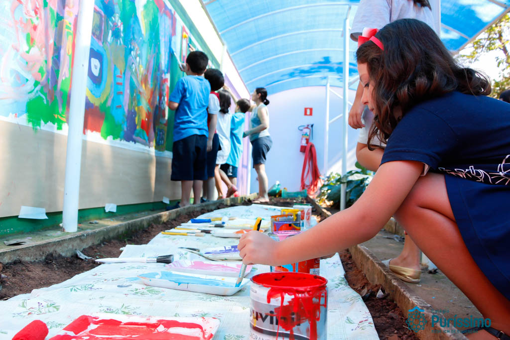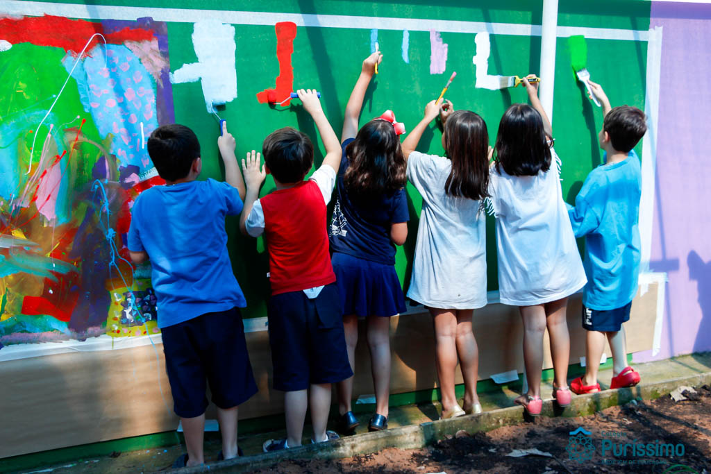 Durante o terceiro trimestre os alunos dos 1ºs anos (Manhã e Tarde) se encantaram com o projeto: “Da Pré-história a Era Contemporânea – A transformação da arte no decorrer dos tempos”, o qual realizaram uma apresentação de palco aos pais sobre este tema. Dando continuidade no projeto, os alunos produziram um desenho na parede da área externa do colégio, em frente a horta da Casa Azul, deixando registros gráficos através da pintura abstrata.