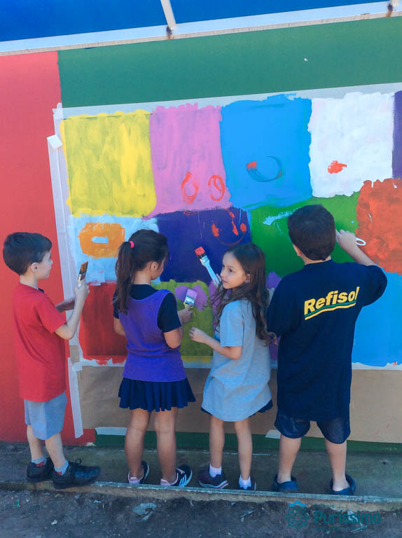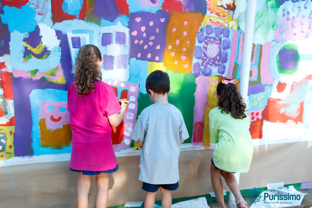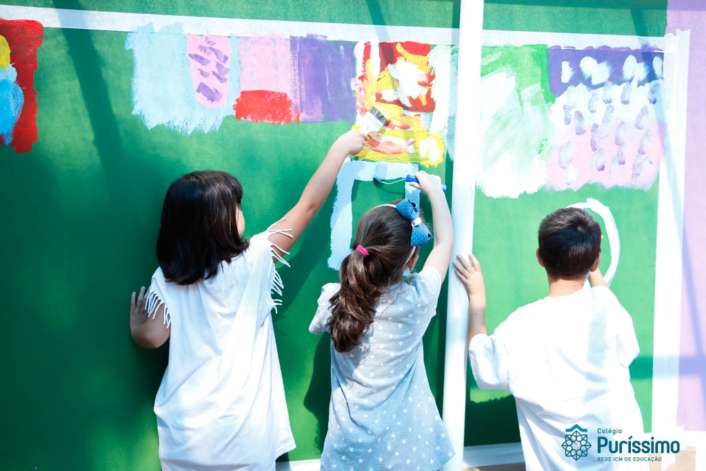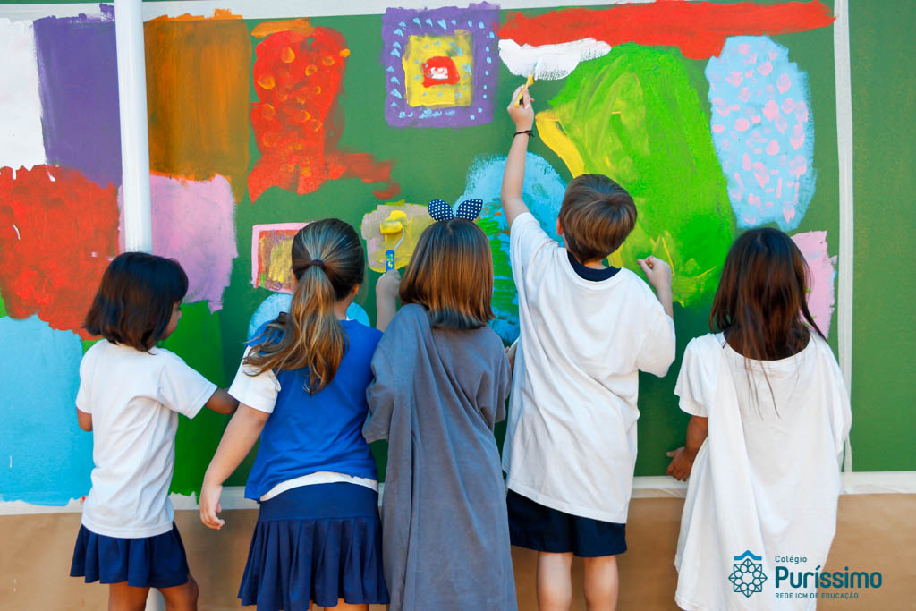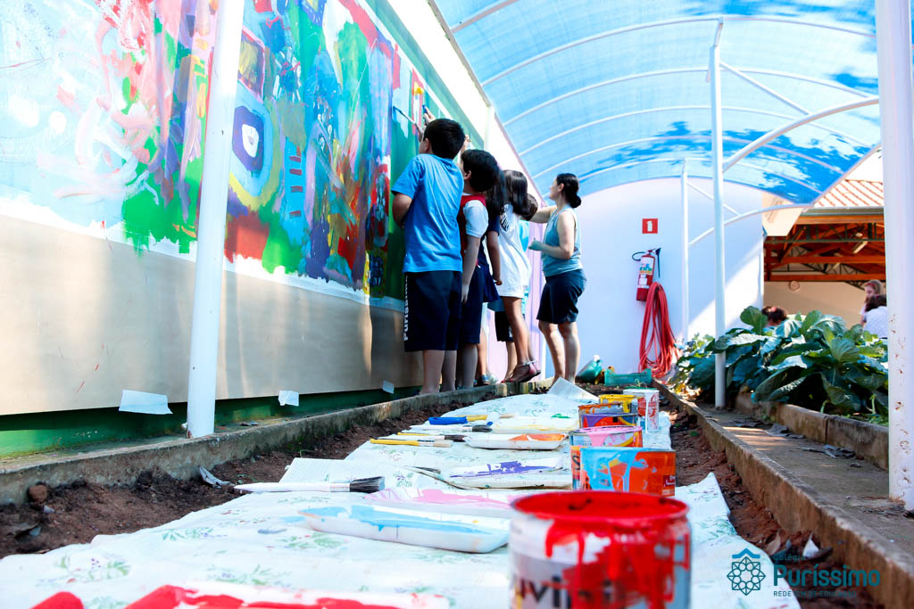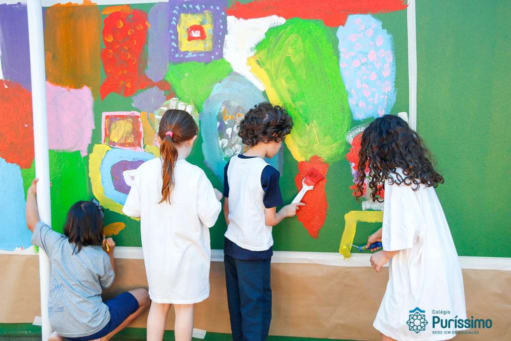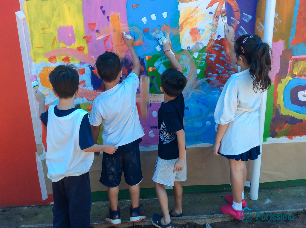 Durante o terceiro trimestre os alunos dos 1ºs anos (Manhã e Tarde) se encantaram com o projeto: “Da Pré-história a Era Contemporânea – A transformação da arte no decorrer dos tempos”, o qual realizaram uma apresentação de palco aos pais sobre este tema. Dando continuidade no projeto, os alunos produziram um desenho na parede da área externa do colégio, em frente a horta da Casa Azul, deixando registros gráficos através da pintura abstrata.