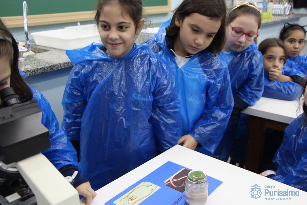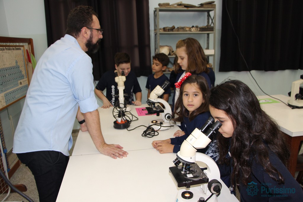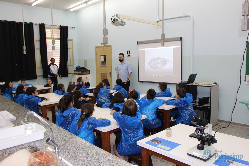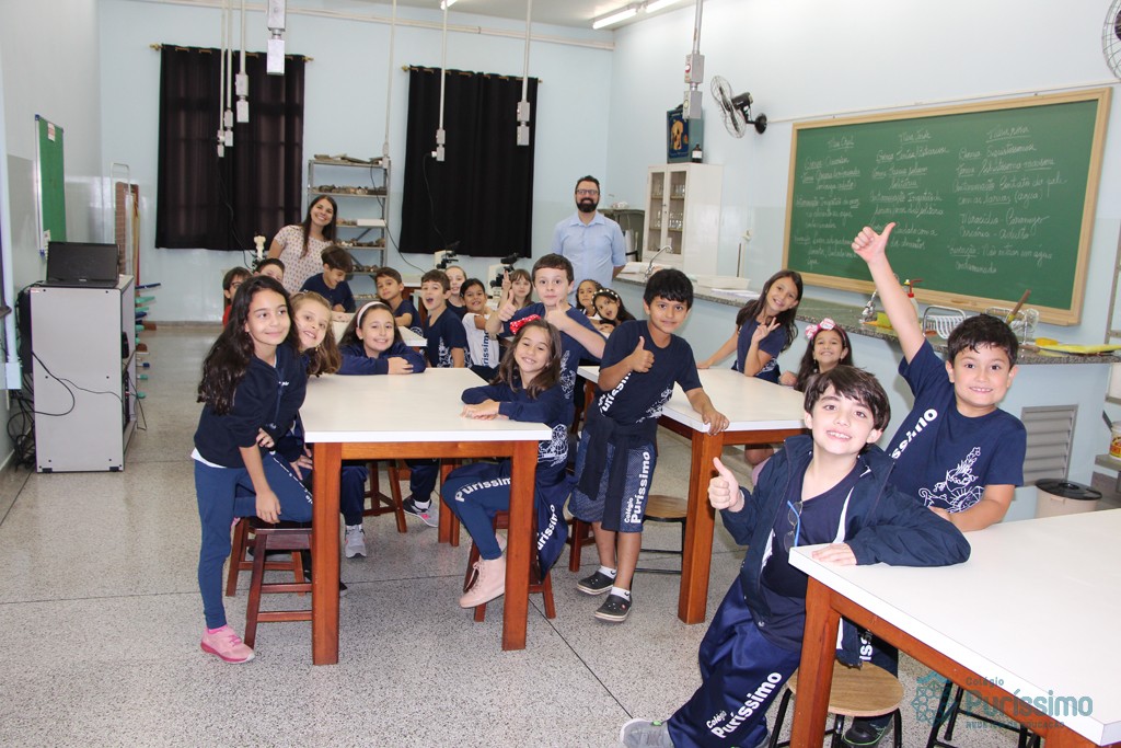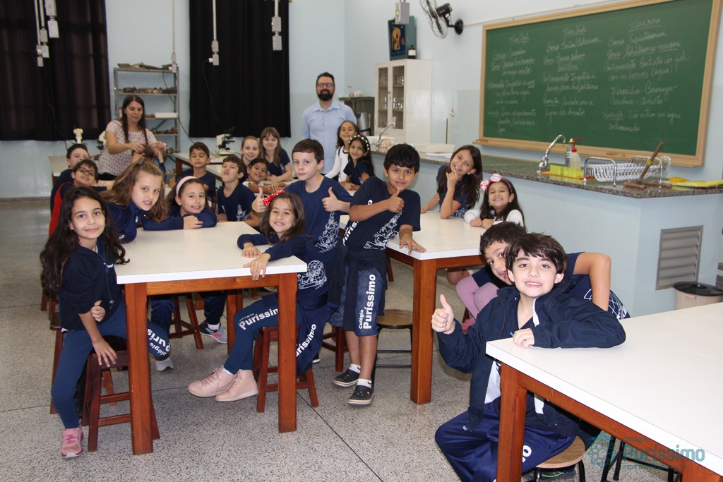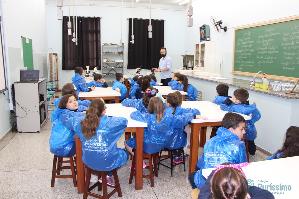 Os alunos dos 3ºs anos do Ensino Fundamental  do Colégio Puríssimo participaram na última semana de uma aula de Ciências diferente. Eles visitaram o Laboratório de Ciências que fica localizado no Prédio Principal e tiveram uma aula com o professor dos alunos do Fundamental II Wagner Oliveira.