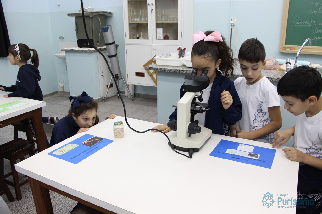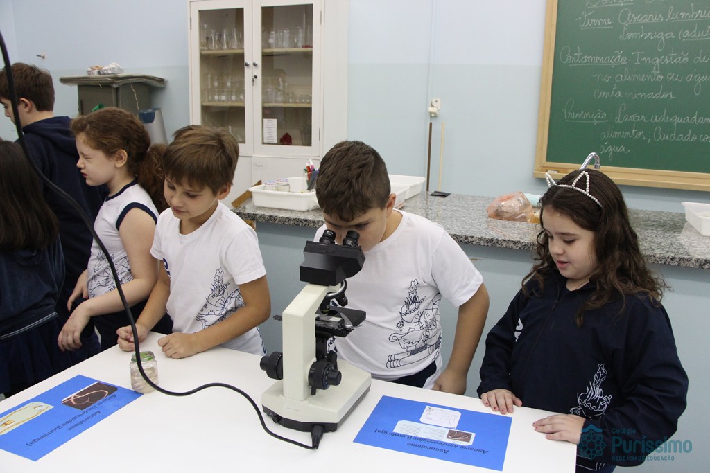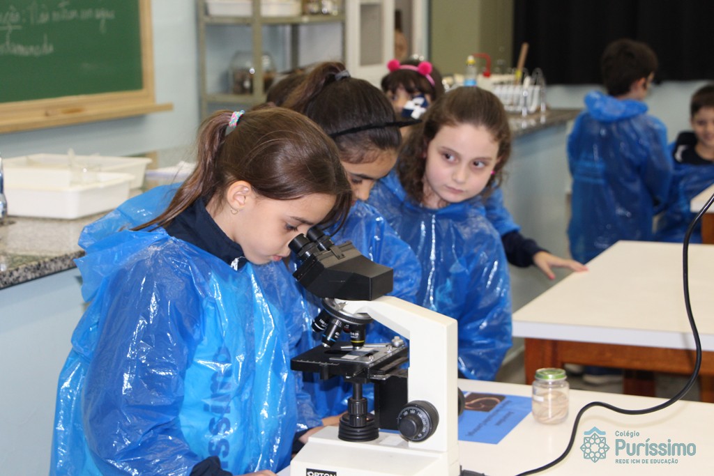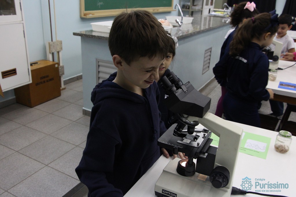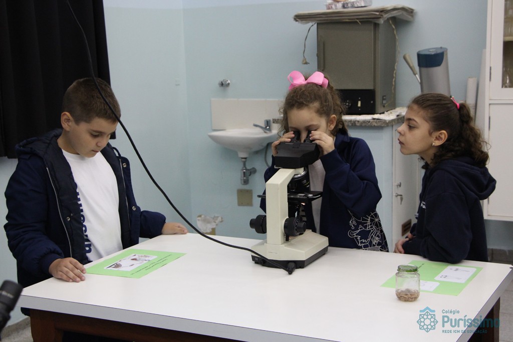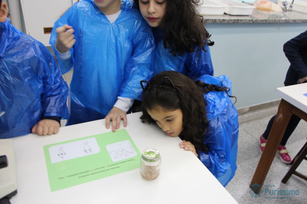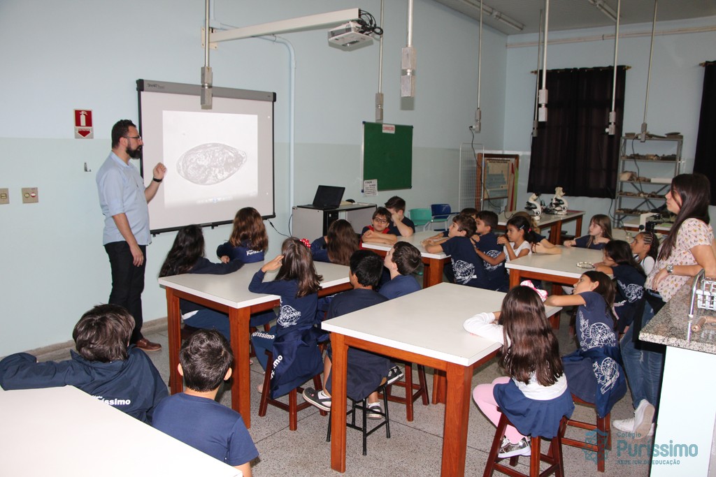 Os alunos dos 3ºs anos do Ensino Fundamental  do Colégio Puríssimo participaram na última semana de uma aula de Ciências diferente. Eles visitaram o Laboratório de Ciências que fica localizado no Prédio Principal e tiveram uma aula com o professor dos alunos do Fundamental II Wagner Oliveira.