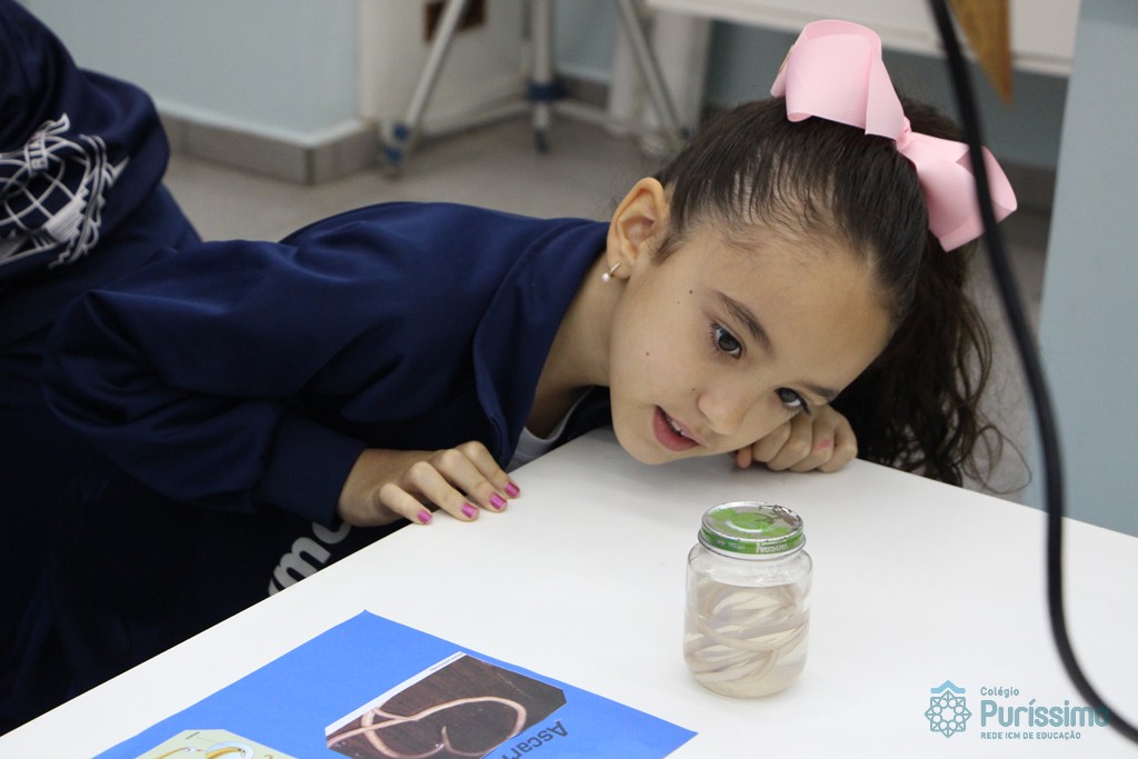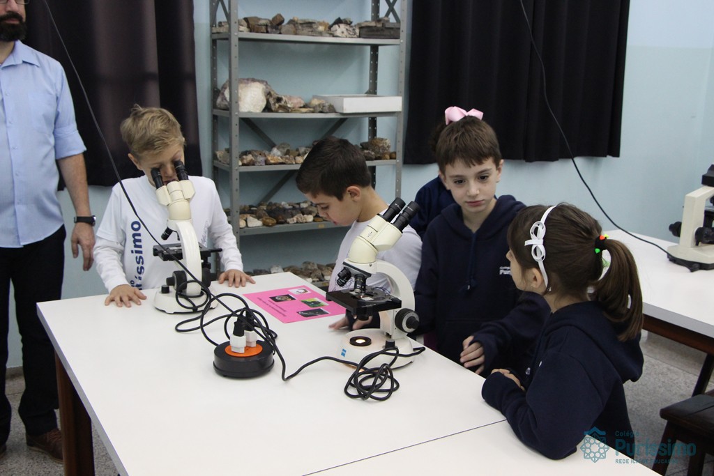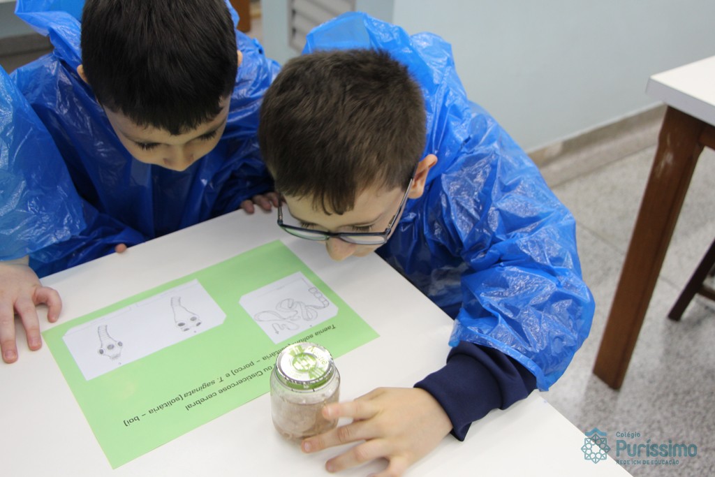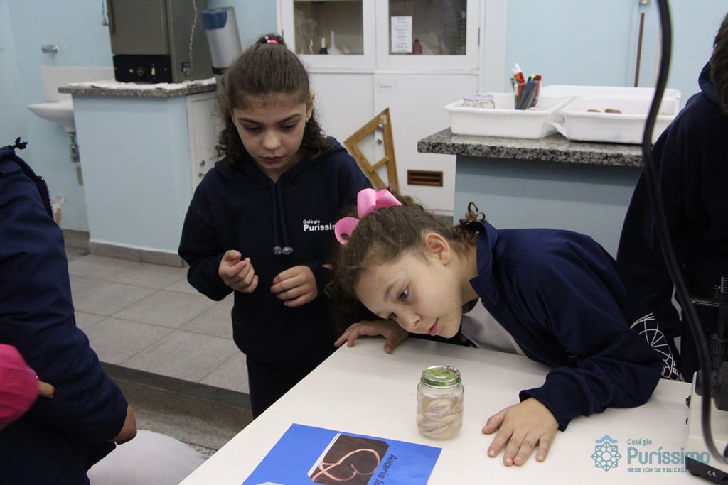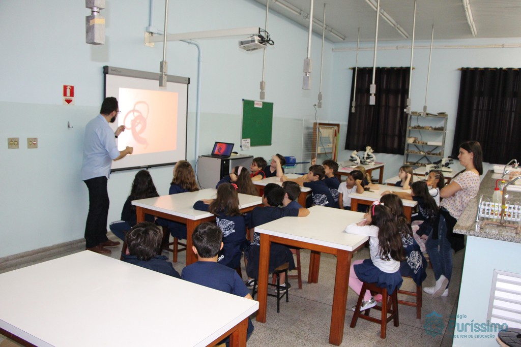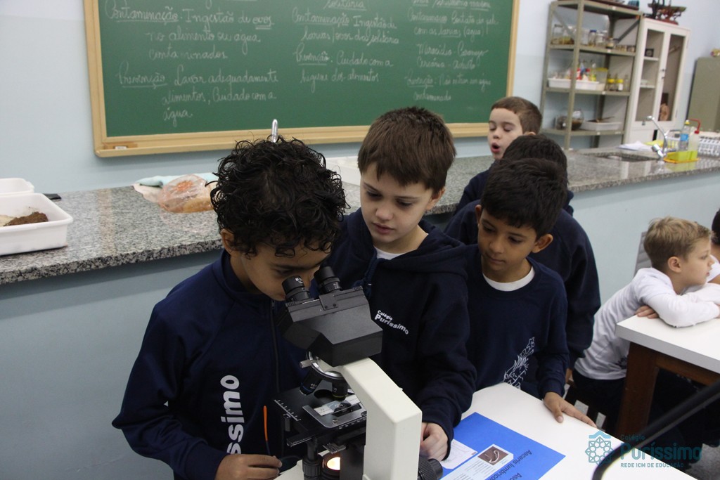 Os alunos dos 3ºs anos do Ensino Fundamental  do Colégio Puríssimo participaram na última semana de uma aula de Ciências diferente. Eles visitaram o Laboratório de Ciências que fica localizado no Prédio Principal e tiveram uma aula com o professor dos alunos do Fundamental II Wagner Oliveira.