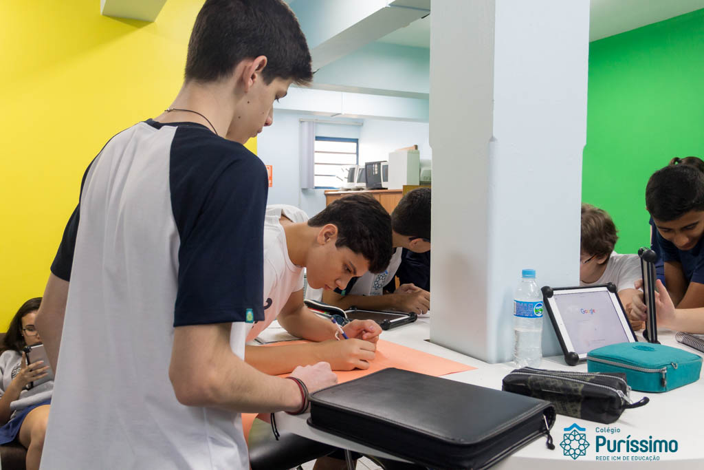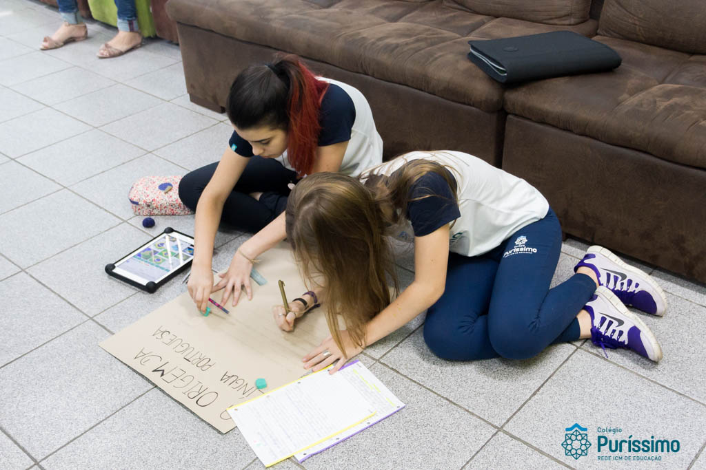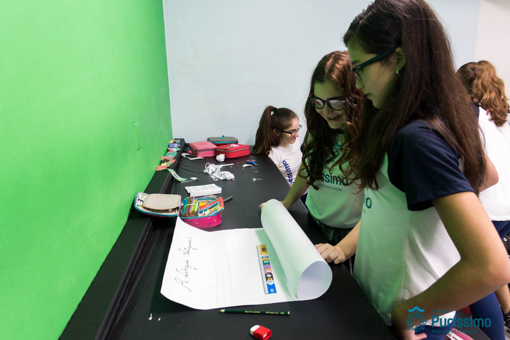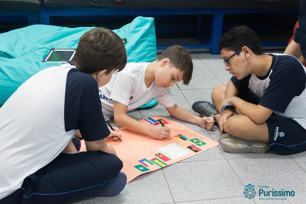 Os alunos dos 9ºs anos, trabalharam na disciplina de redação, juntamente com a professora Patrícia Cury, o gênero cartaz. O tema abordado foi A Origem da Língua Portuguesa e o objetivo principal era trabalhar o texto informativo dentro desse gênero.